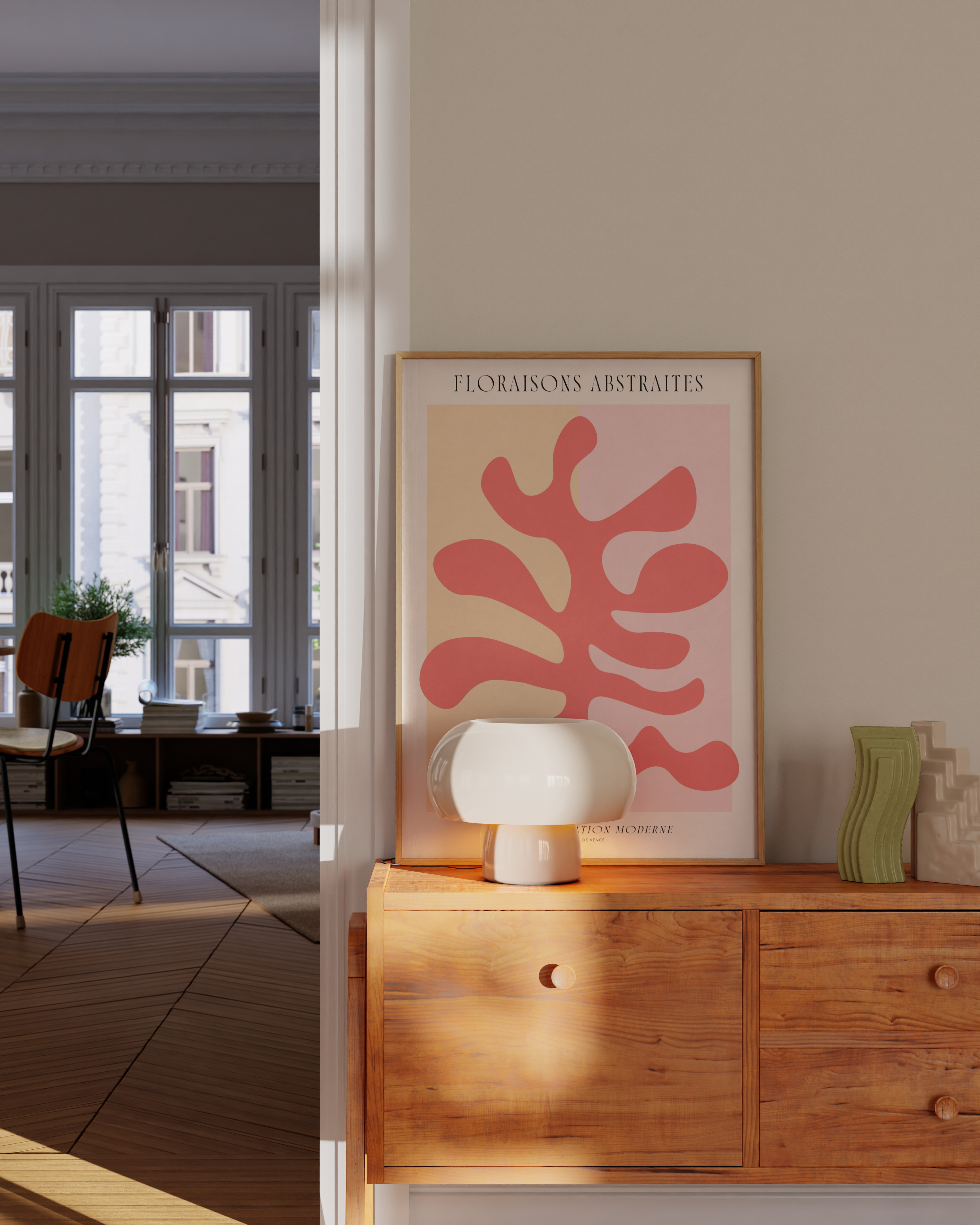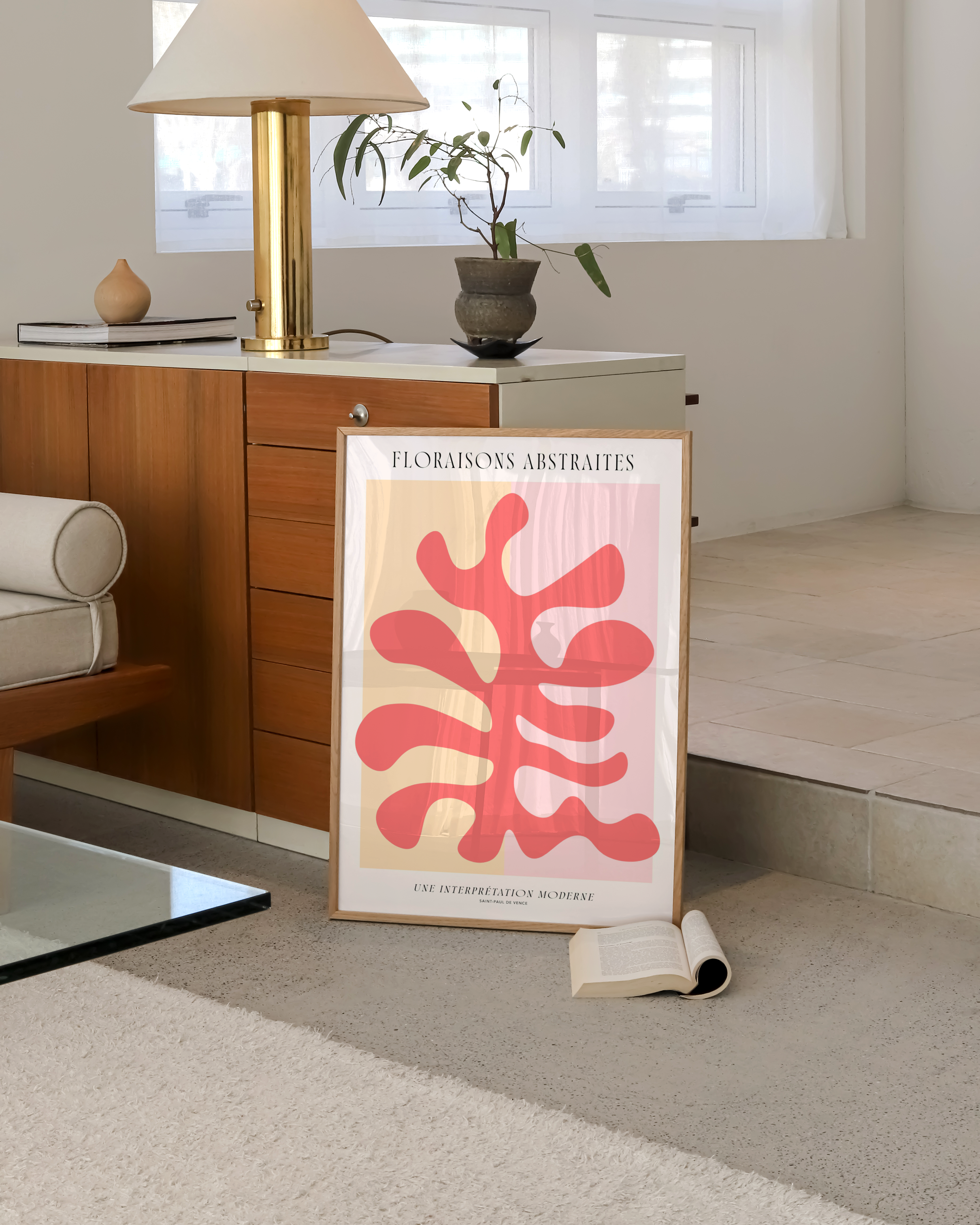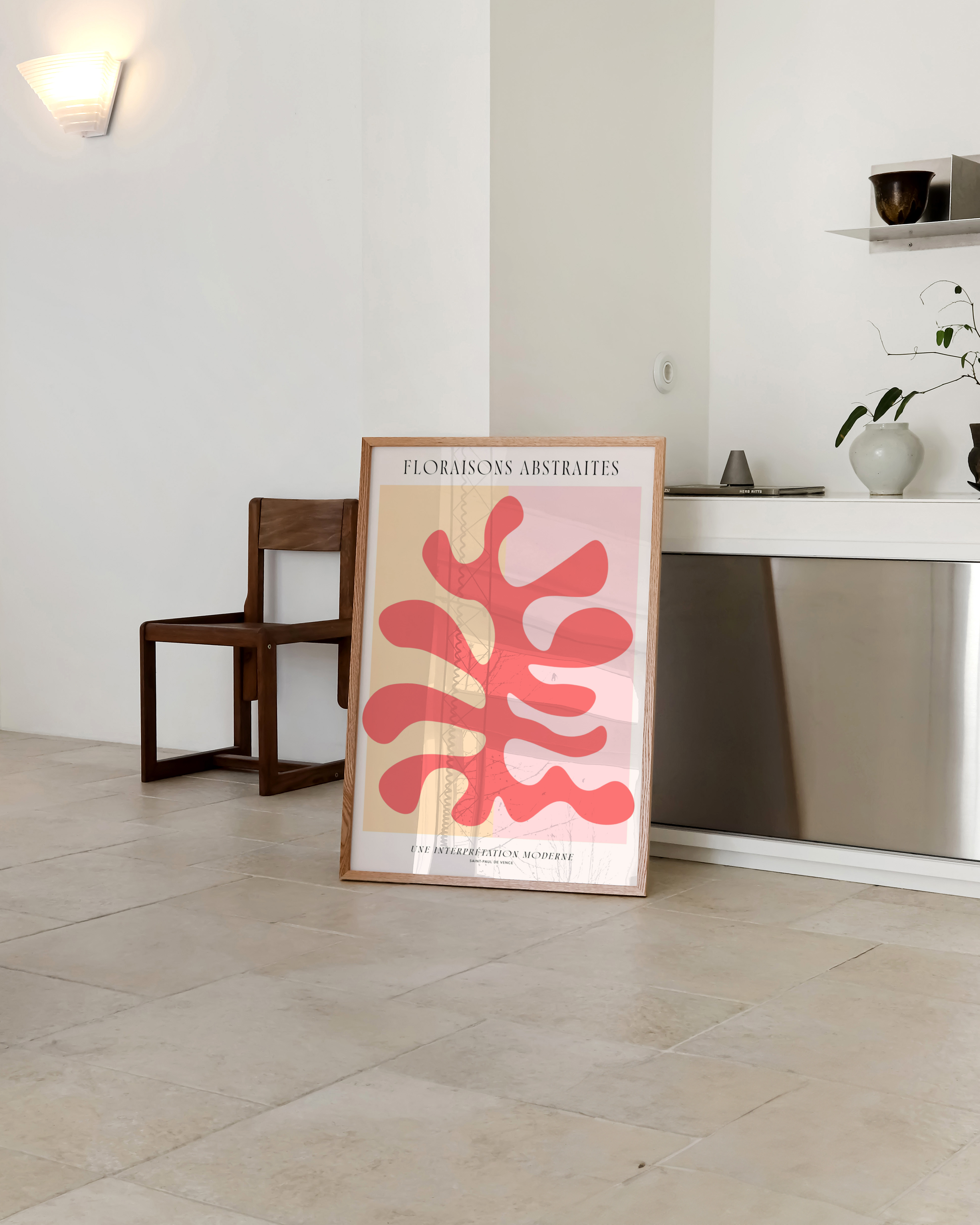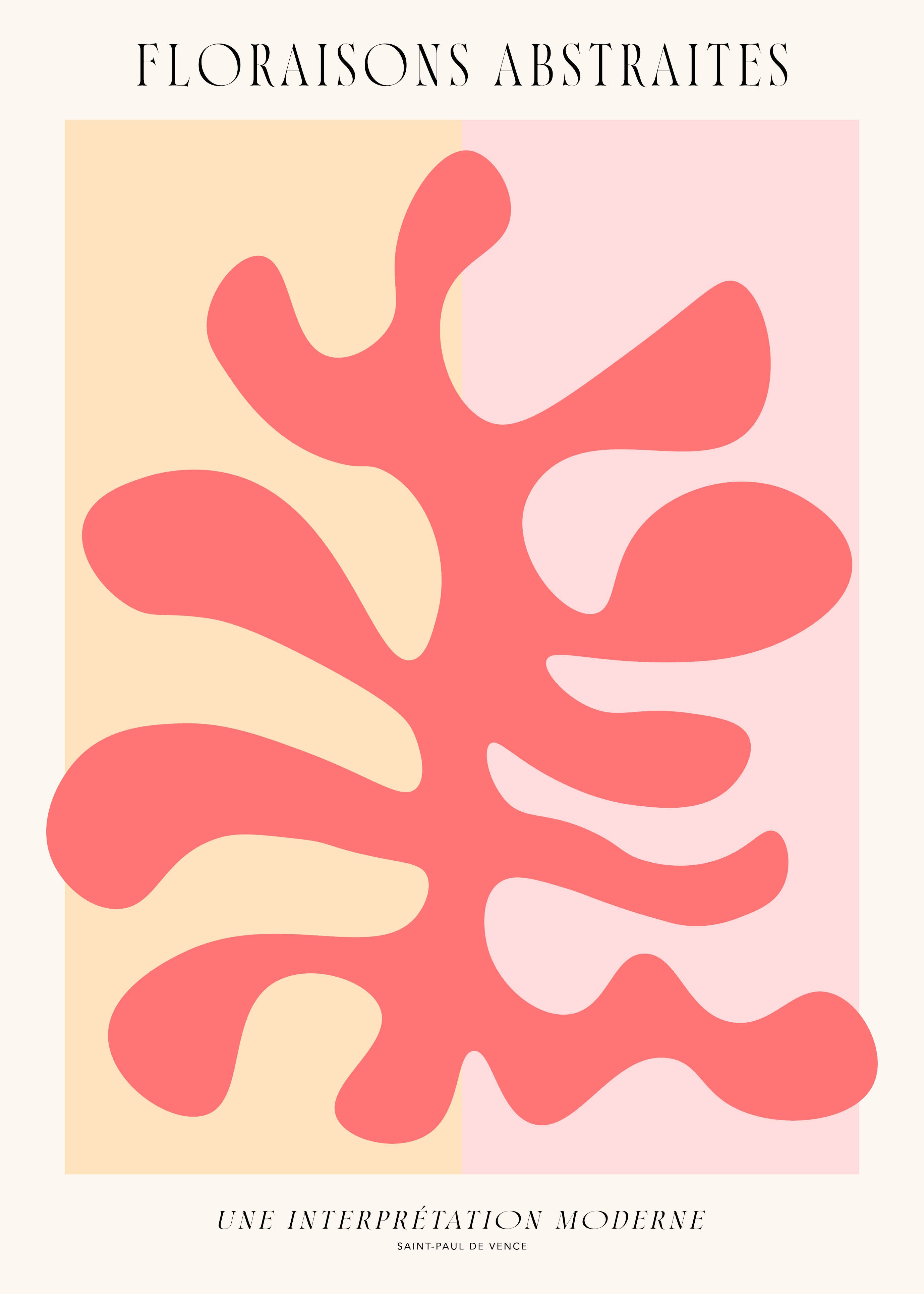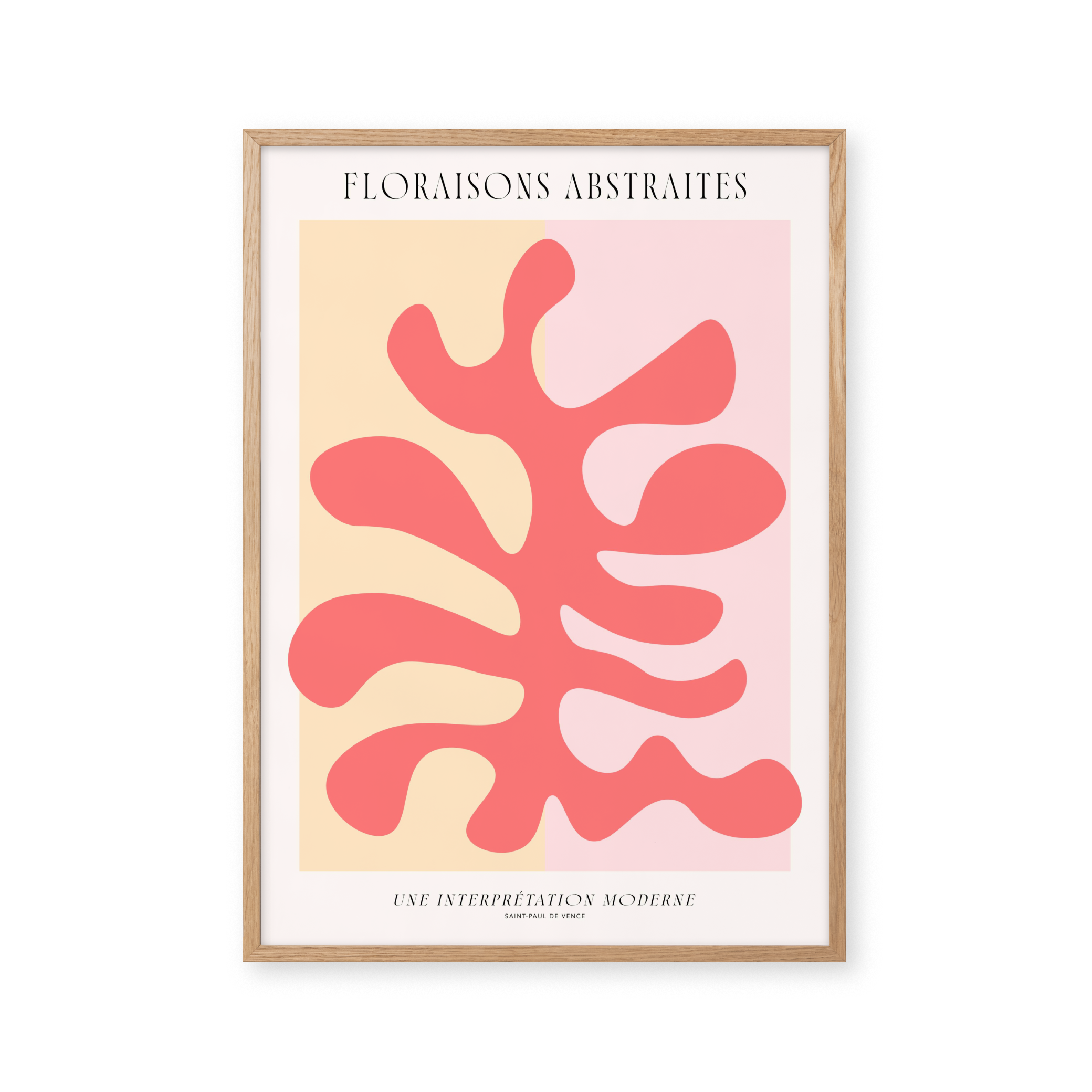 Opdag "Floraisons Abstraites" – en moderne fortolkning af kunst. Denne plakat fanger øjet med sin levende koralfarve og flydende former, perfekt til at tilføje et strejf af elegance og samtidskunst til ethvert rum. Ideal til designelskere og farveentusiaster.