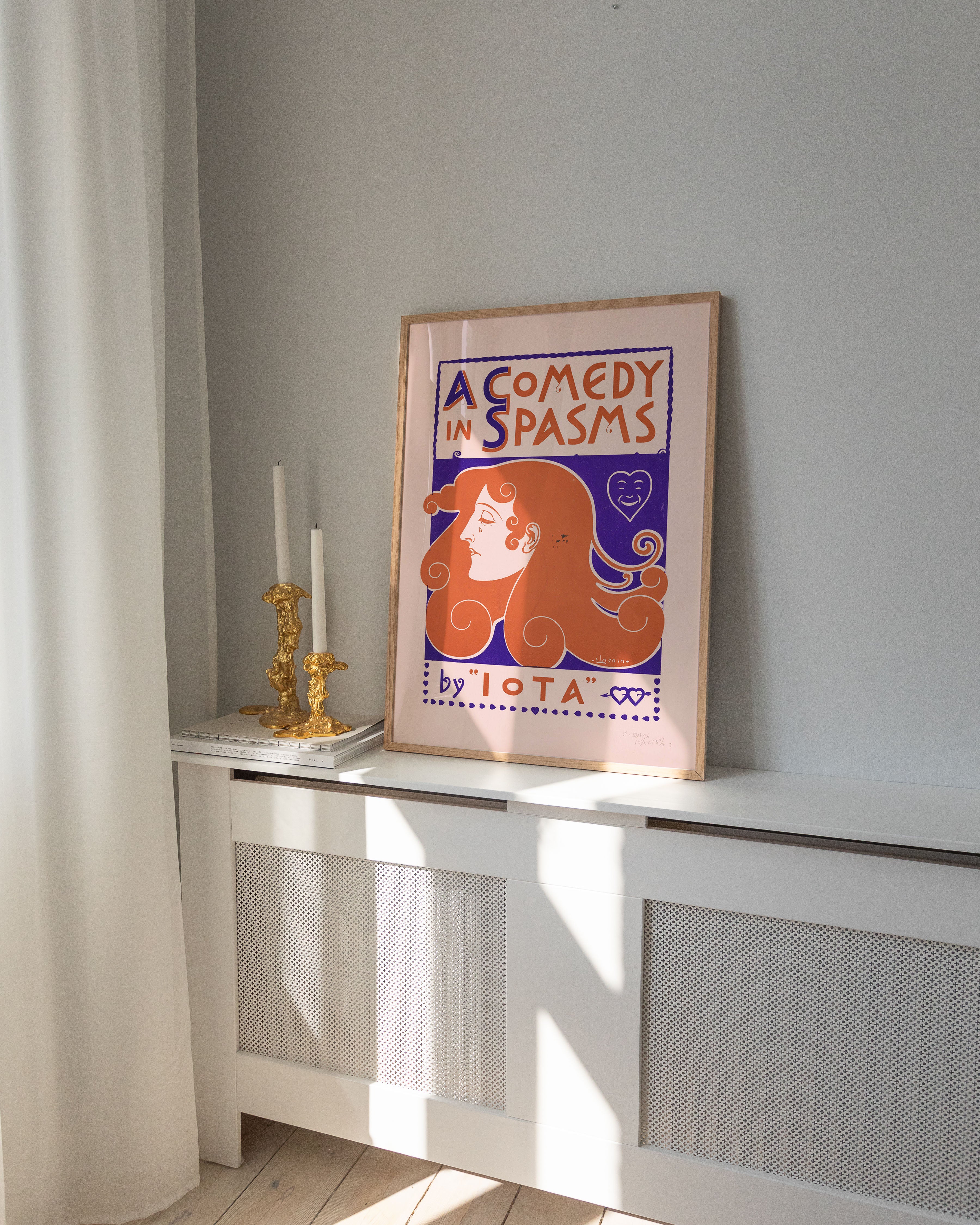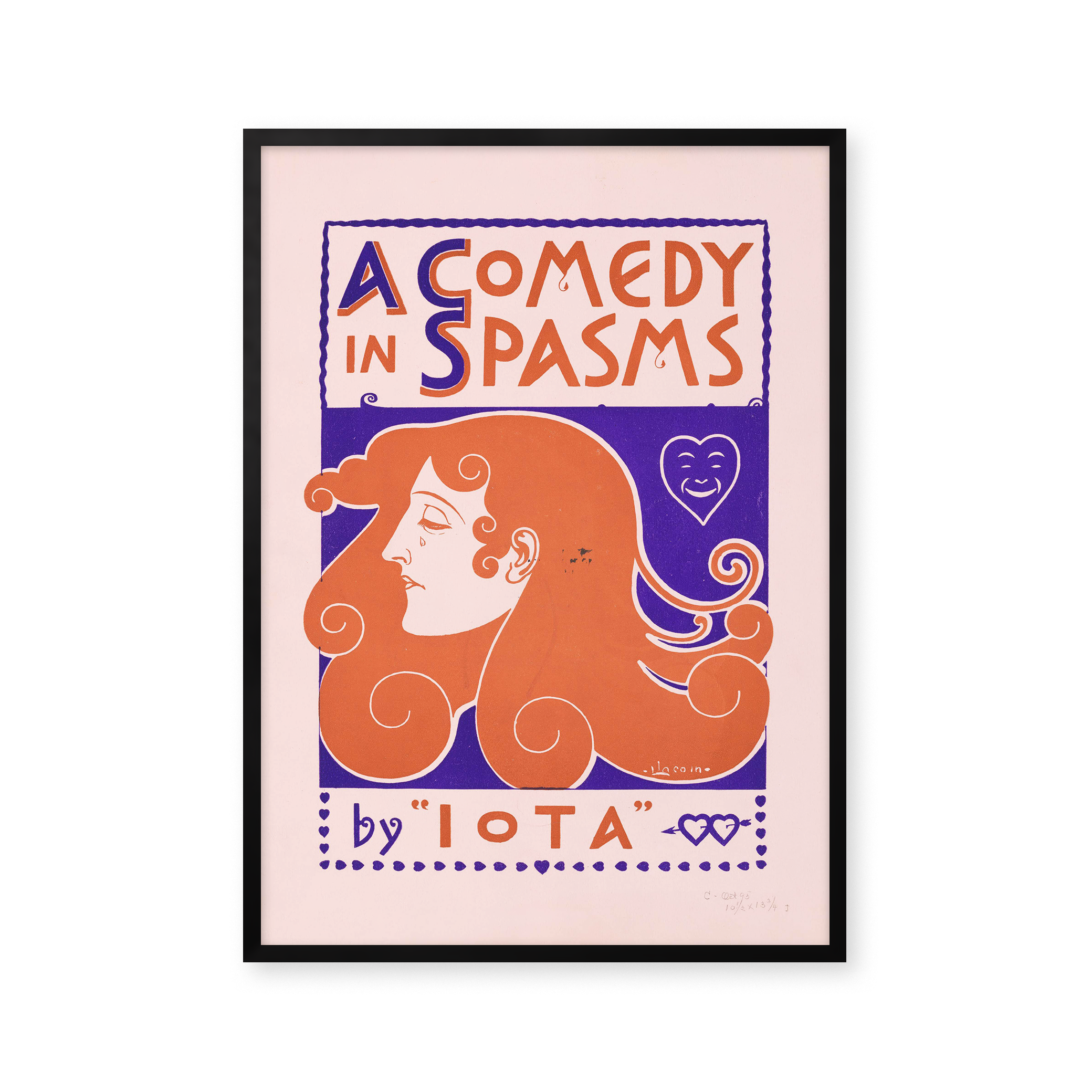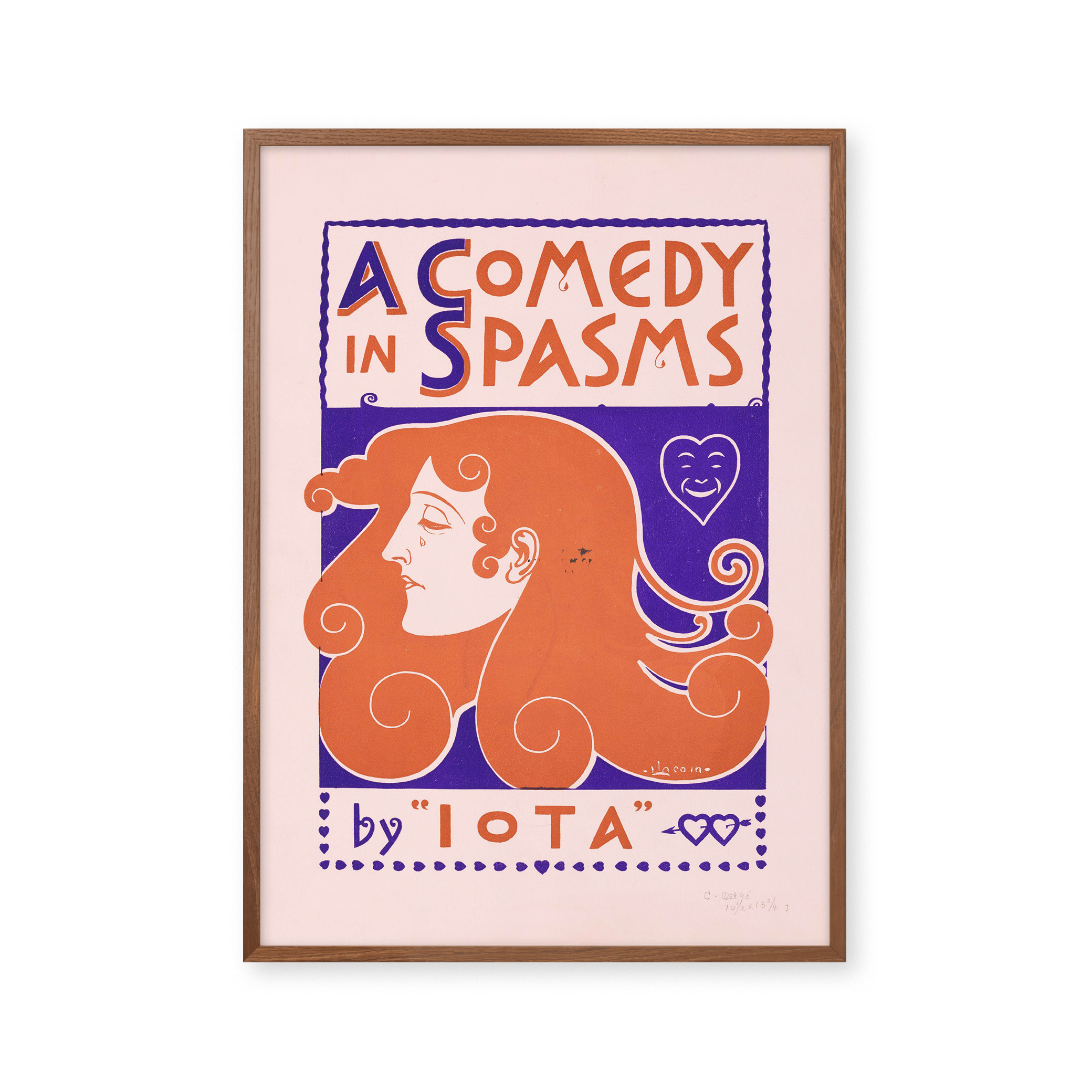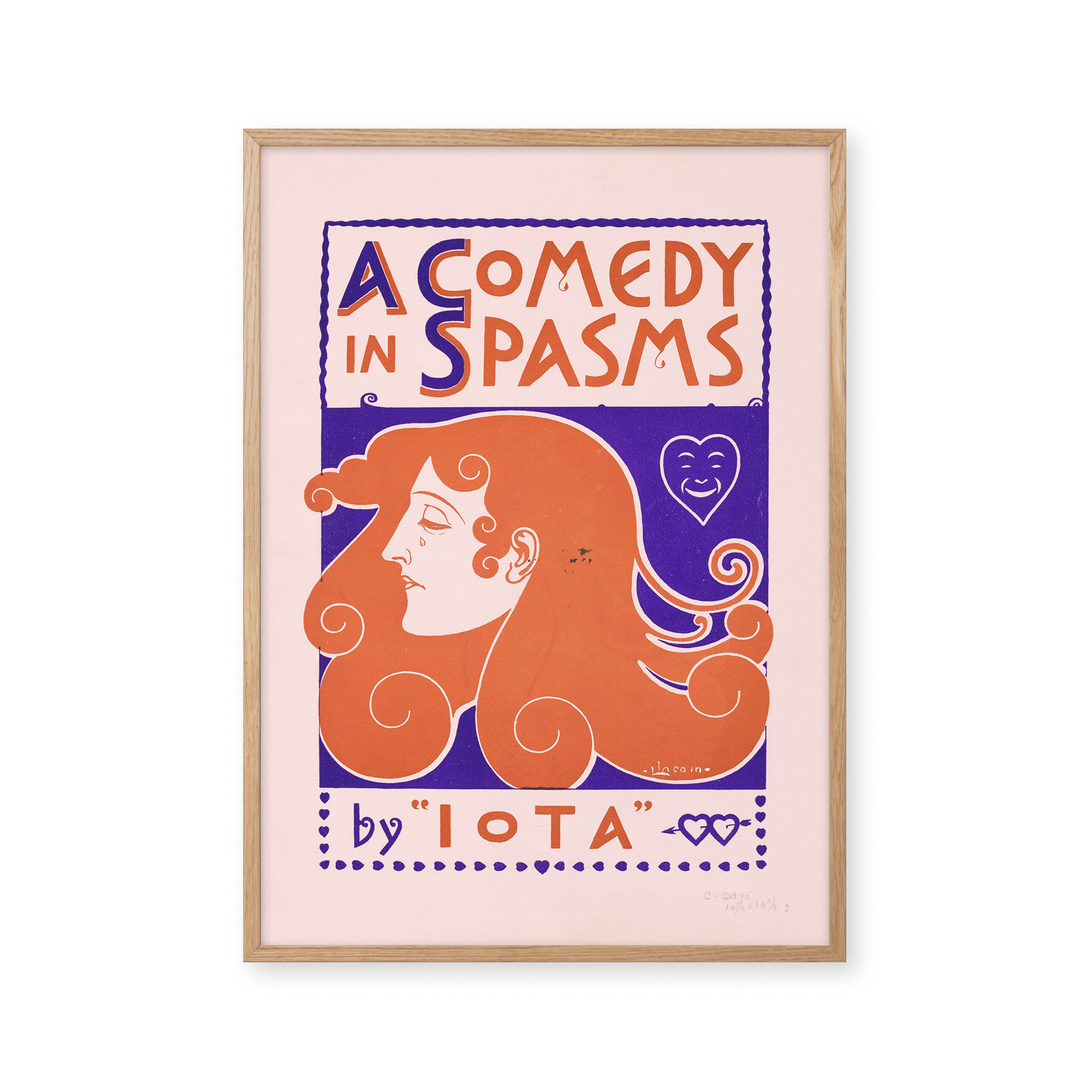 "A Comedy in Spasms" plakat: En livlig og farverig kunstplakat med unikke, retro-inspirerede illustrationer. Perfekt til at tilføje et strejf af humor og vintage charme til ethvert rum. Fremhæver varme orange og lilla nuancer, der fanger øjet og skaber en iøjnefaldende vægdekoration.