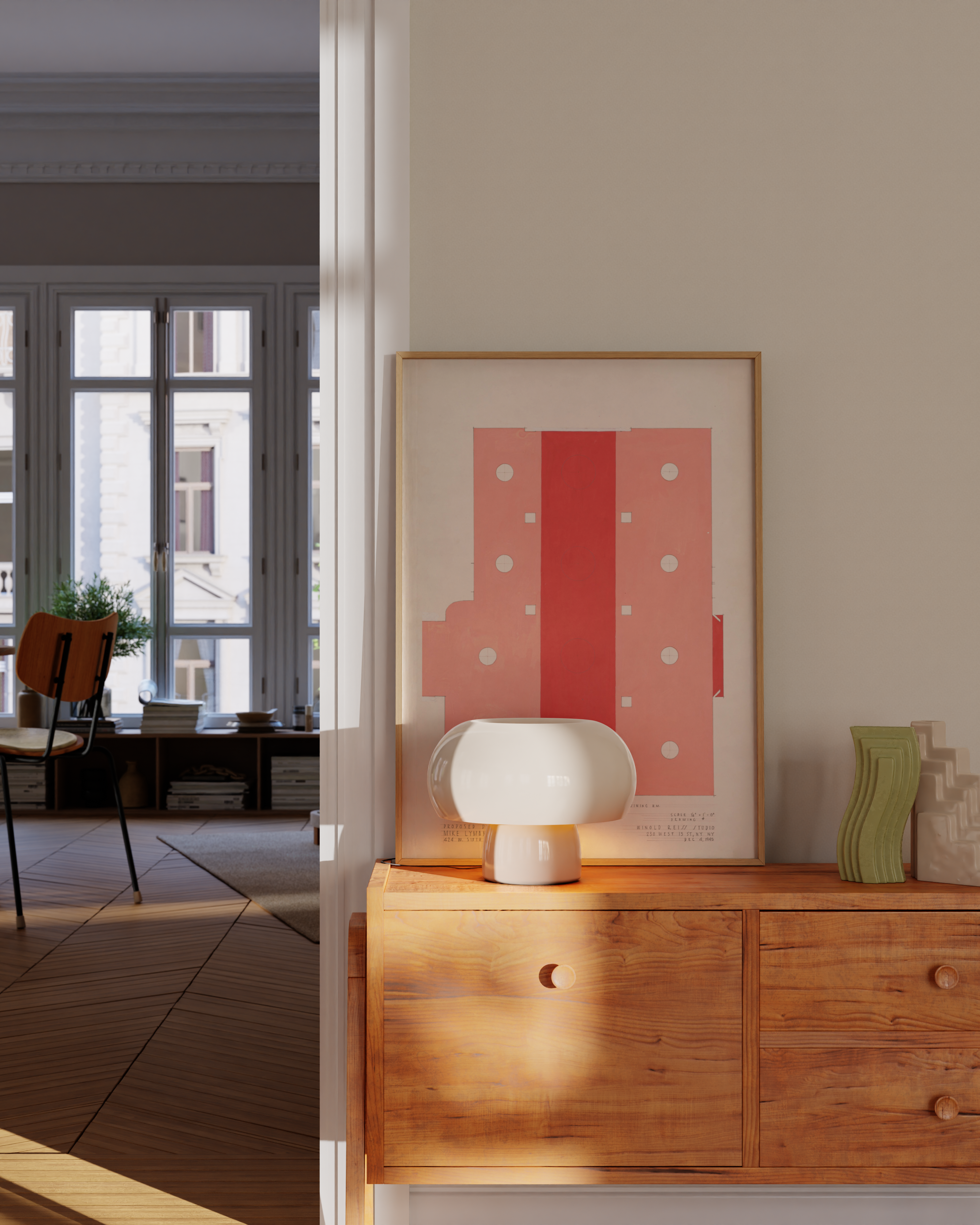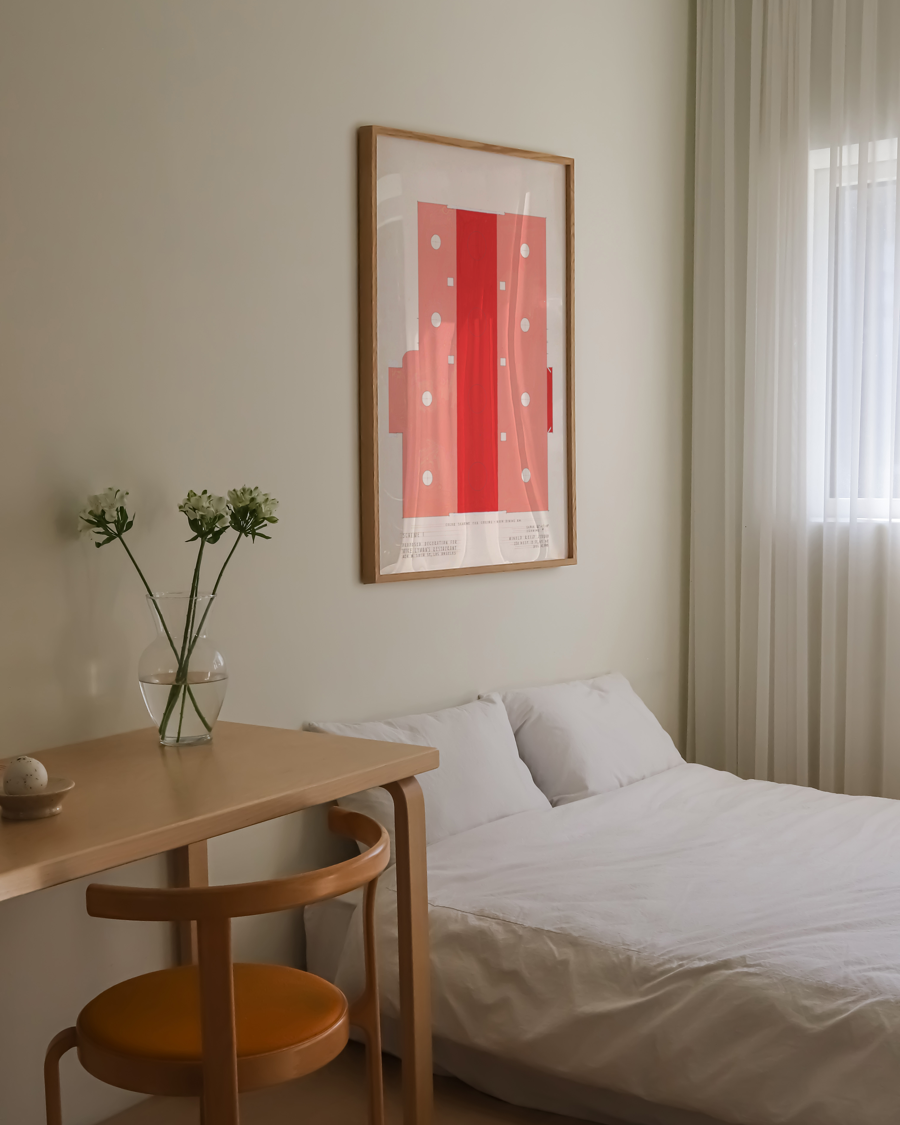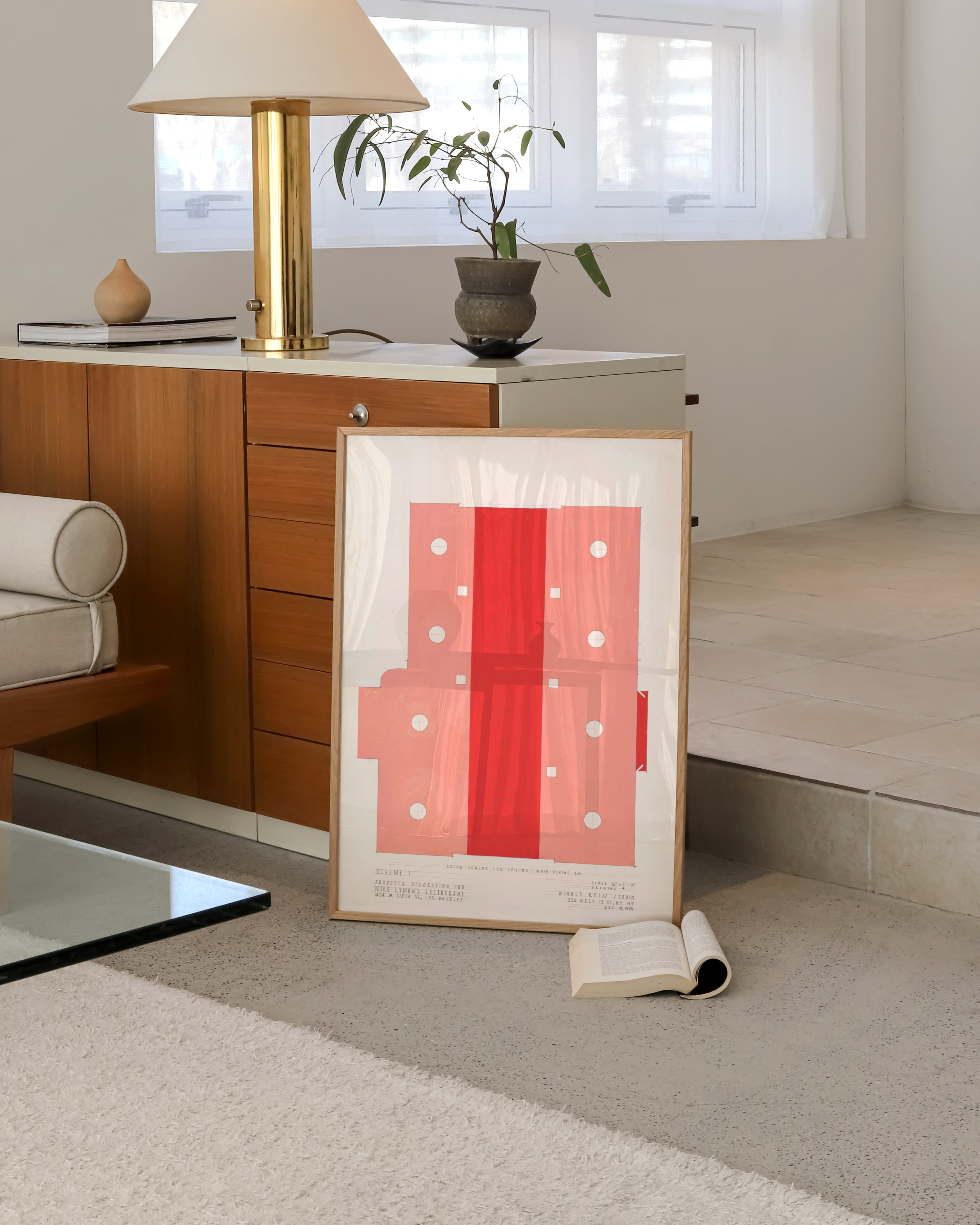 Oplev 'Abstract Diner' – en moderne plakat, der fanger øjet med sin dristige rød-hvide farvepalette. Perfekt til at tilføre et strejf af minimalistisk kunst til ethvert rum. Denne plakat kombinerer geometriske former og rene linjer for at skabe en samtalestarter på din væg.
