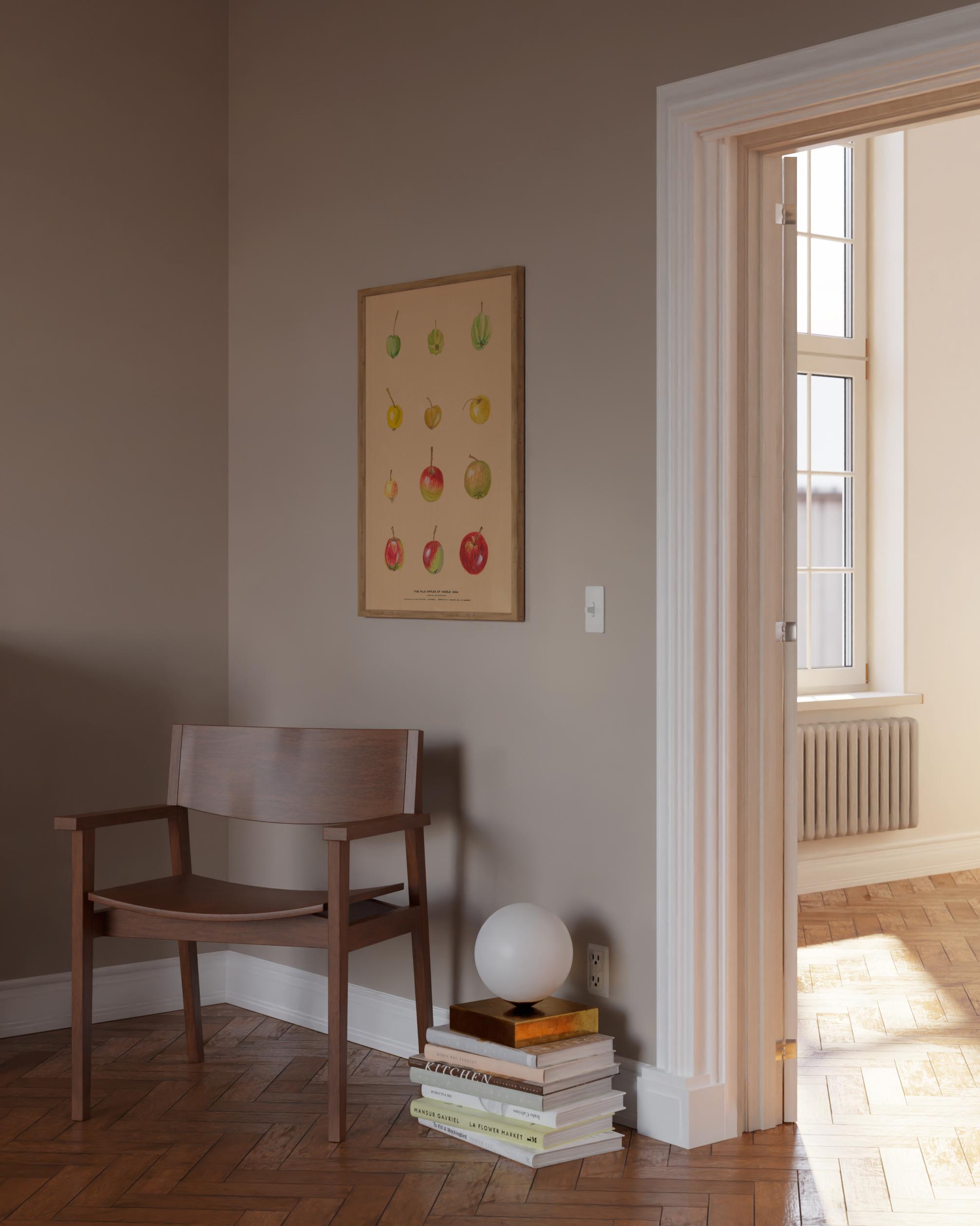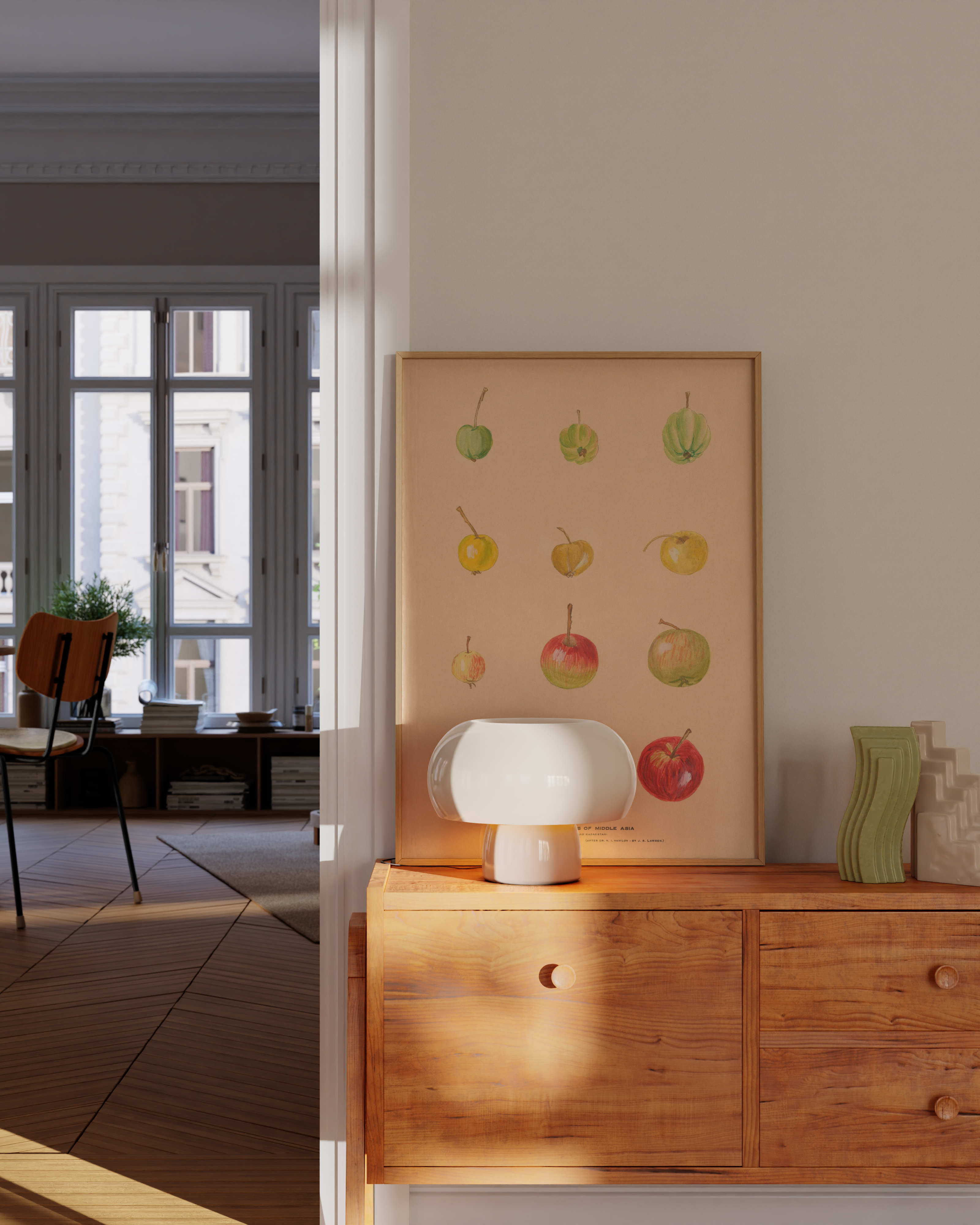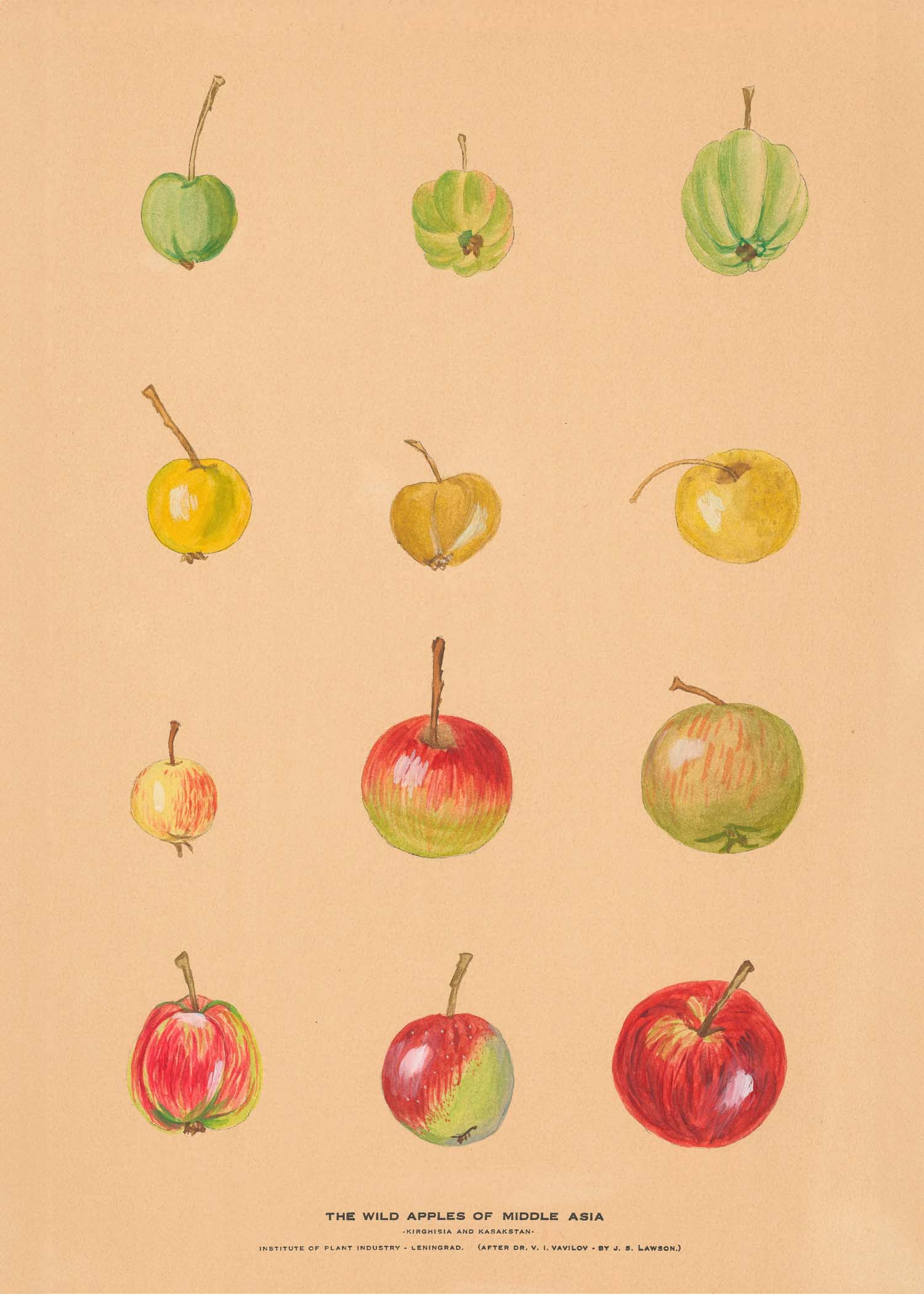 Opdag "Apples of Middle Asia" plakaten, en visuel fest af naturtro æbleillustrationer. Hver frugt er fanget i levende farver, fra smaragdgrøn til solmoden rød, arrangeret på en varm beige baggrund. Perfekt til køkkenet eller stuen, denne plakat tilføjer et strejf af naturens skønhed til dit hjem.