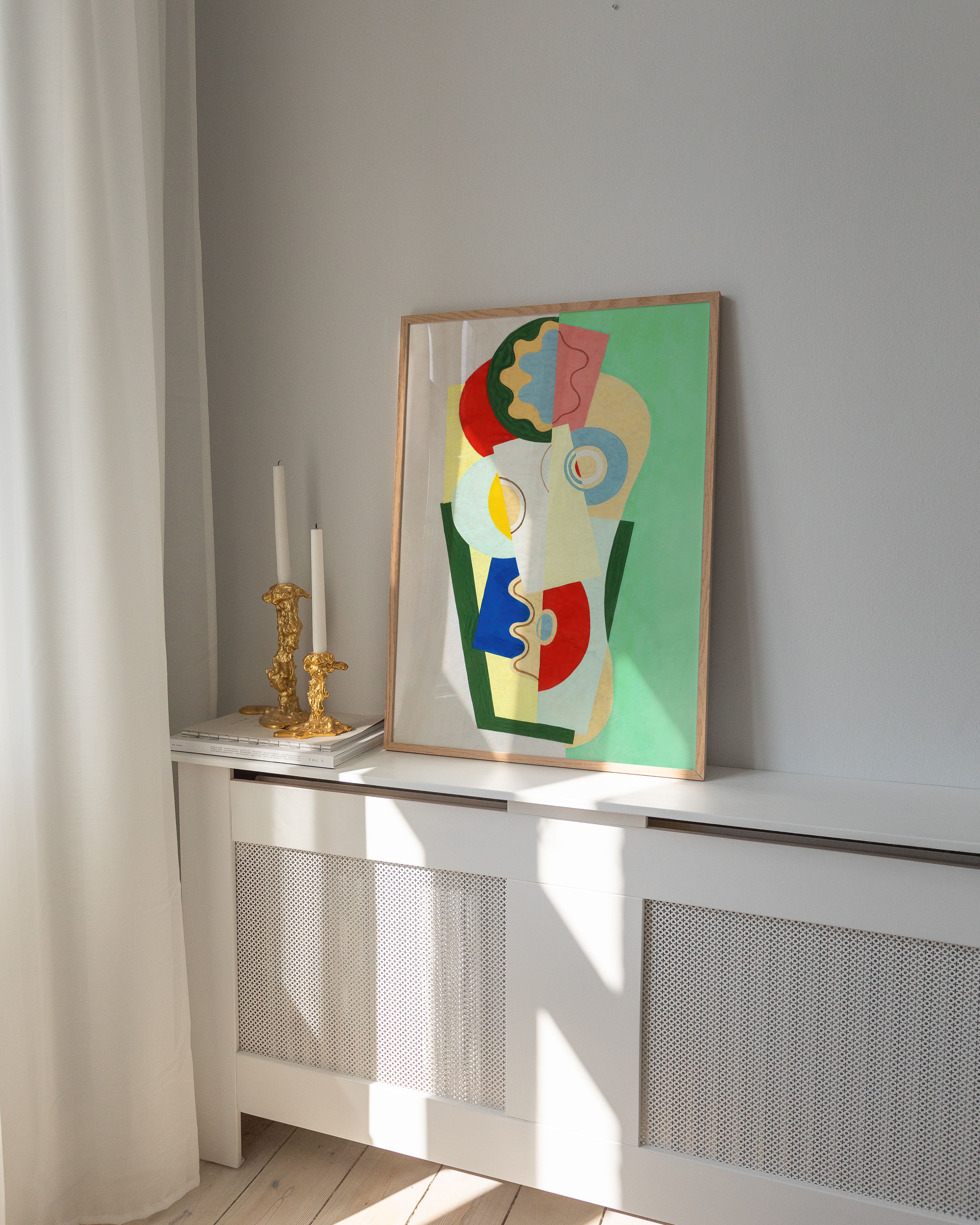 "Bouquet de fleurs" - Oplev en farverig symfoni af abstrakte former og livlige nuancer. Denne unikke plakat kombinerer grøn, rød, blå og gul i et fascinerende design, der bringer kunst og natur sammen. Perfekt til at tilføje et strejf af elegance og kreativitet til ethvert rum.