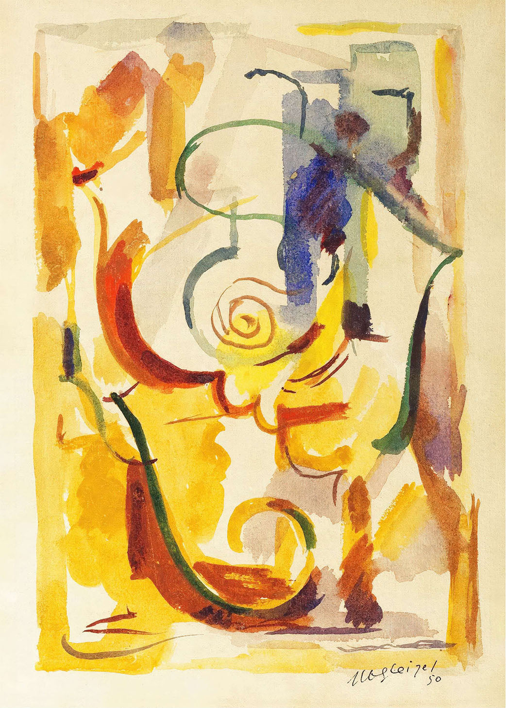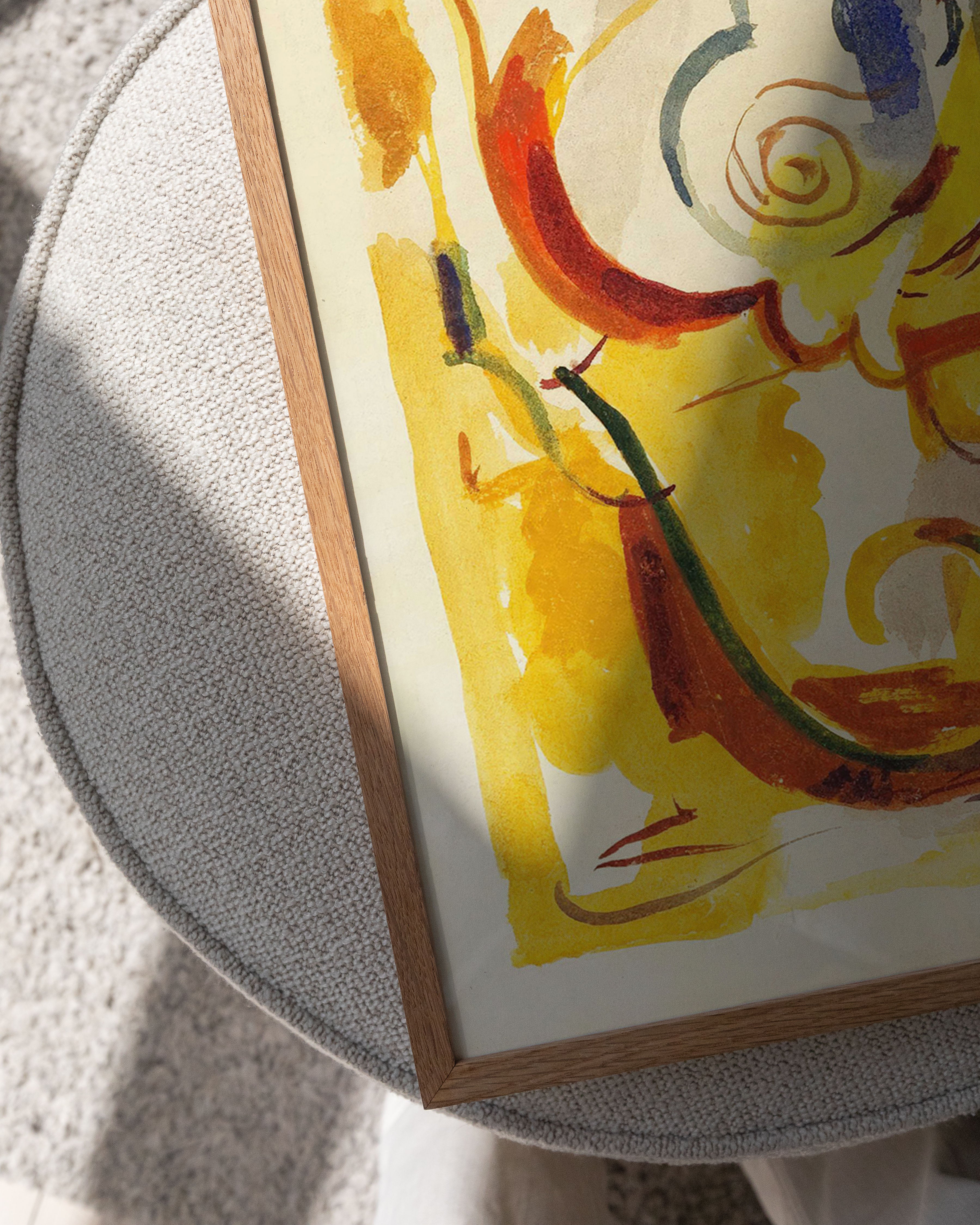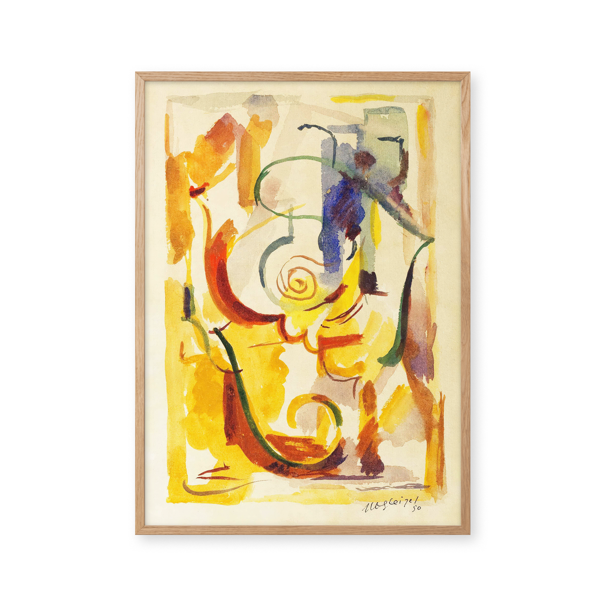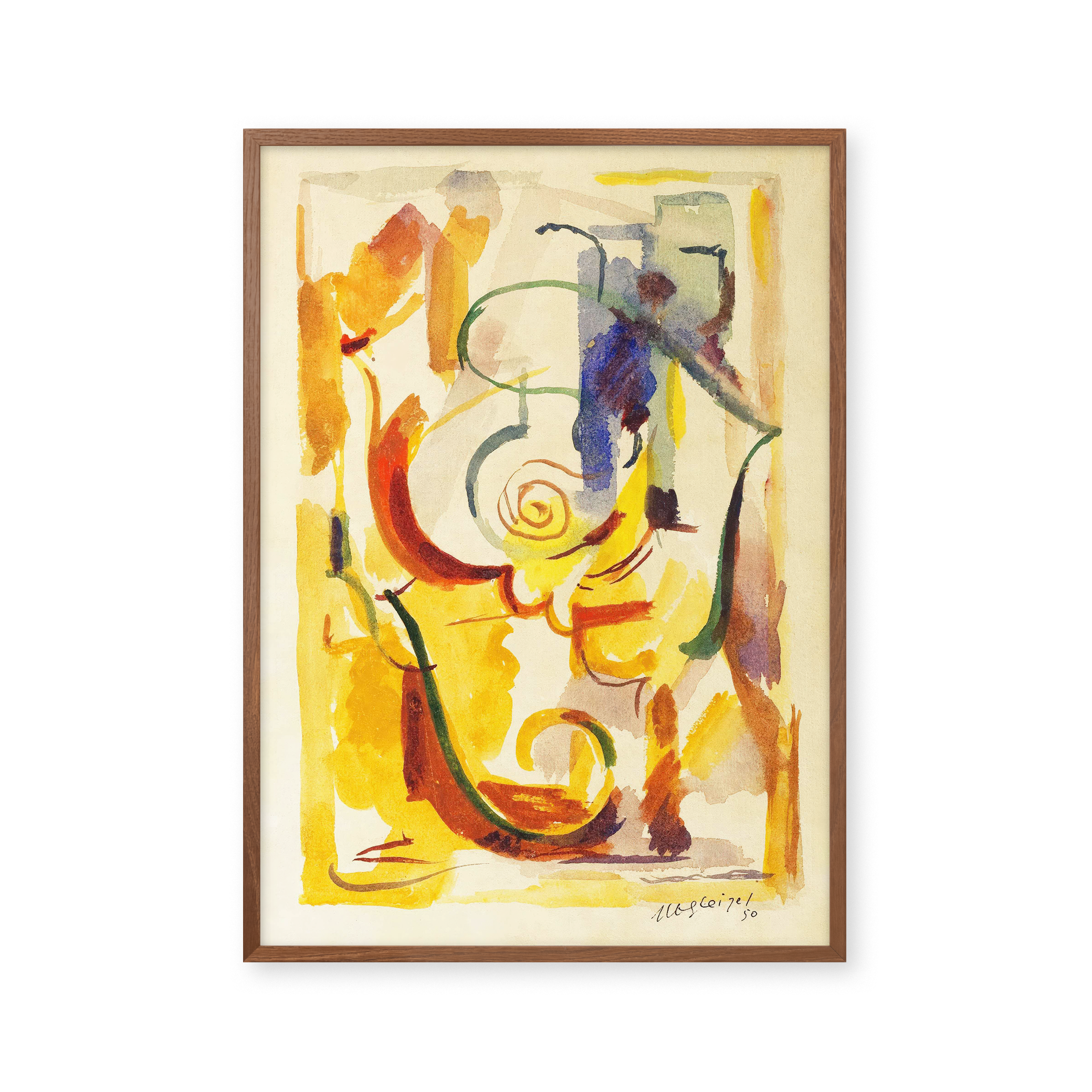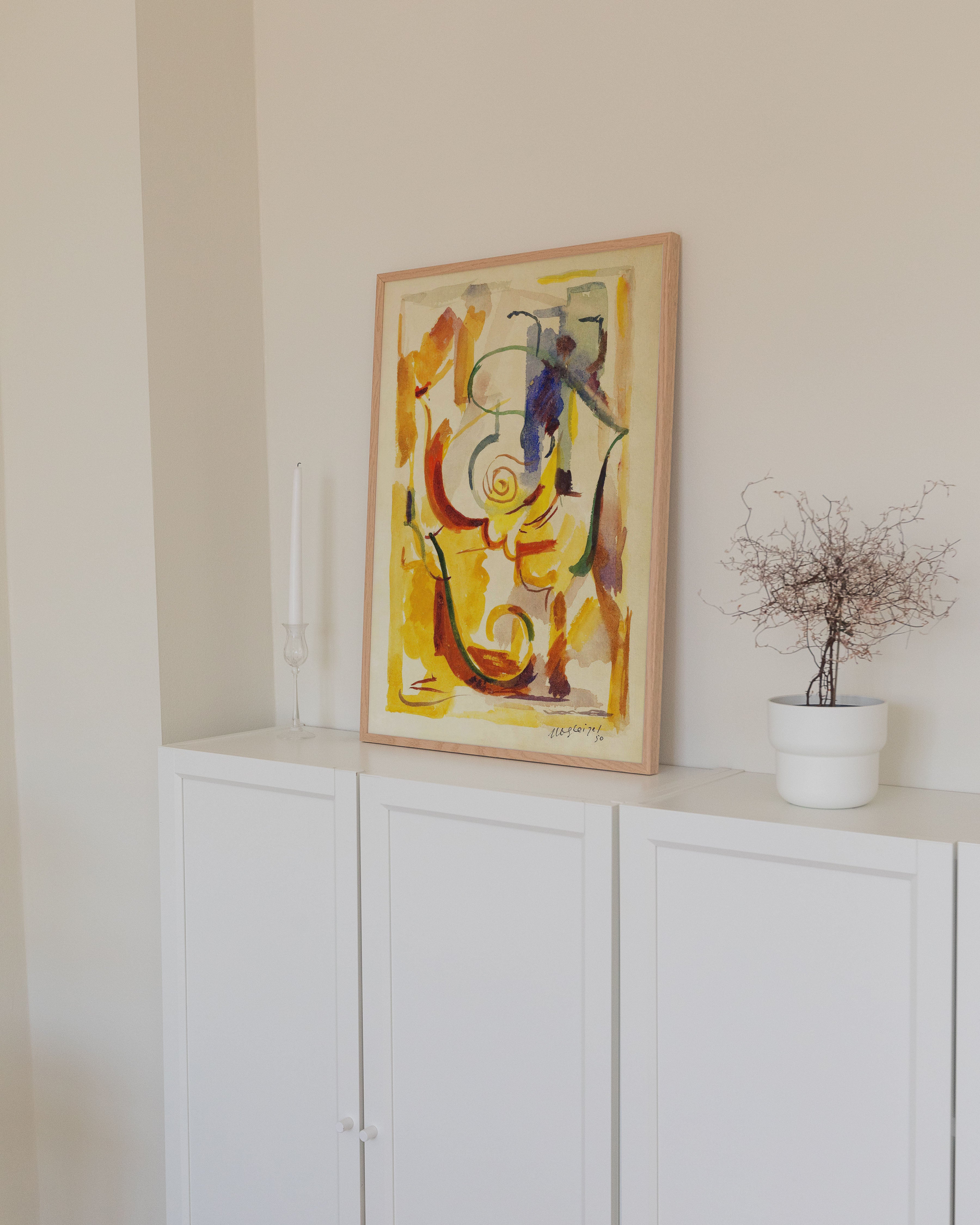 "COMPOSITION 4" - Oplev en eksplosion af farver med denne unikke plakat. Abstrakte penselstrøg i levende gule, røde og blå nuancer skaber en dynamisk og fængslende visuel oplevelse. Perfekt til at tilføje kunstnerisk flair til ethvert rum.