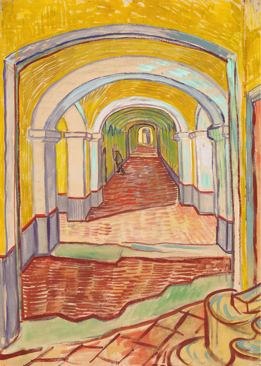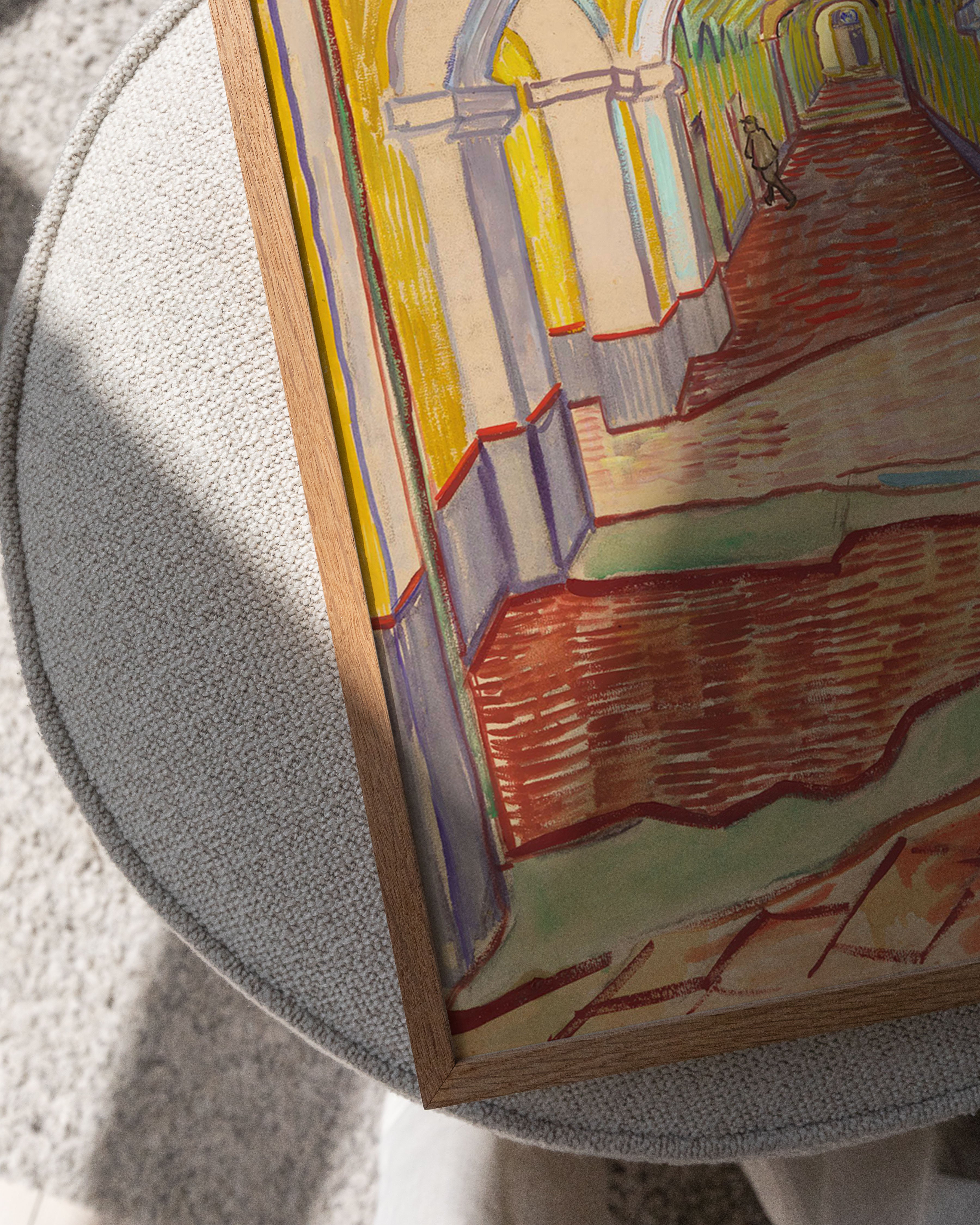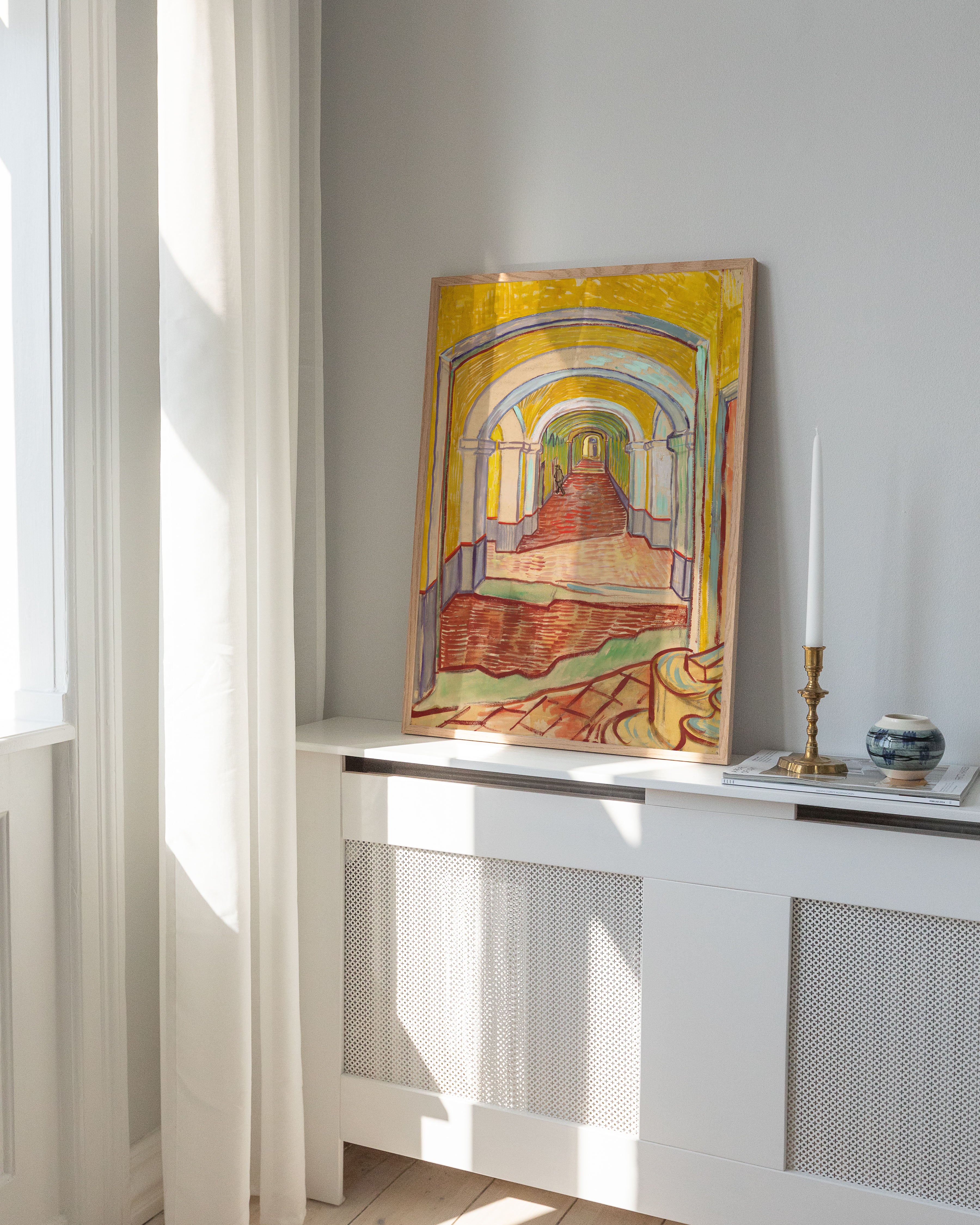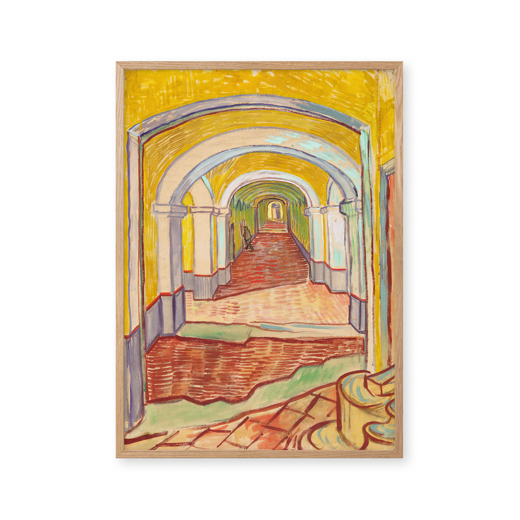 "Corridor in the Asylum" plakat: Oplev en hypnotiserende rejse gennem en farverig korridor med intense gule og orange nuancer. Denne unikke kunstplakat fanger sindets labyrintiske dybder og tilføjer et strejf af mystik til ethvert rum. Perfekt til kunstelskere og indretningsentusiaster.