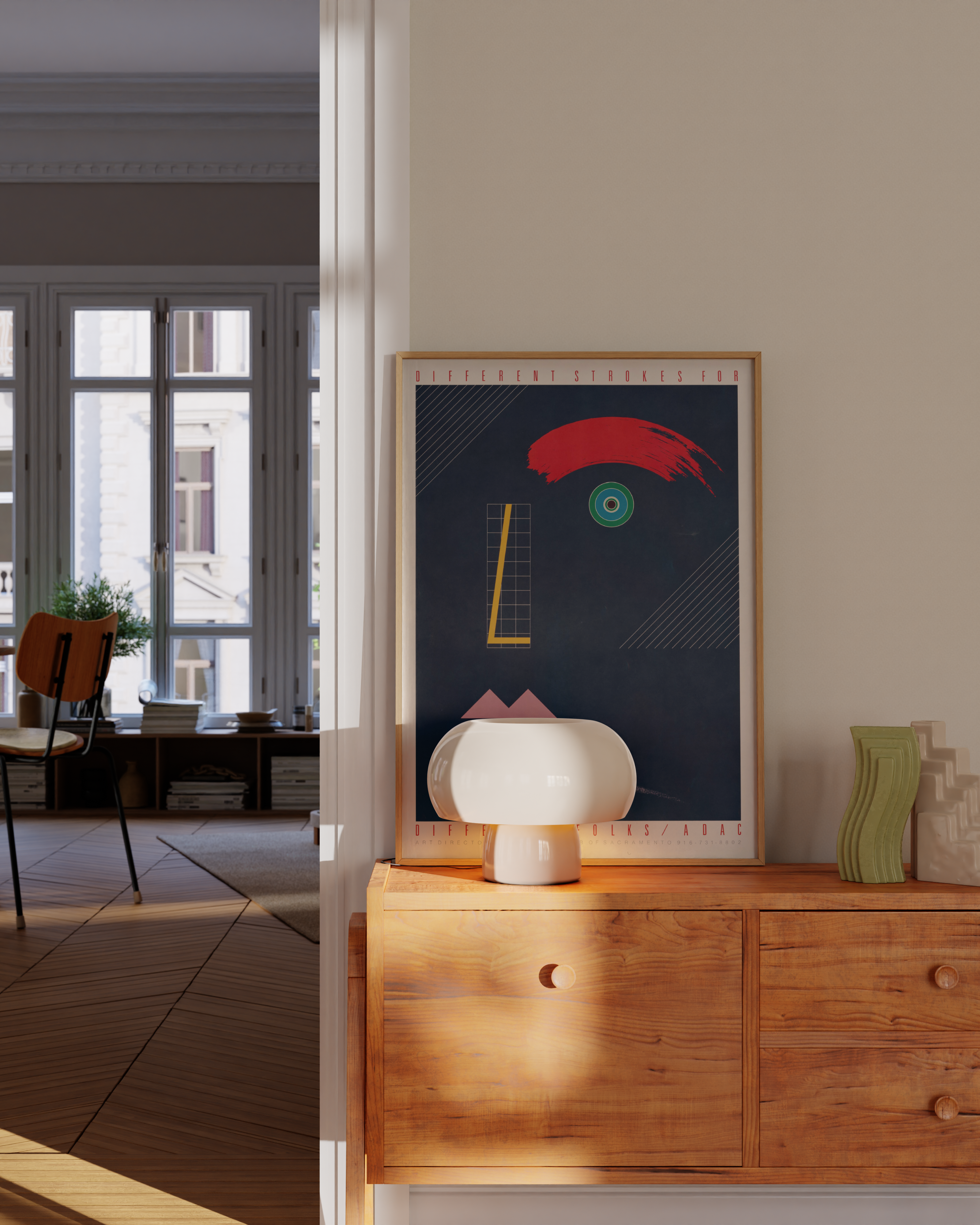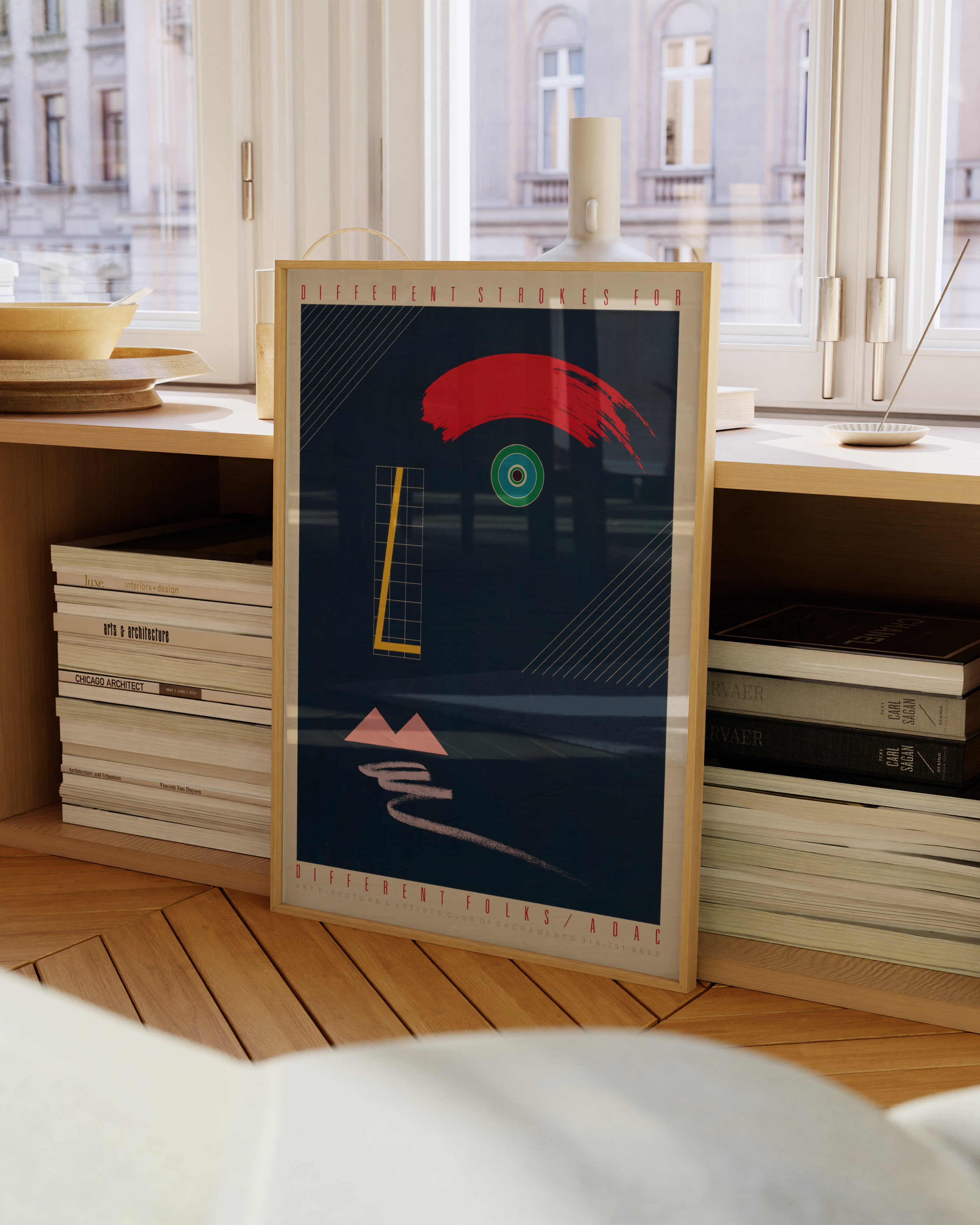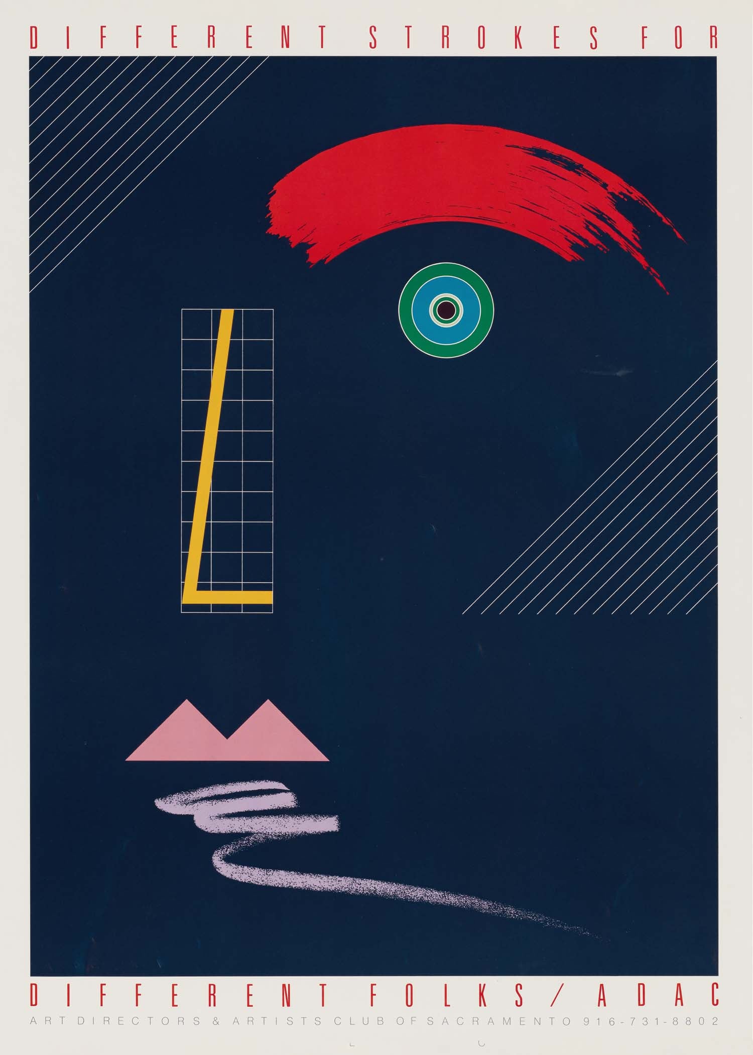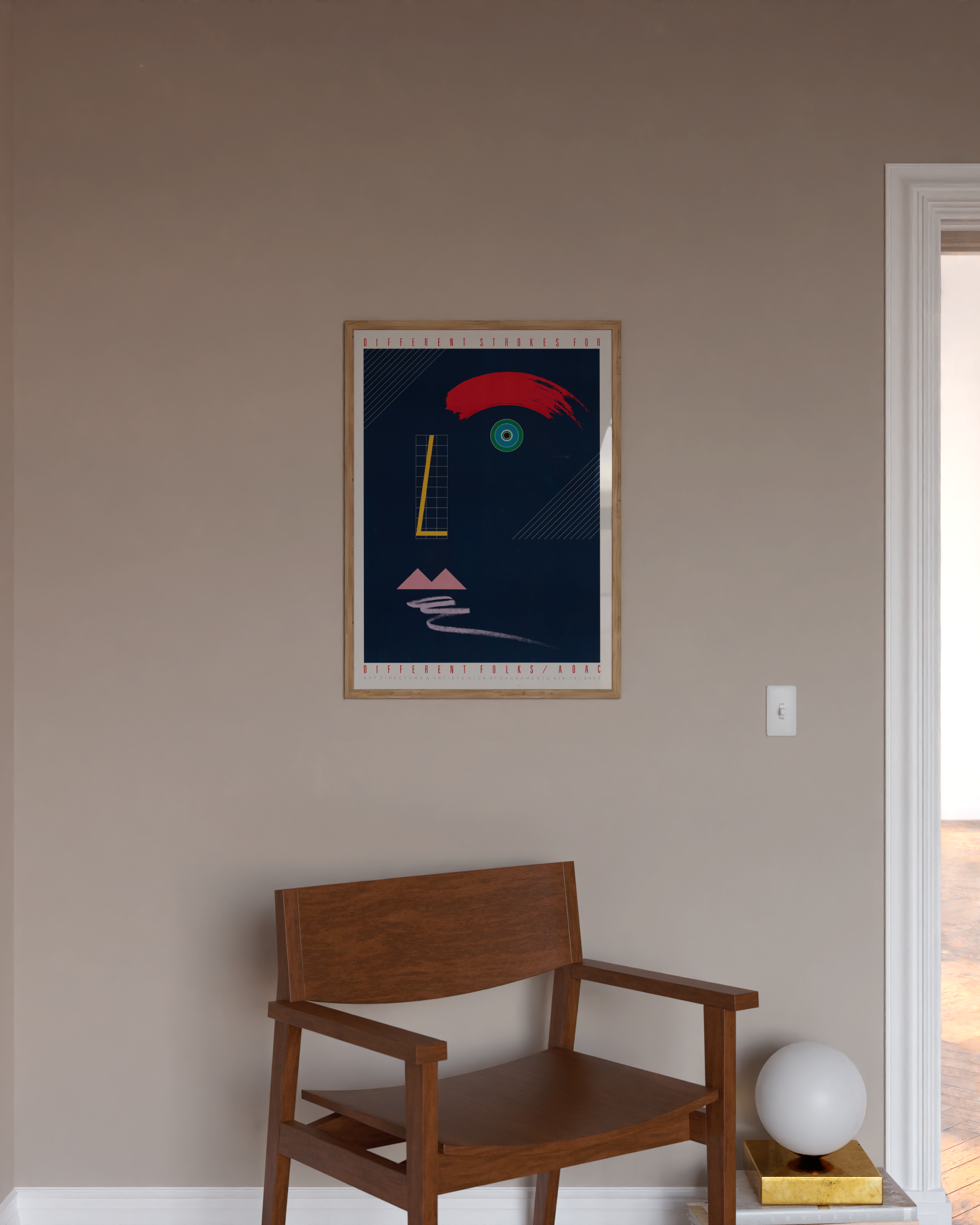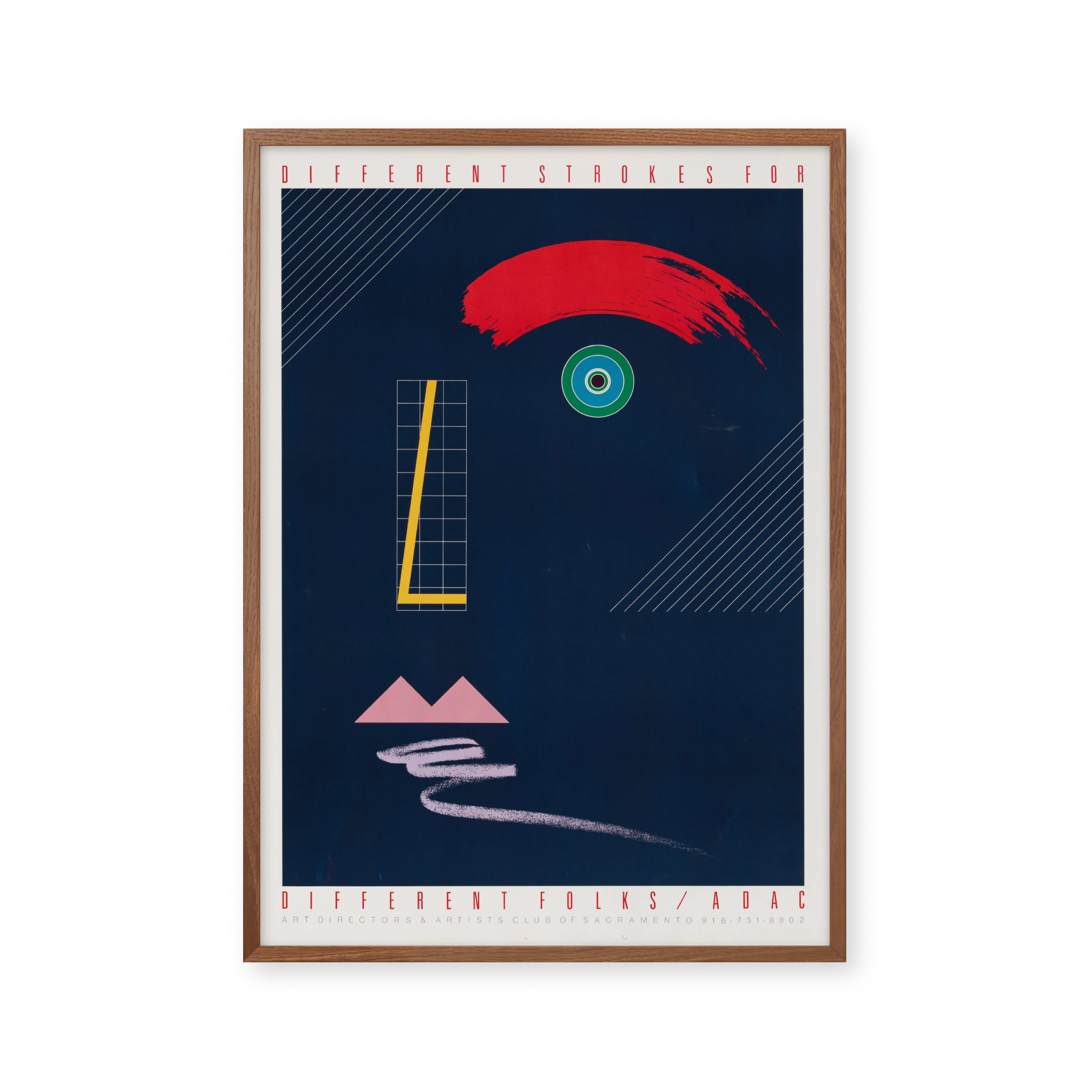 Opdag "Different Strokes for Different Folks" - en plakat, der fanger øjet med sin dristige røde bue og hypnotiserende øje. Denne moderne kunstneriske fortolkning blander geometriske former og levende farver, perfekt til at tilføje et strejf af individualitet til ethvert rum. En ægte samtalestarter!