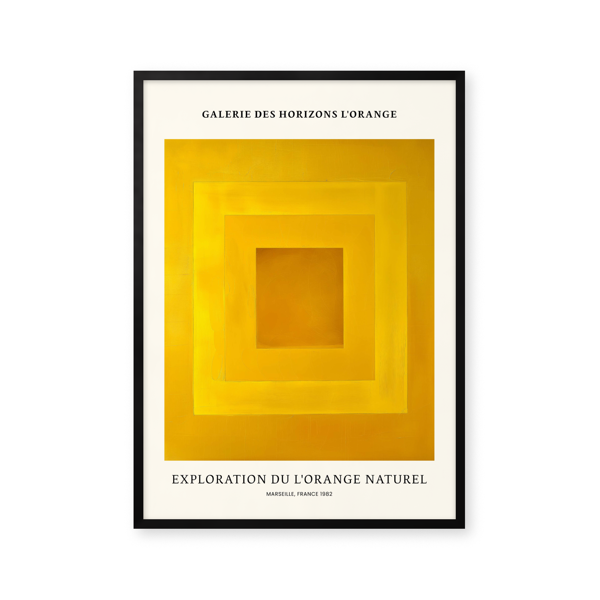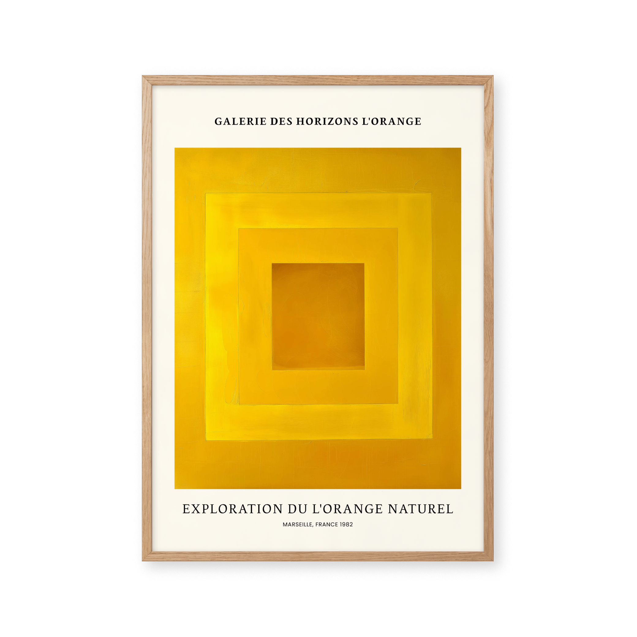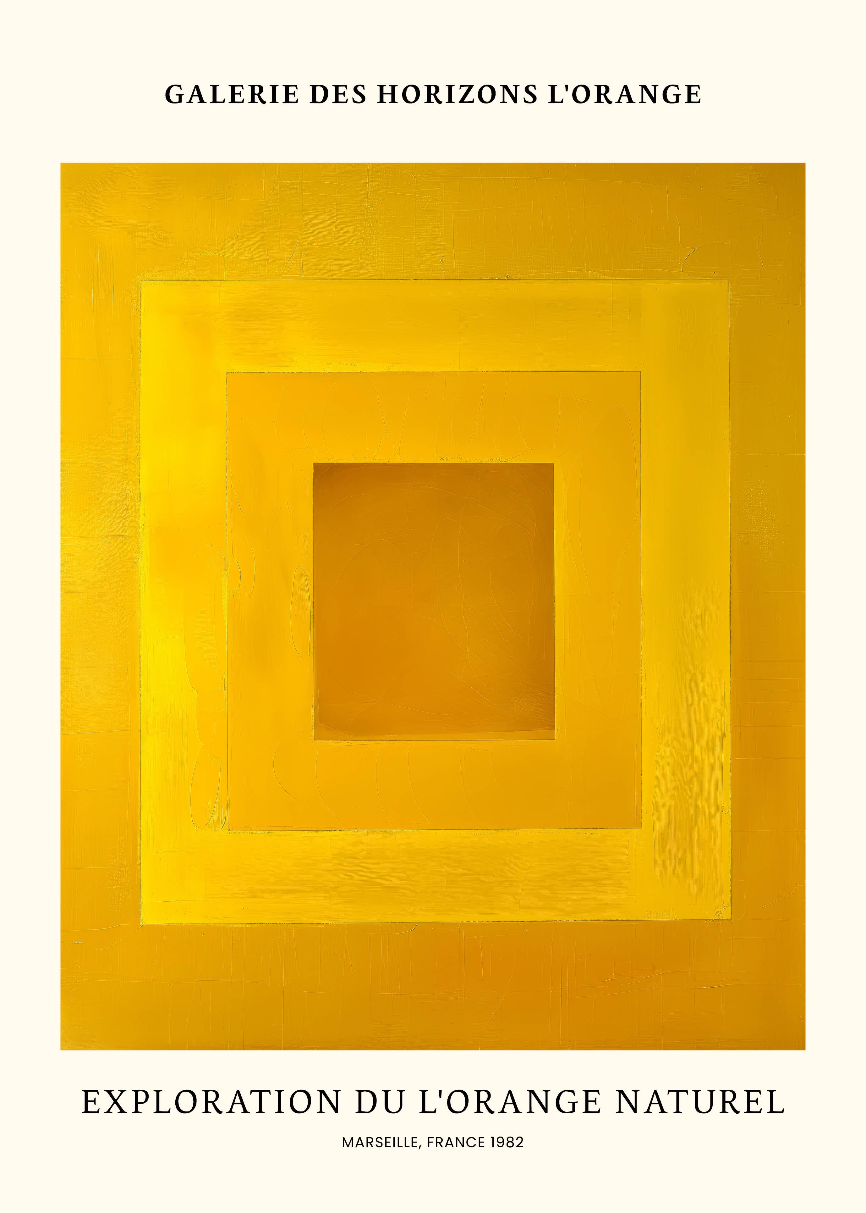 Opdag "Exploration du L'Orange Naturel" – en plakat, der fanger blikket med sin levende gul-orange palet. Perfekt til at tilføje et strejf af varme og modernitet til ethvert rum. Marseille, 1982, genopliv historien og kunsten i dit hjem. Ideal til kunstelskere og farveentusiaster.