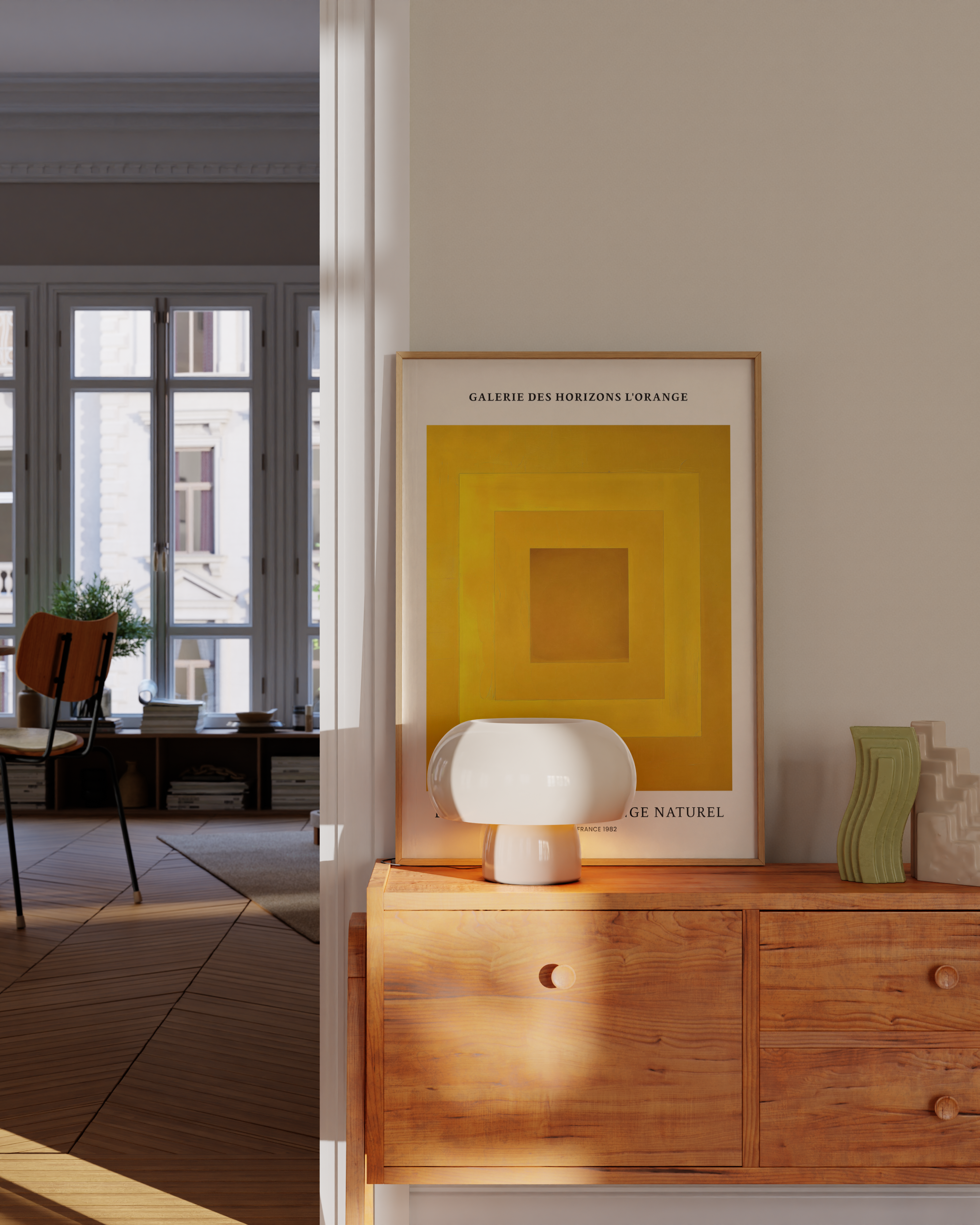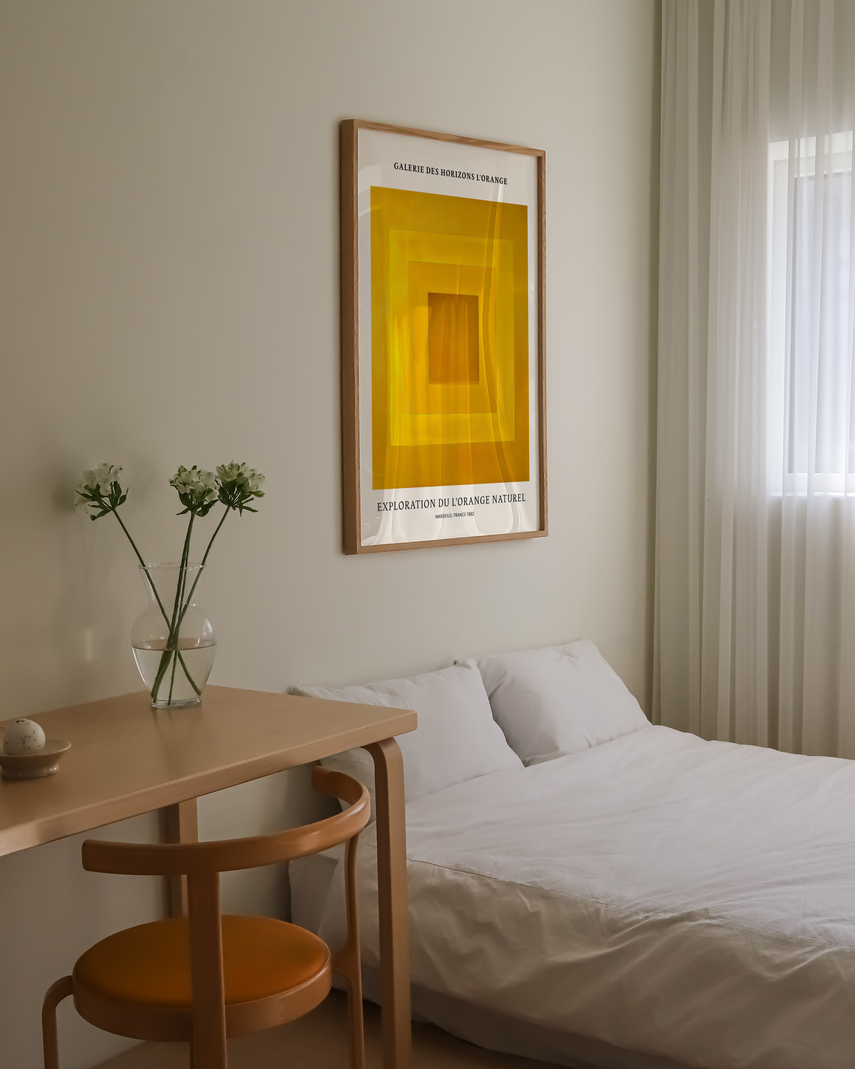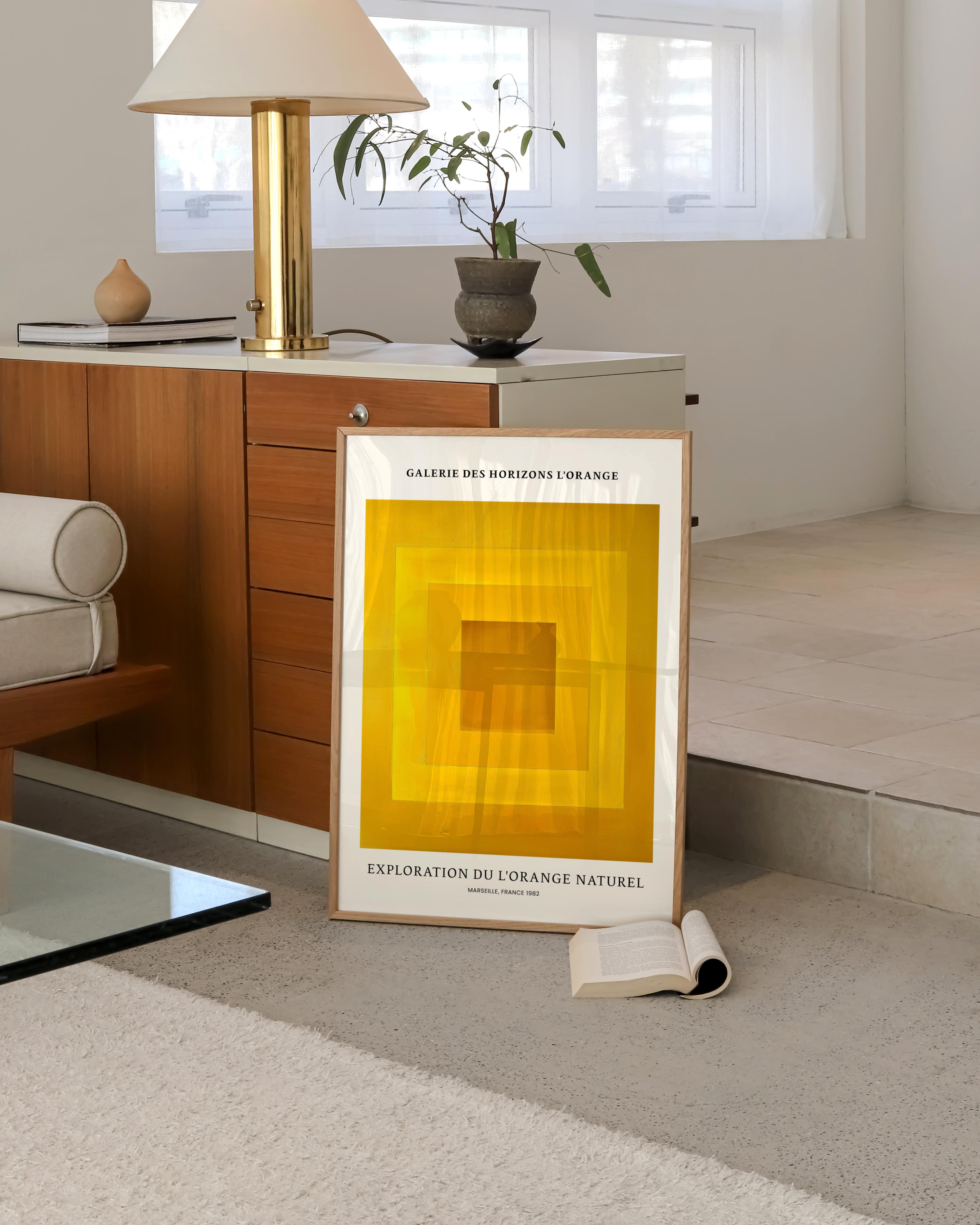 Opdag "Exploration du L'Orange Naturel" – en plakat, der fanger blikket med sin levende gul-orange palet. Perfekt til at tilføje et strejf af varme og modernitet til ethvert rum. Marseille, 1982, genopliv historien og kunsten i dit hjem. Ideal til kunstelskere og farveentusiaster.