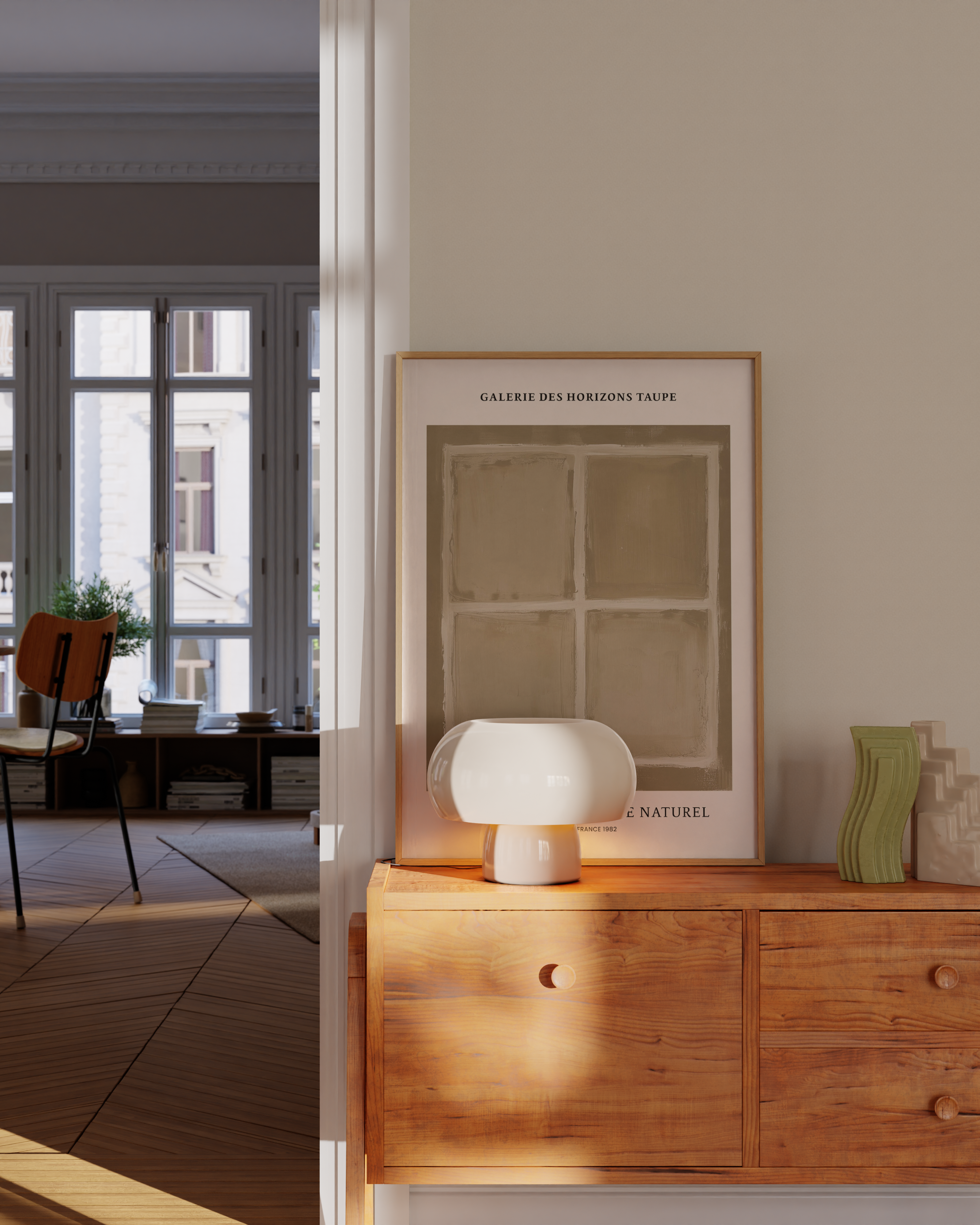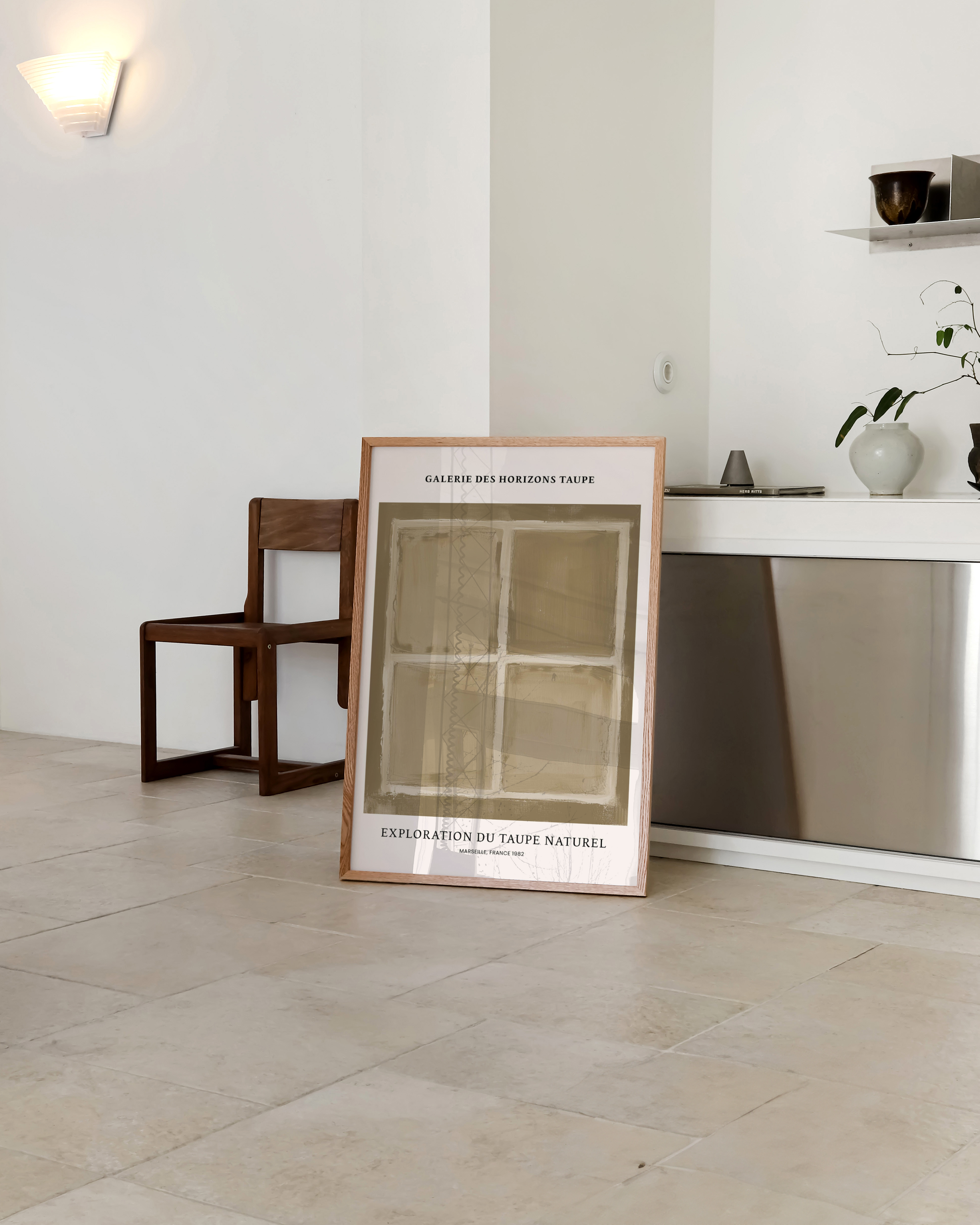 Opdag "Galerie des Horizons Taupe" – en plakat, der indfanger essensen af naturlig taupe i et minimalistisk design. Perfekt til at tilføje en beroligende atmosfære og en touch af fransk elegance til ethvert rum. Fremhæv din væg med denne tidløse og sofistikerede kunst. Ideal til kunstelskere og trendsettere.