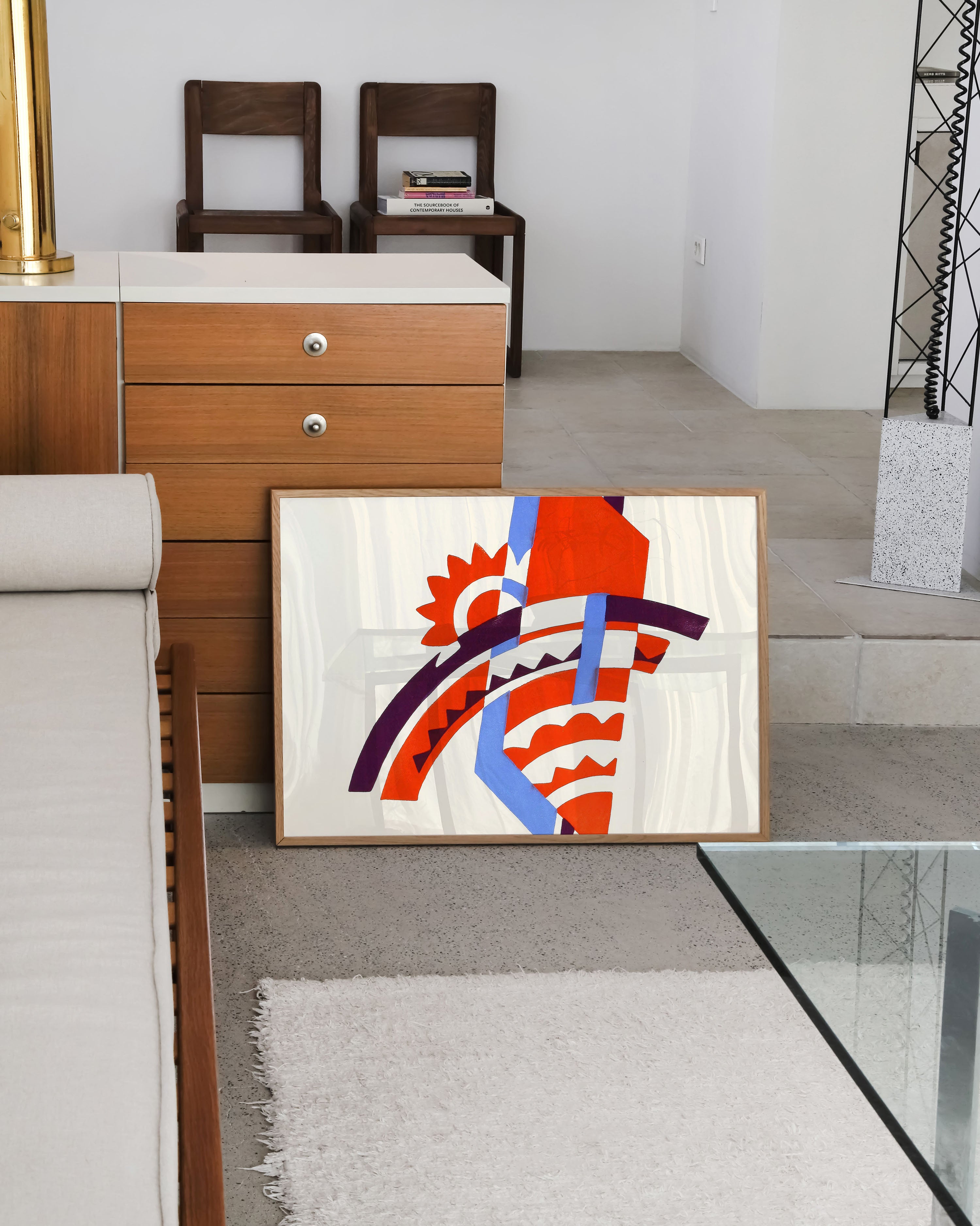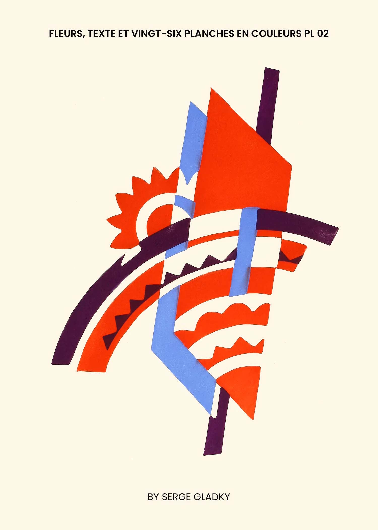 Opdag "Fleurs, Texte Et Vingt-Six Planches En Couleurs" - en moderne plakat, der fanger øjet med Serge Gladky's dristige geometriske former og en levende farvepalet. Perfekt til at tilføje et kunstnerisk touch til ethvert rum, denne plakat blander abstrakte blomstermotiver med skarpe linjer og kontrasterende nuancer af rød, blå og orange.