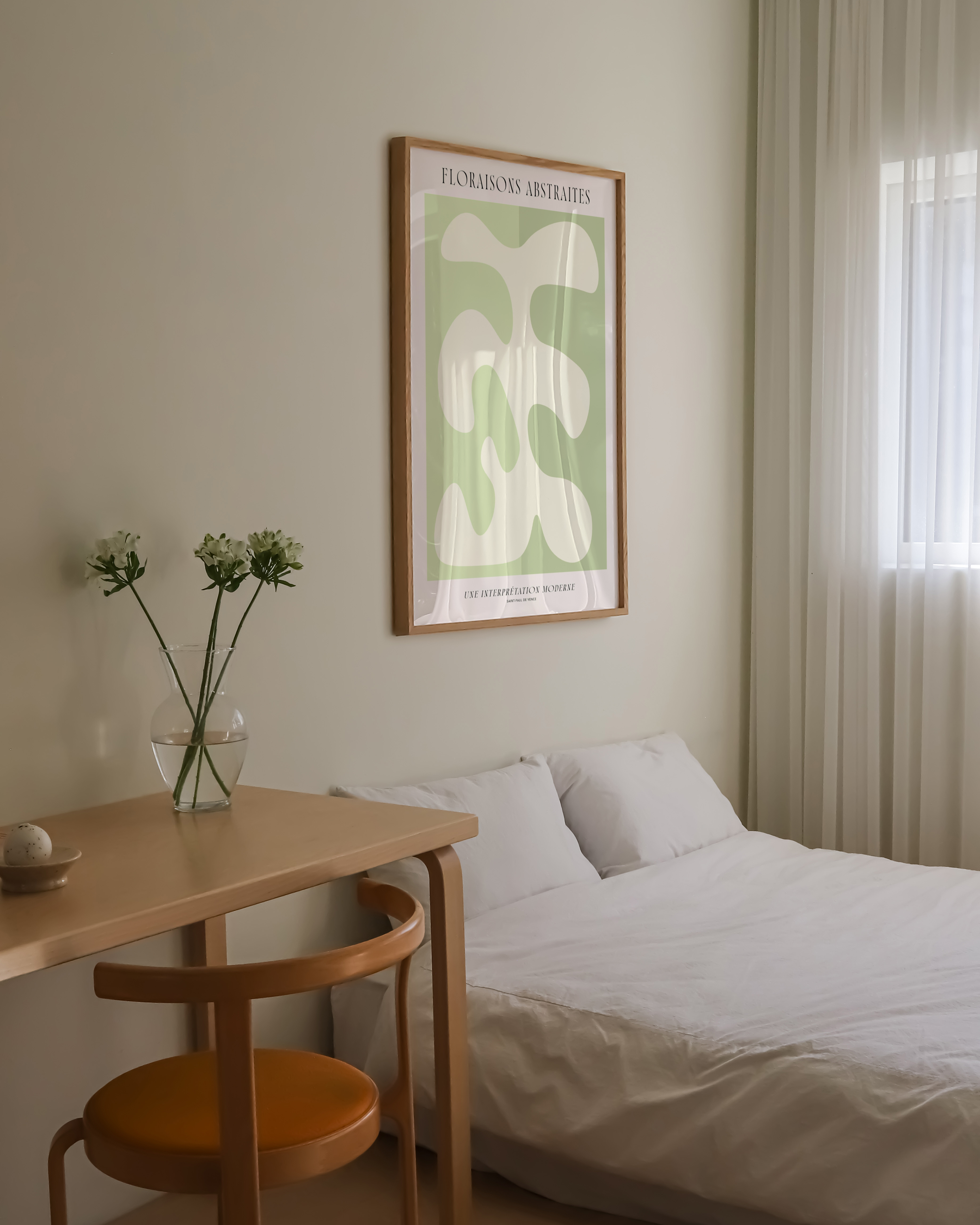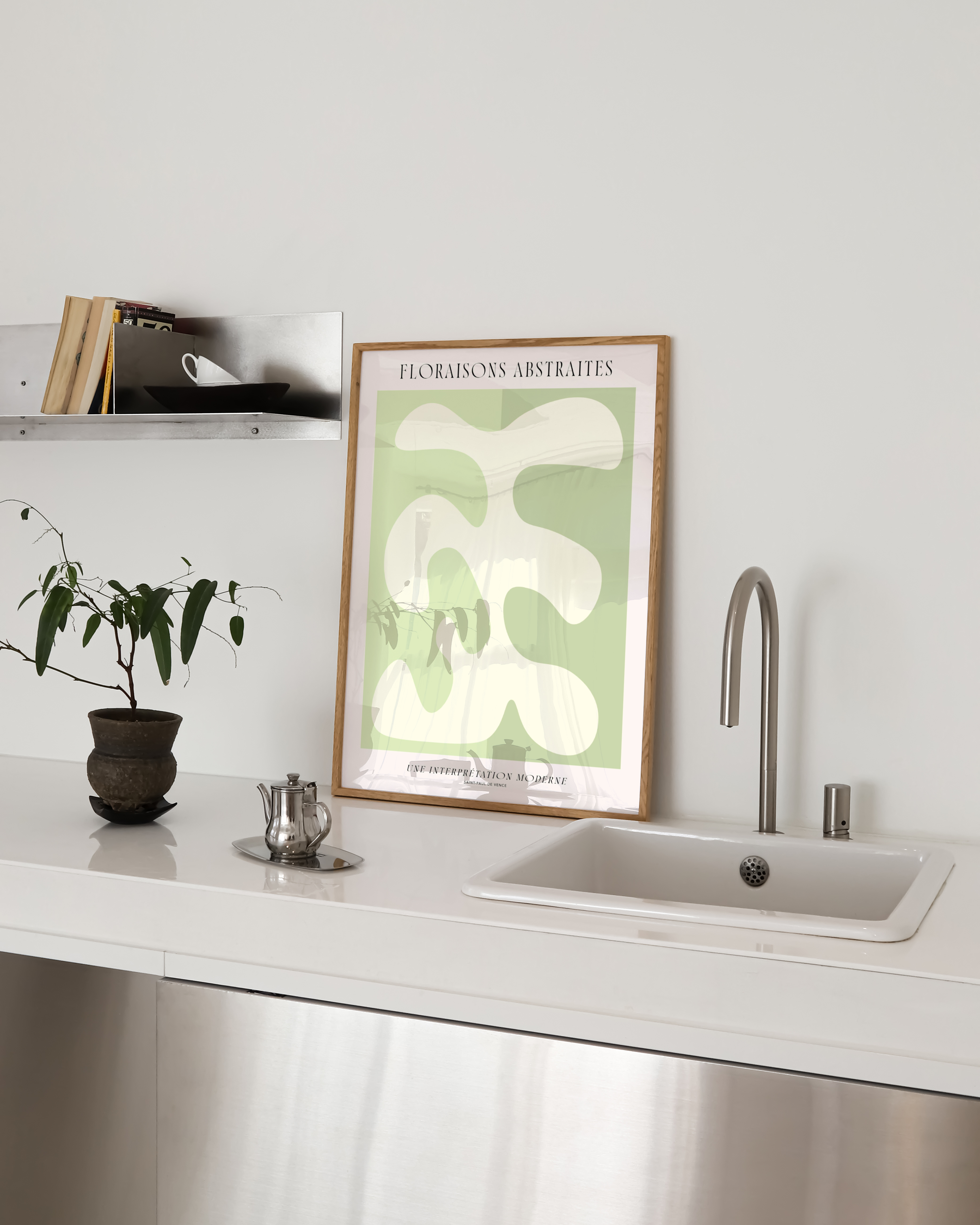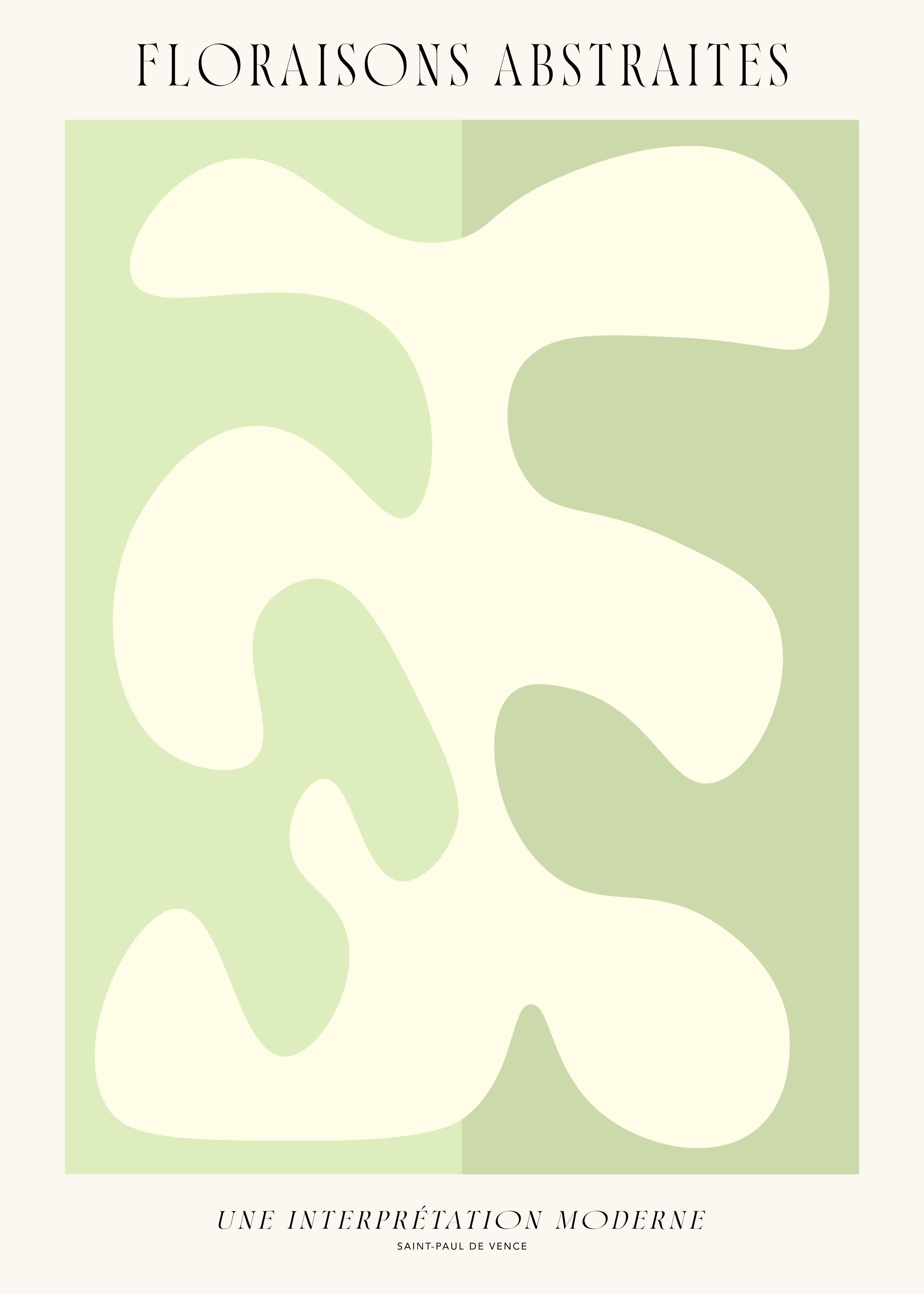 Opdag "Floraisons Abstraites" – en moderne fortolkning af naturens skønhed. Denne plakat kombinerer bløde, bølgende former med en beroligende palette af grønne nuancer, der tilfører et strejf af elegance og ro til ethvert rum. Perfekt til kunstelskere og trendsettere.
