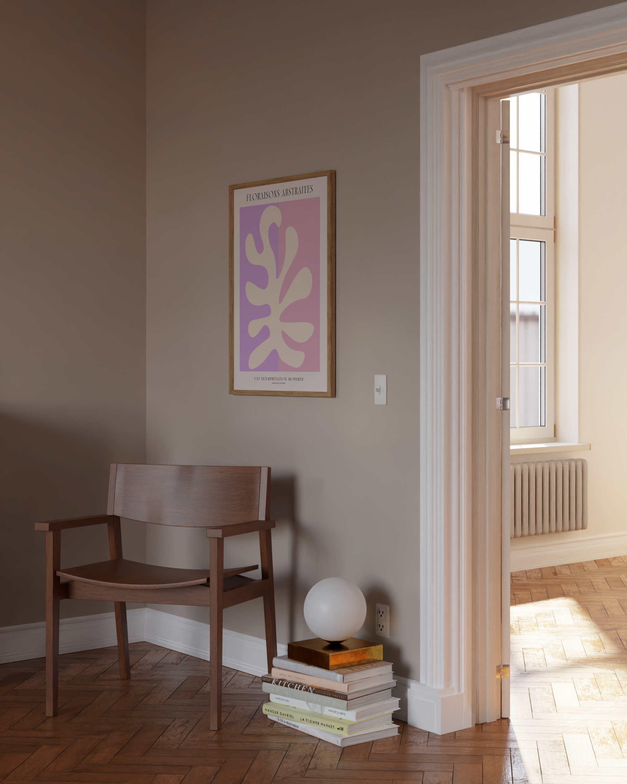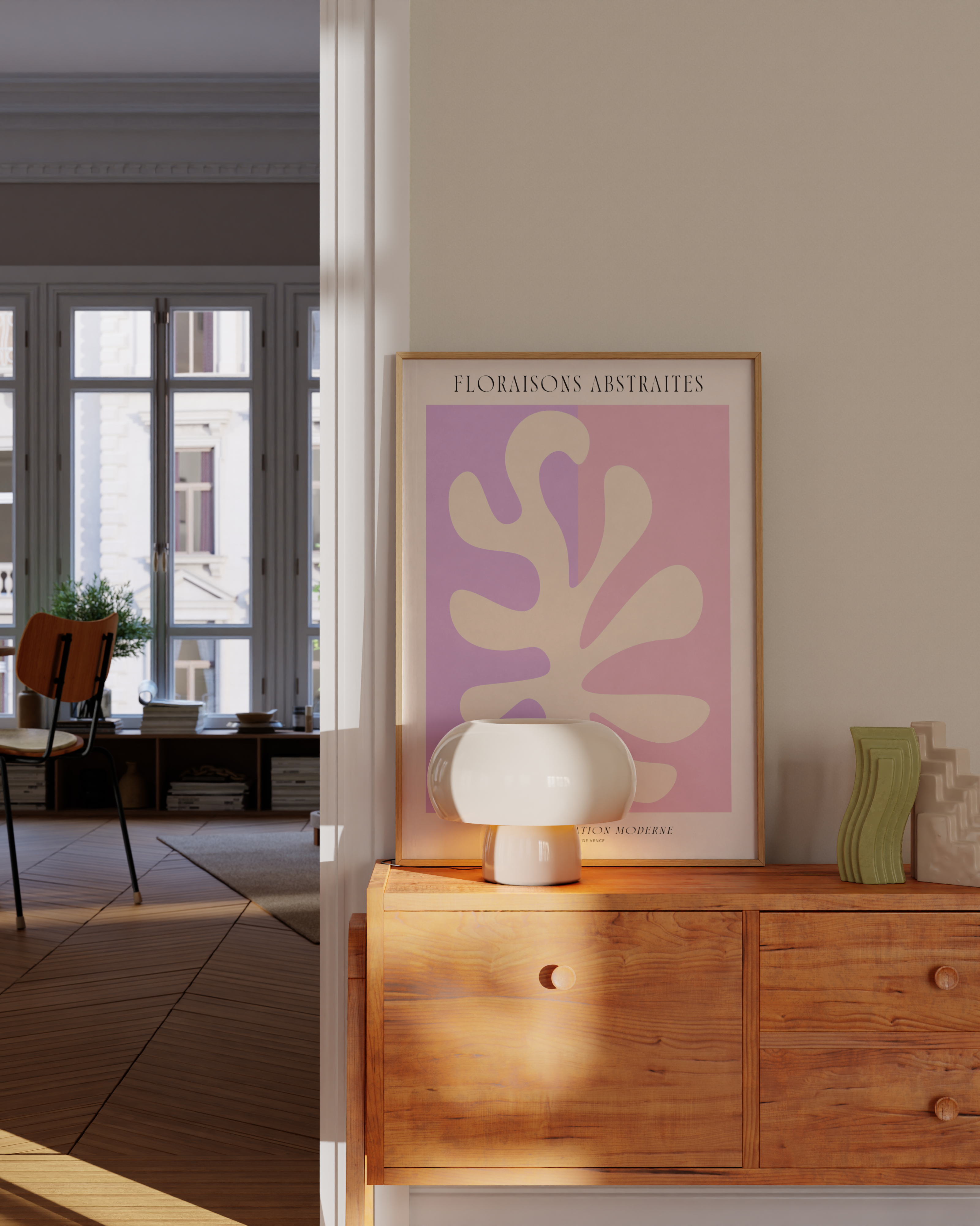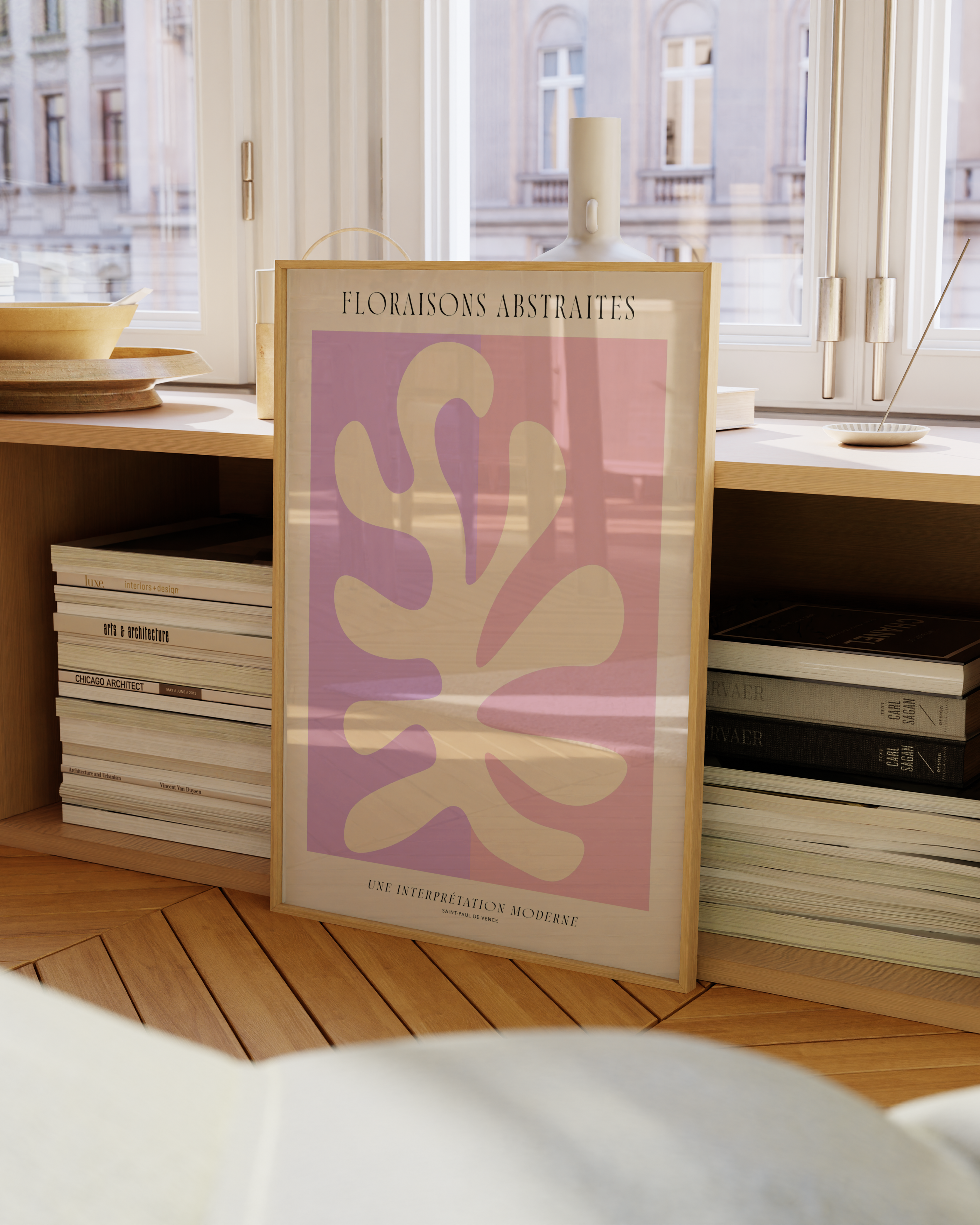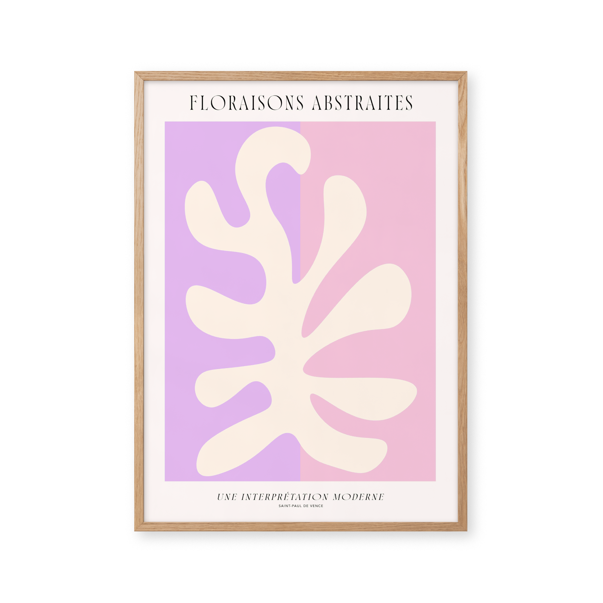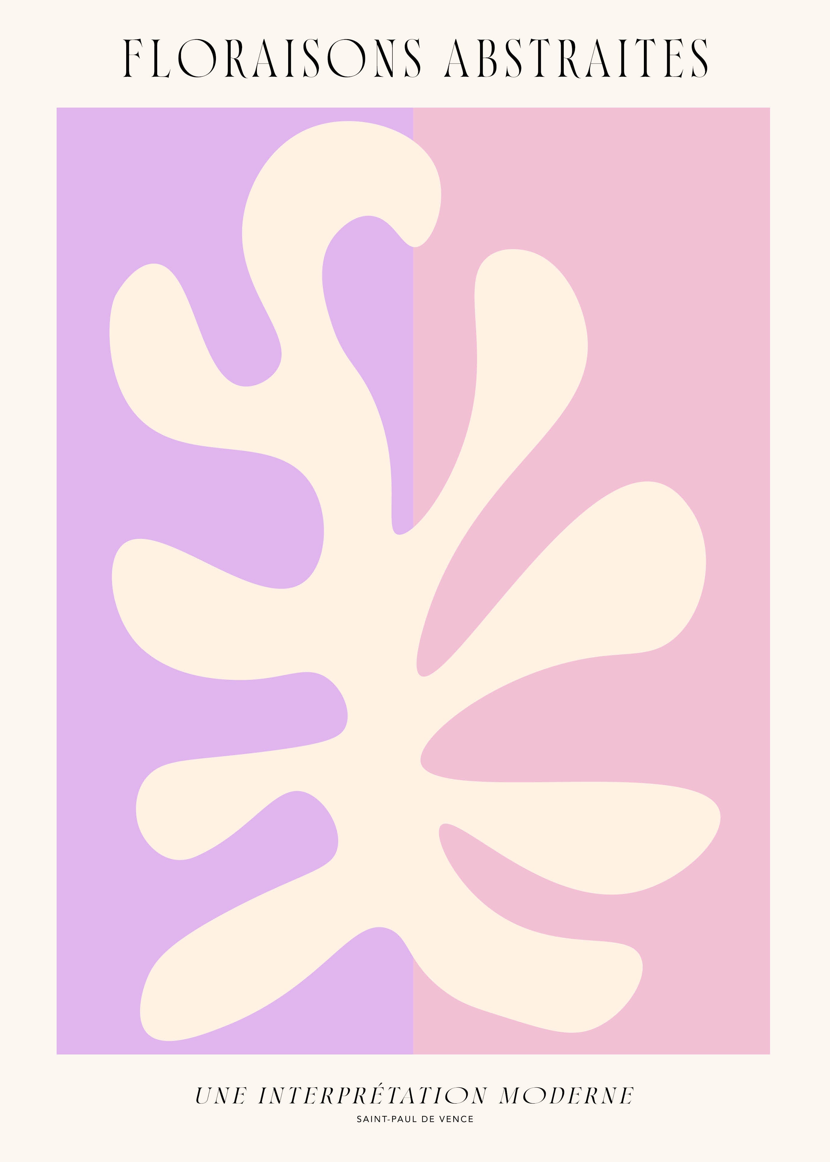 Opdag "Floraisons Abstraites" - en moderne fortolkning af naturens skønhed. Denne plakat kombinerer bløde pastelfarver med en stiliseret, organisk form, der tilfører et kunstnerisk touch til ethvert rum. Perfekt til dem, der værdsætter minimalistisk design og en rolig farvepalet.