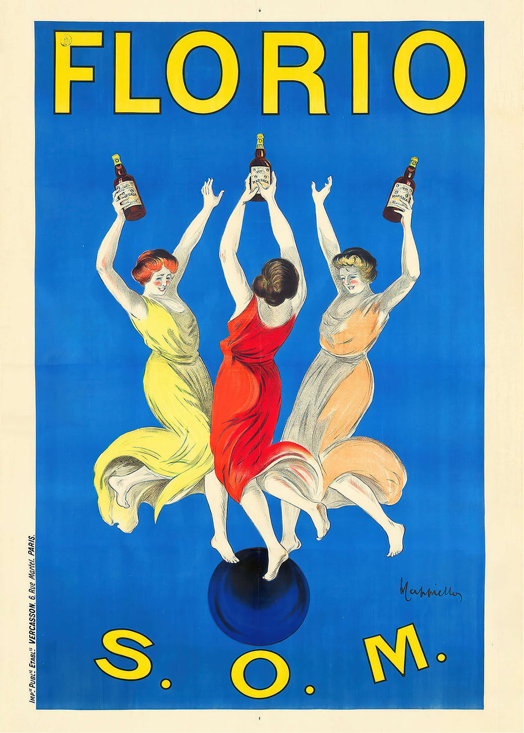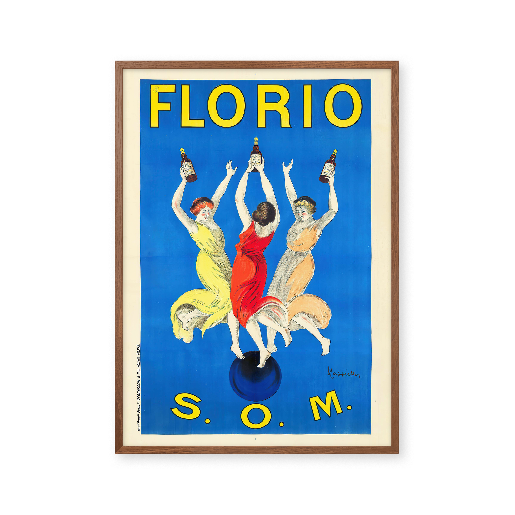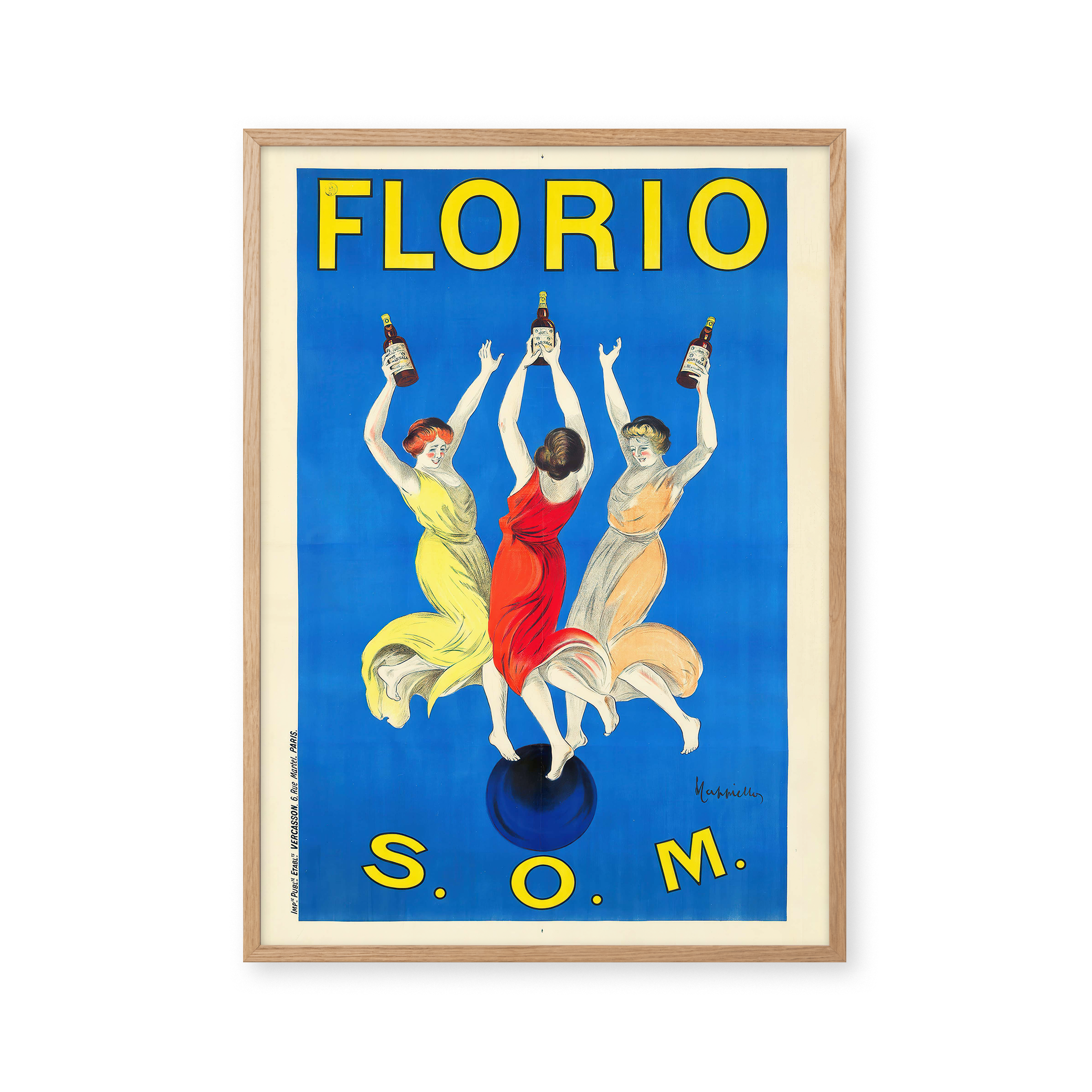 "Florio" - Oplev en eksplosion af farver med denne livlige plakat. Tre dansende figurer i strålende røde, gule og orange nuancer mod en dybblå baggrund. Perfekt til at tilføje et unikt og energisk touch til ethvert rum.