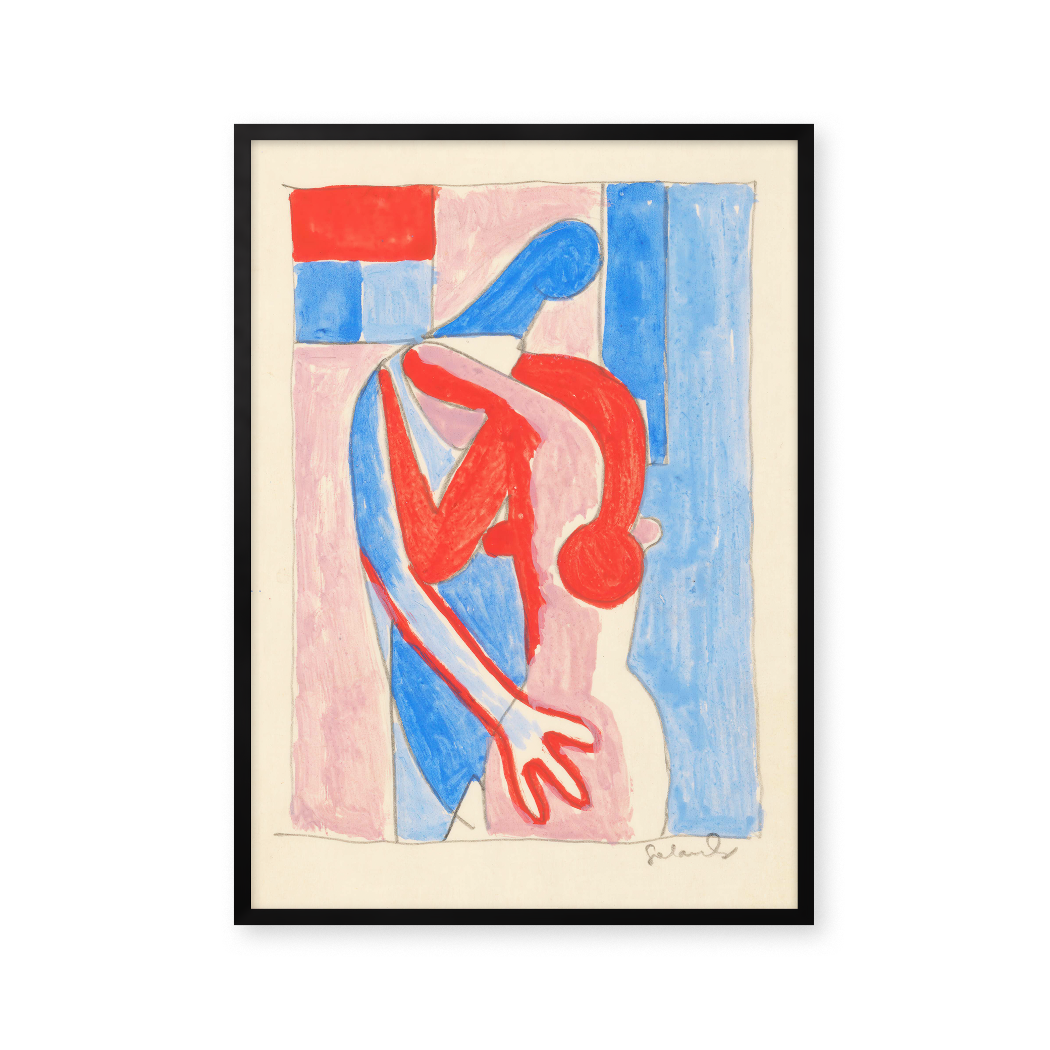 "Hug" - En farverig plakat, der fanger essensen af kærlighed og nærhed. Med levende røde og blå nuancer og unikke geometriske former, bringer denne kunstneriske illustration liv og energi til ethvert rum. Perfekt til at skabe en varm og indbydende atmosfære.