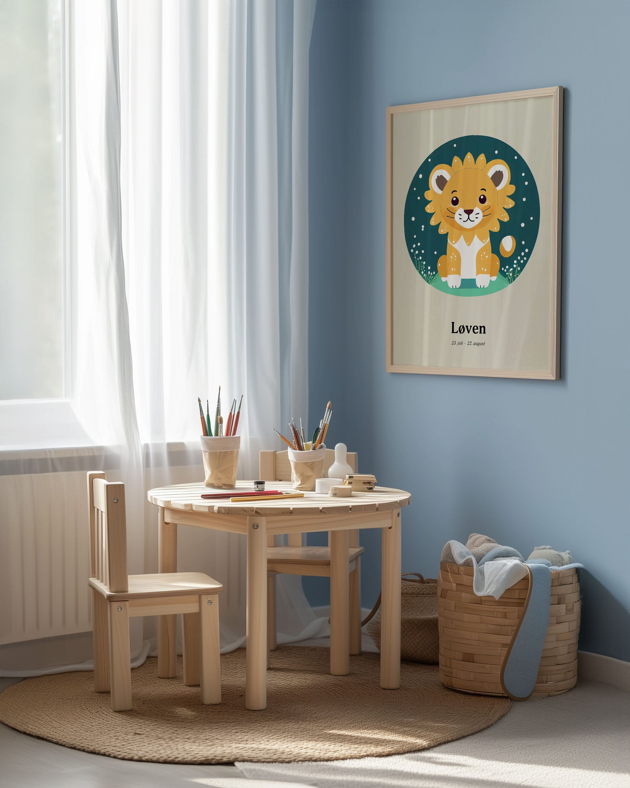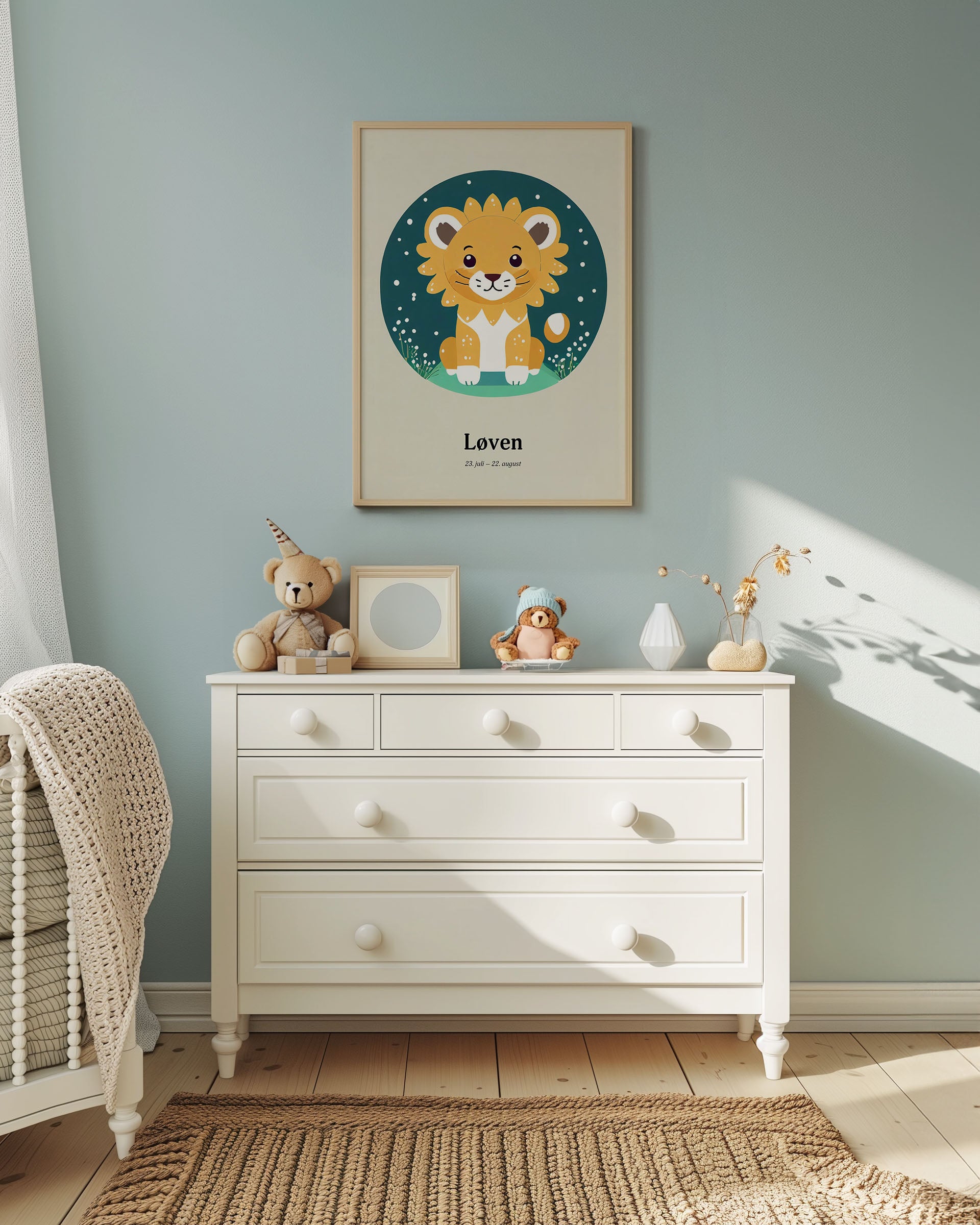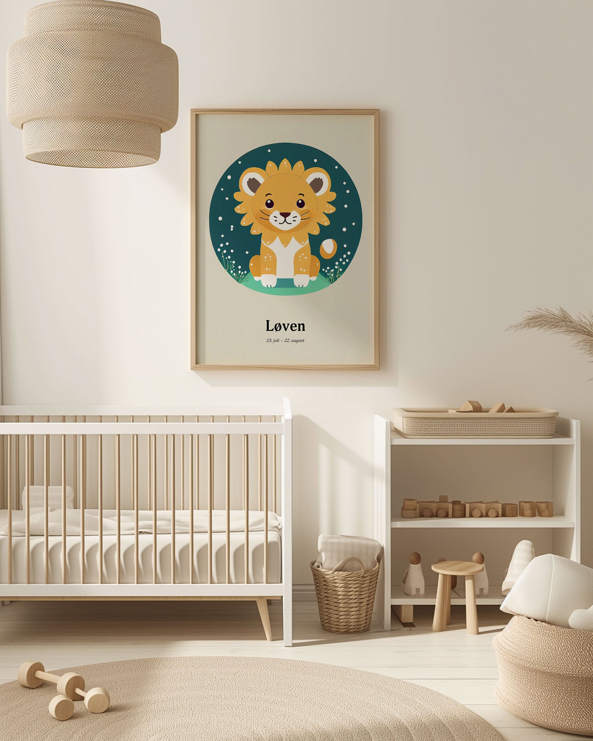 Opdag "Løvens Stjernetegn" plakaten, hvor gyldne nuancer og stjerneglans mødes i et charmerende design. Perfekt til astrologi-entusiaster, denne vægkunst tilføjer varme og personlighed til ethvert rum. En unik gave, der stråler med løvens majestætiske essens.