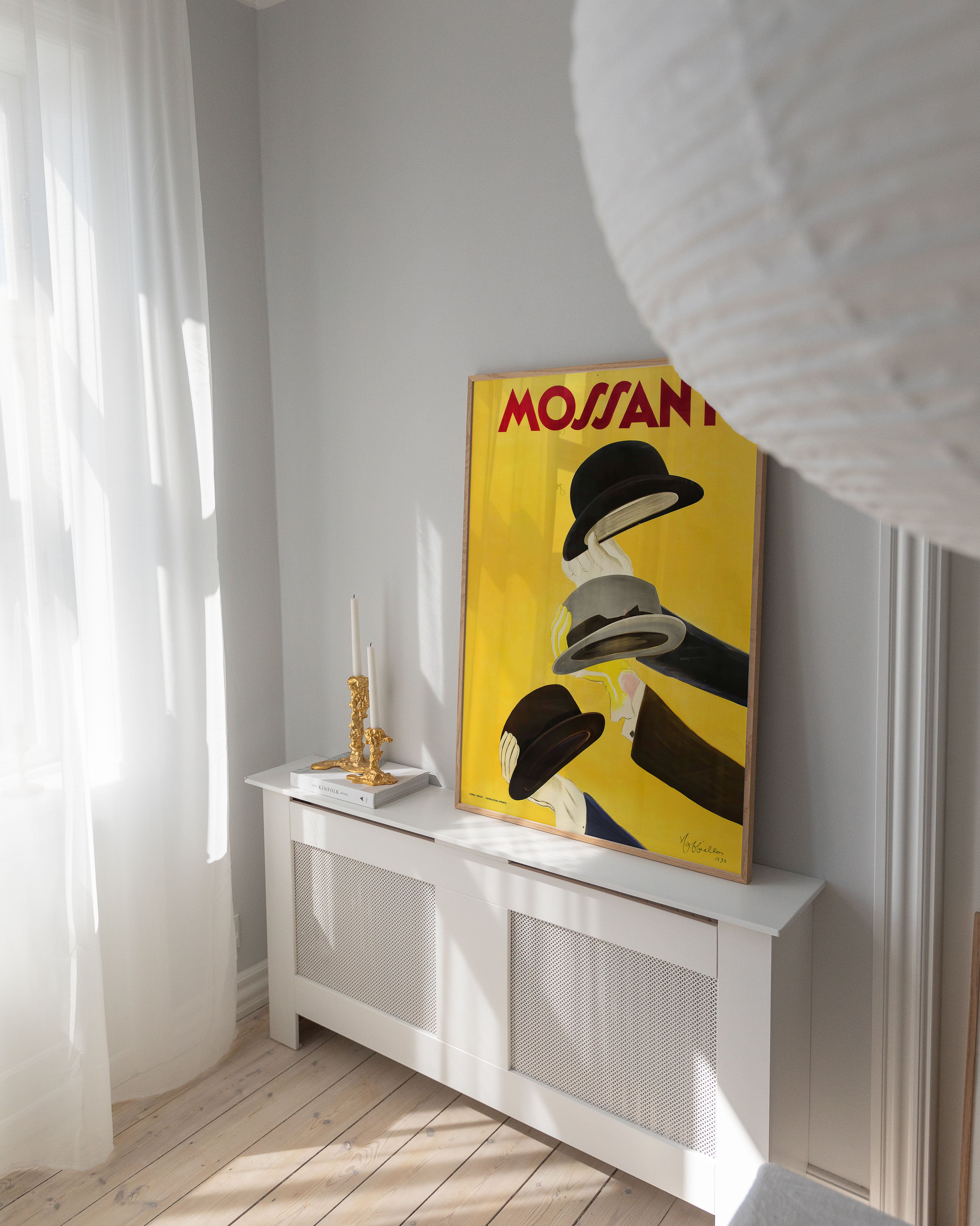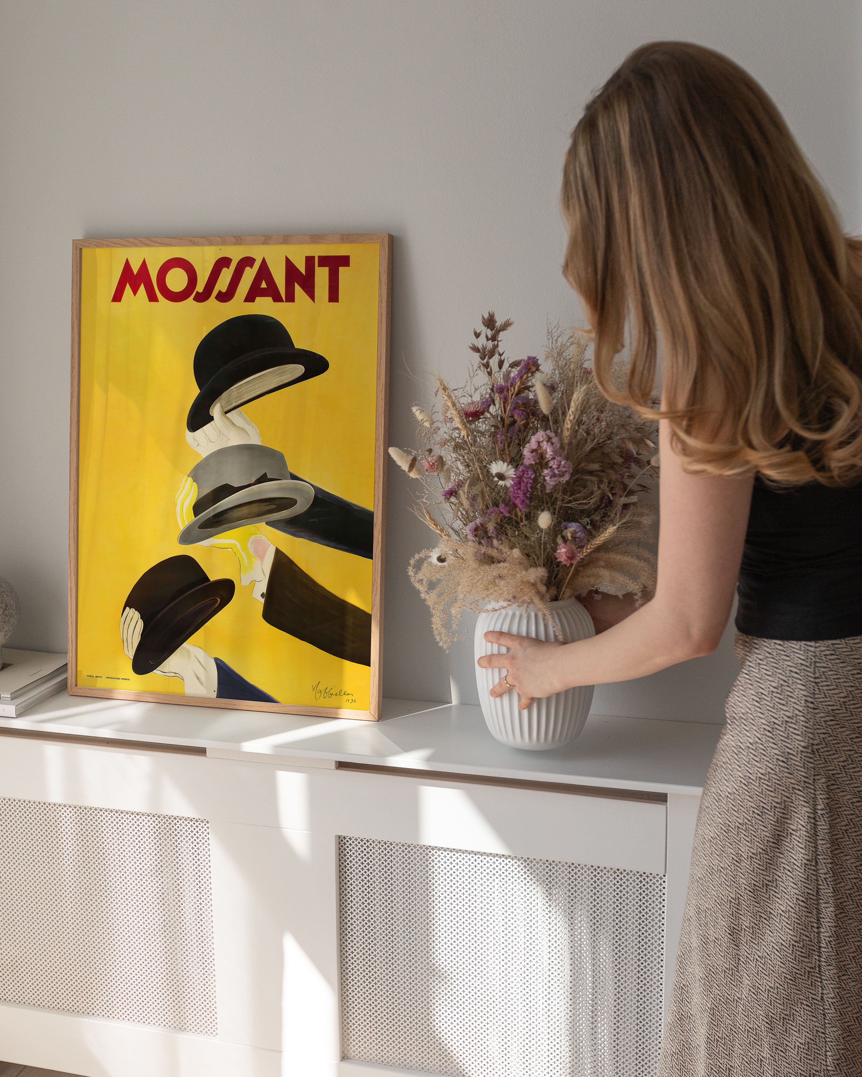 "Mossant" plakat: Oplev en farverig hyldest til klassisk elegance med denne unikke plakat. De levende gule nuancer og stilfulde hatte skaber et iøjnefaldende kunstværk, der tilføjer karakter til ethvert rum. Perfekt til dem, der elsker vintage design og tidløs stil.