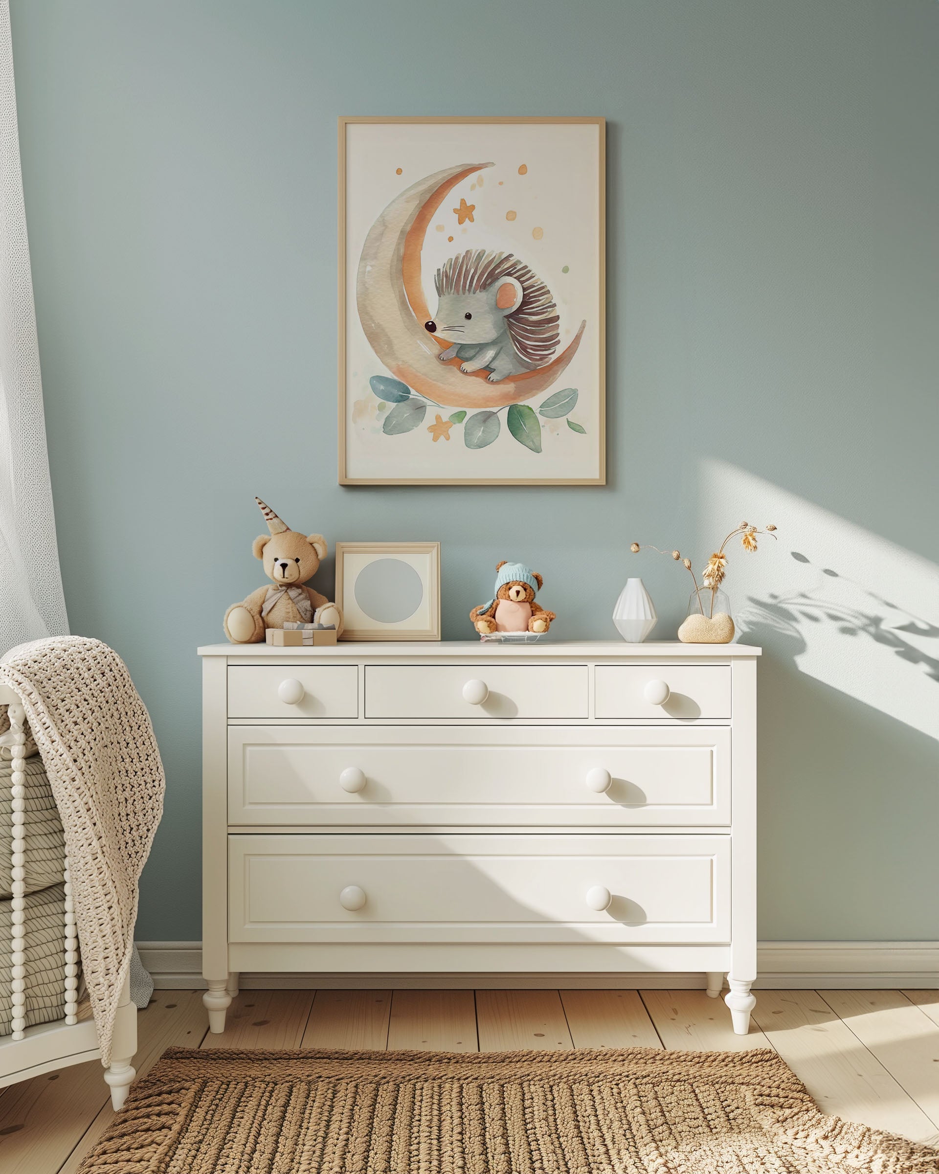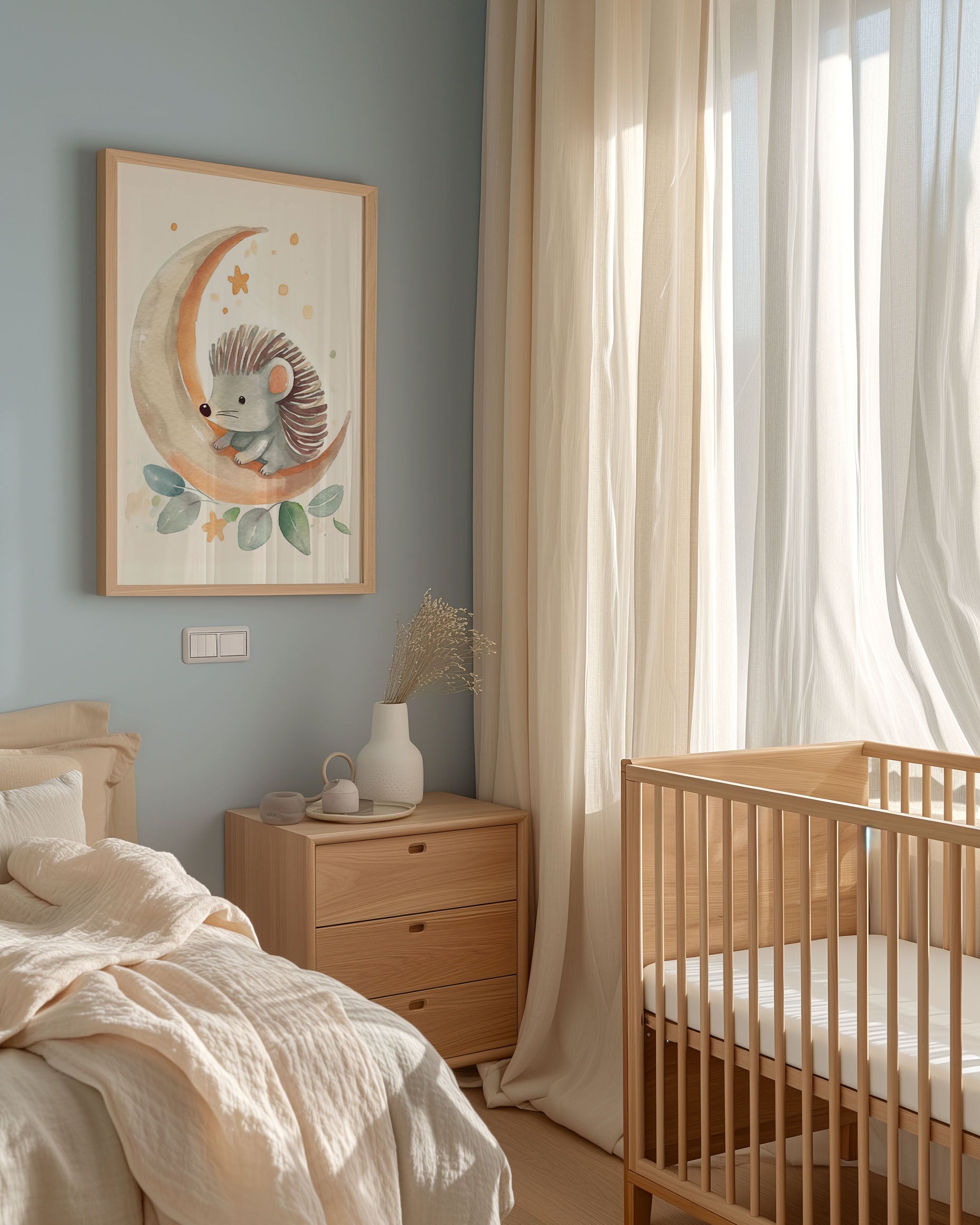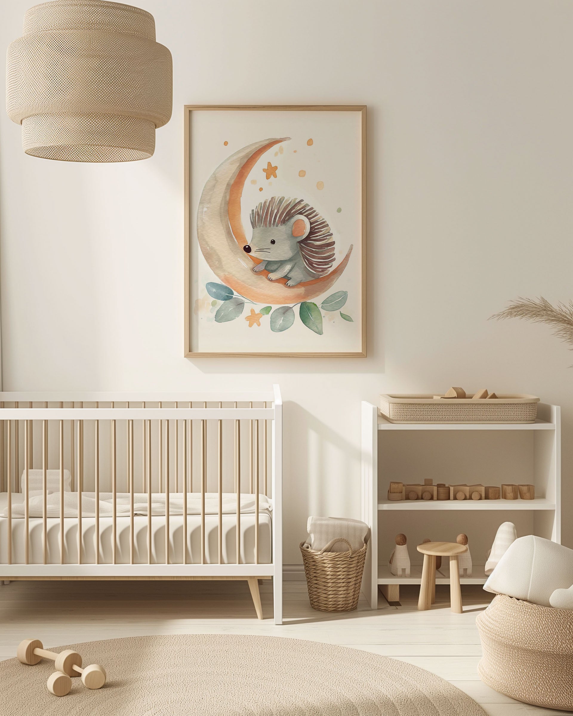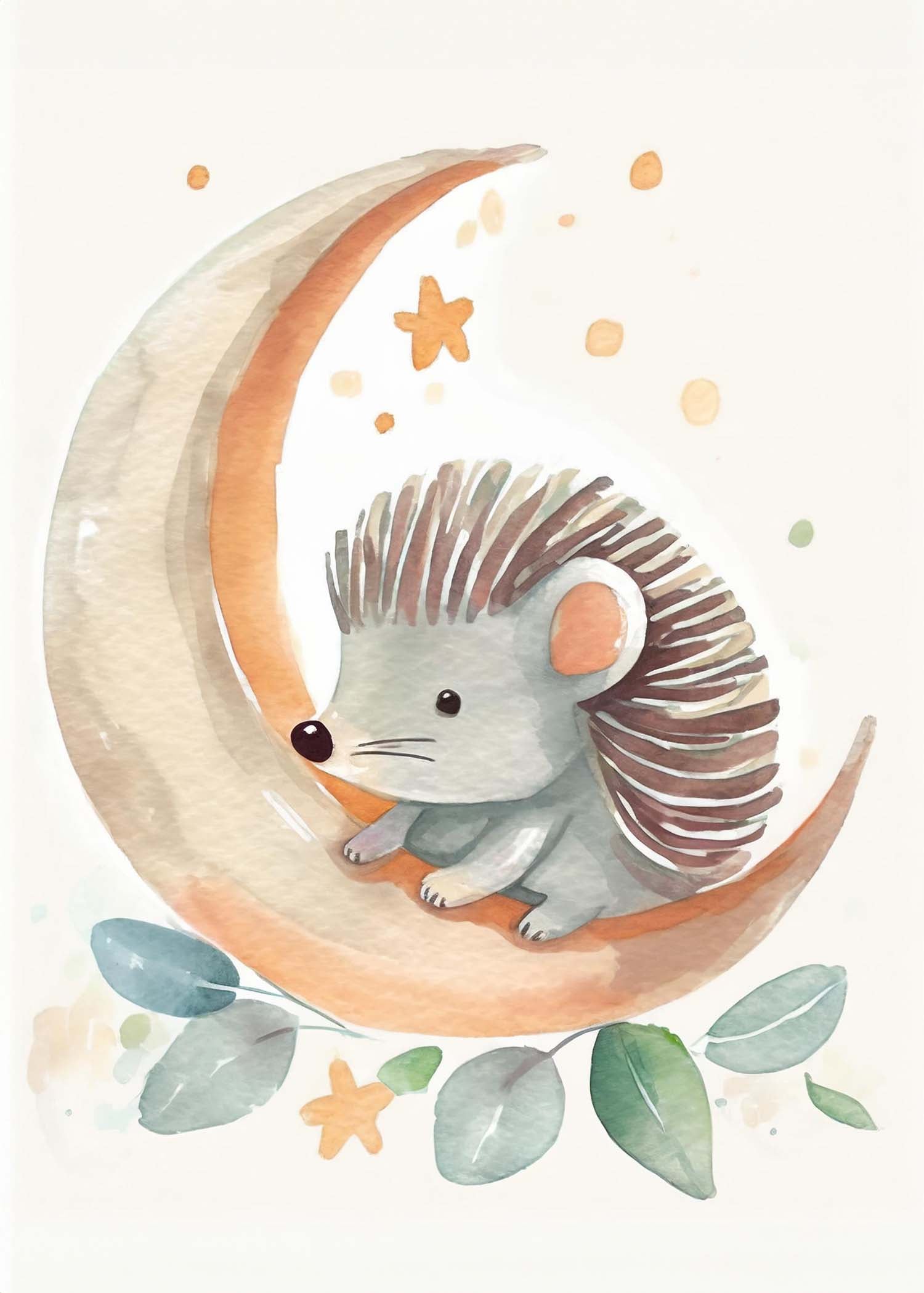 Opdag "Nattens lille pindsvin" - en charmerende plakat, der bringer varme farver og drømmende nattescener til dit rum. Perfekt til børneværelset, med en sød illustration, der fanger hjertet og inspirerer til eventyr under stjernerne.