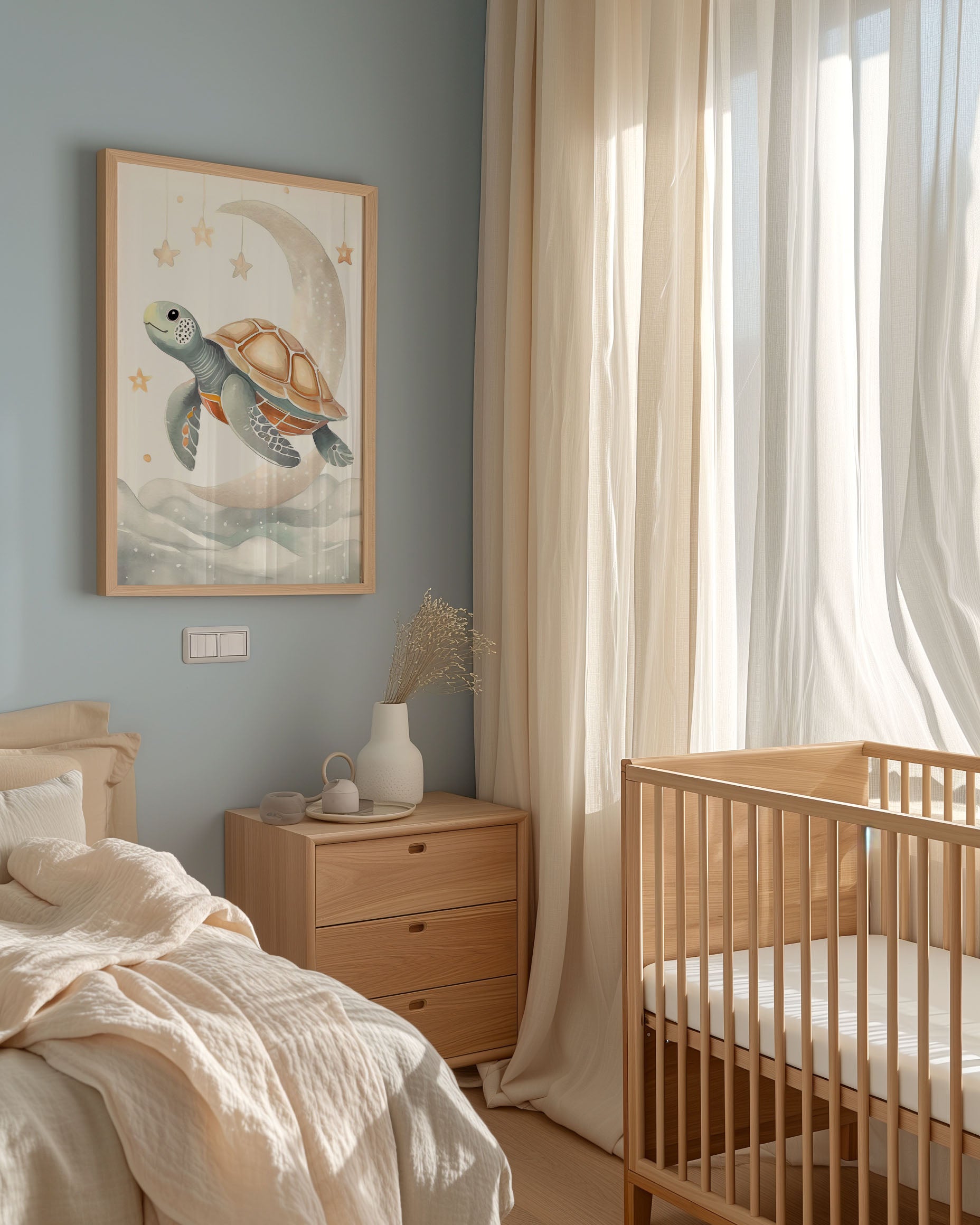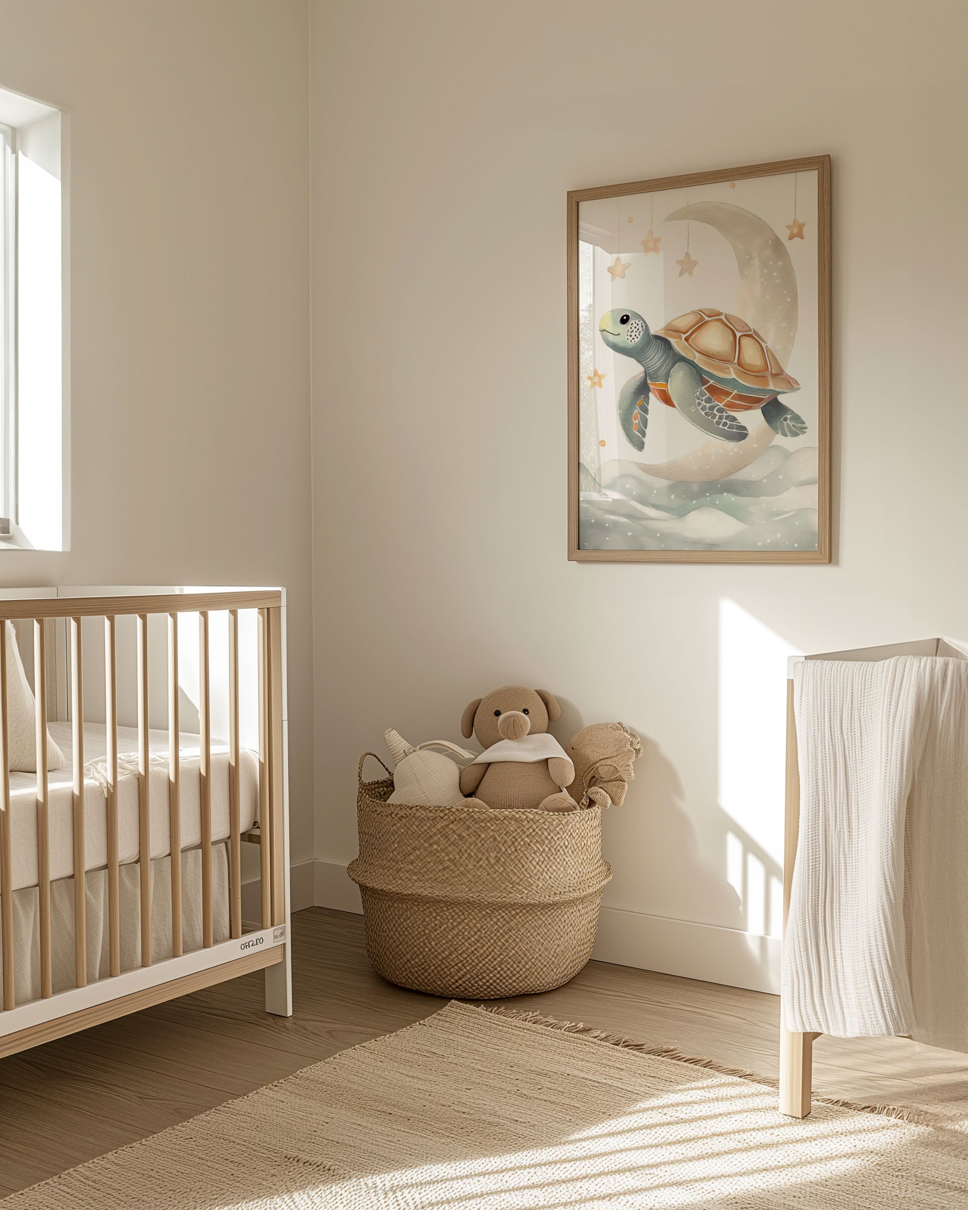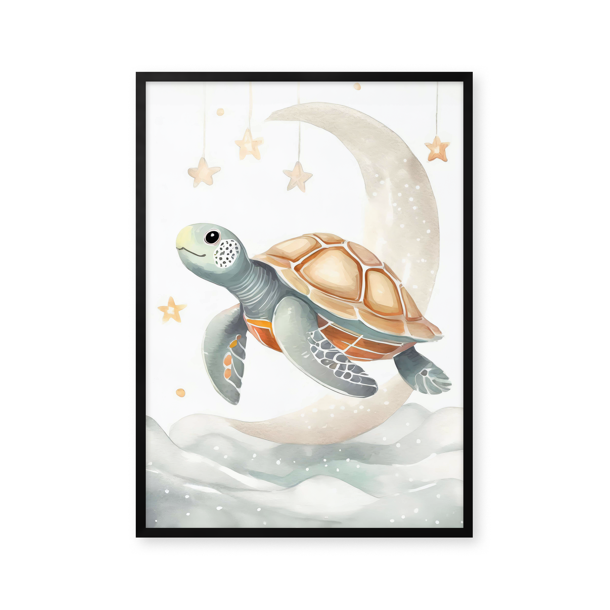 Oplev "Nattens Skildpadderejse" - en drømmende plakat, der fanger hjertet. Bløde pastelfarver og stjernedrys skaber en beroligende atmosfære, perfekt til at forvandle ethvert rum. Denne kunstneriske fortolkning af en skildpadde på eventyr er et must-have for naturelskere og drømmere.