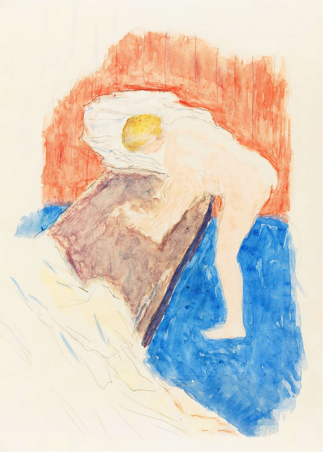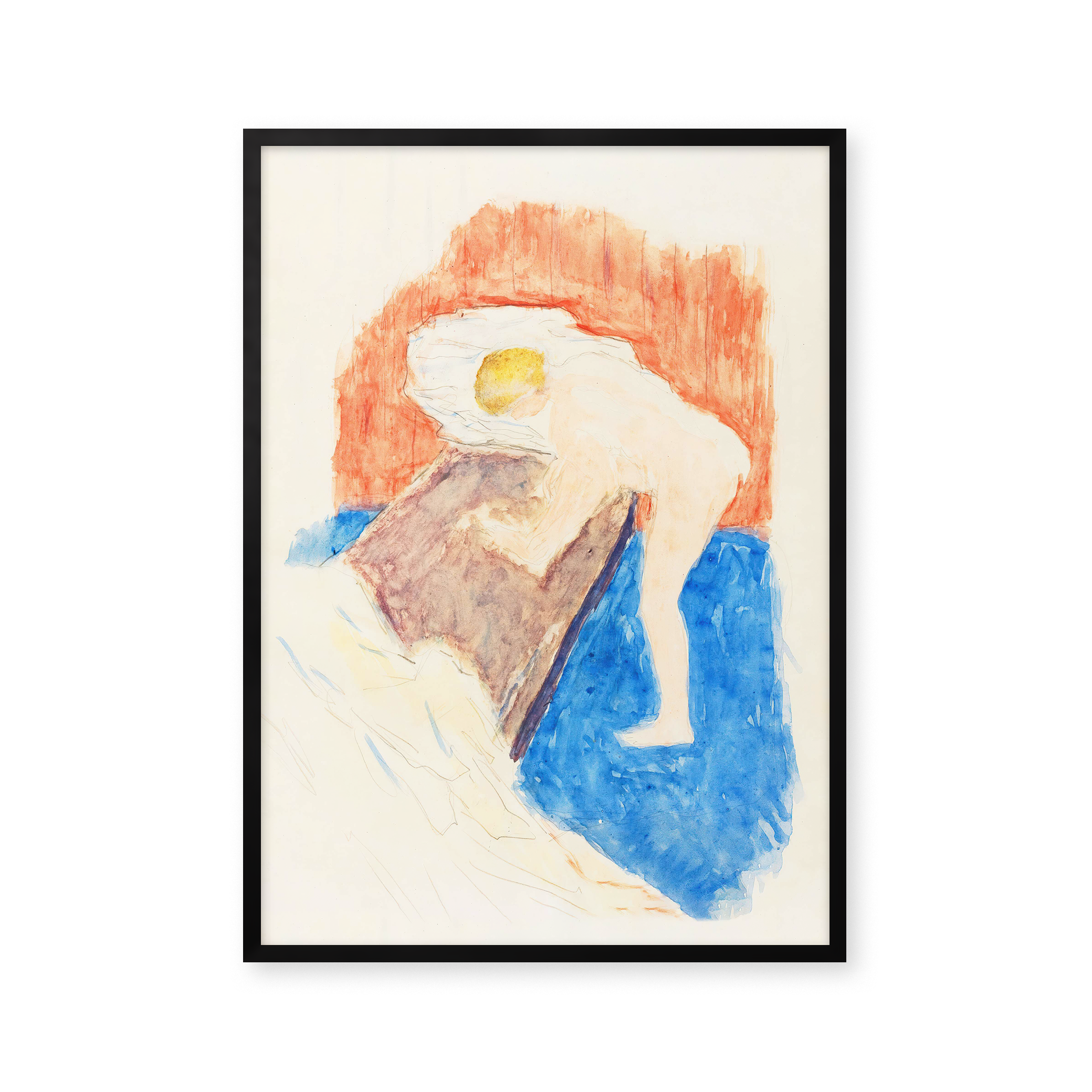 "Nu À La Baignoire" - En betagende plakat med levende farver og unikke penselstrøg. Denne kunstneriske skildring af en badende figur i varme røde og kølige blå nuancer bringer elegance og ro til ethvert rum. Perfekt til kunstelskere og moderne indretning.