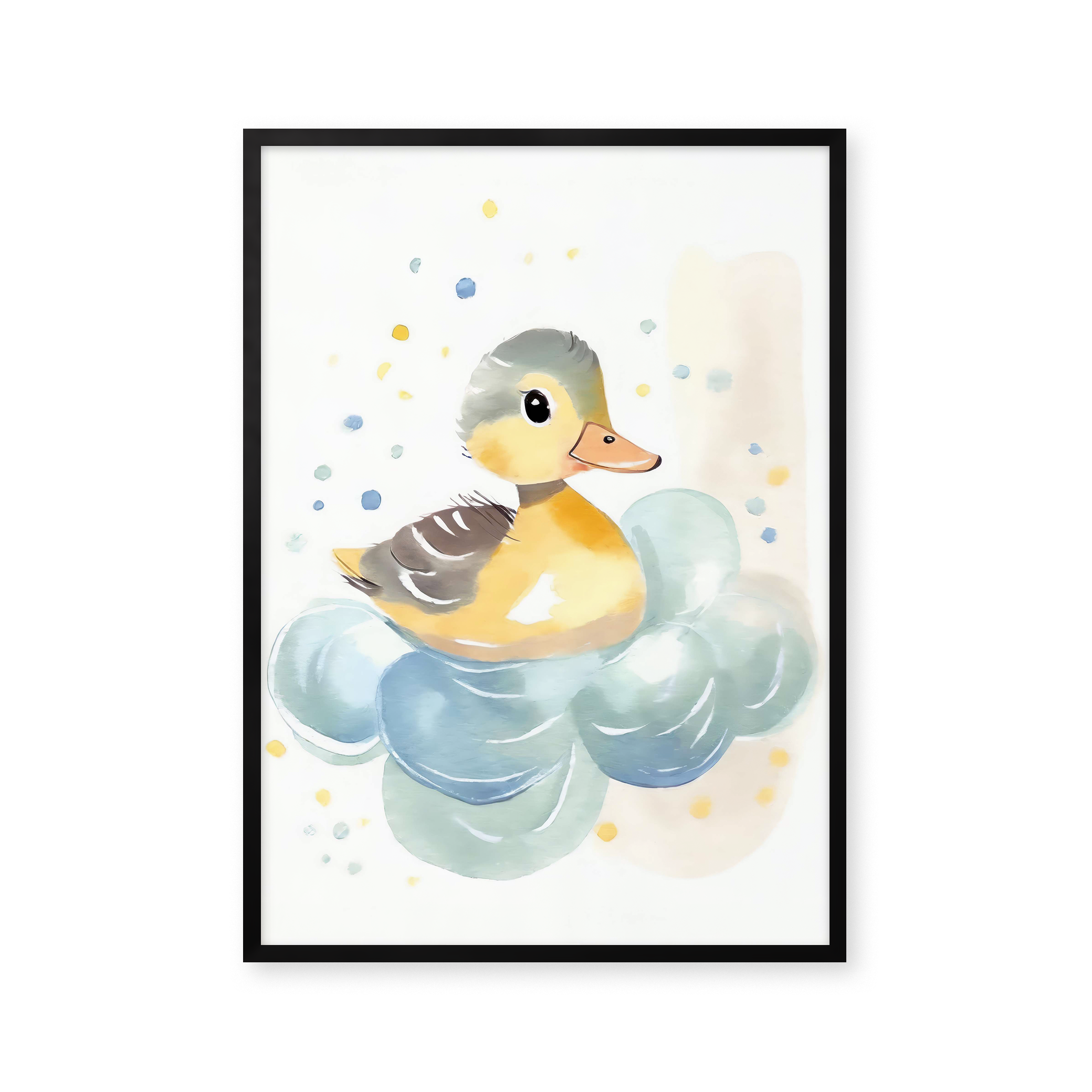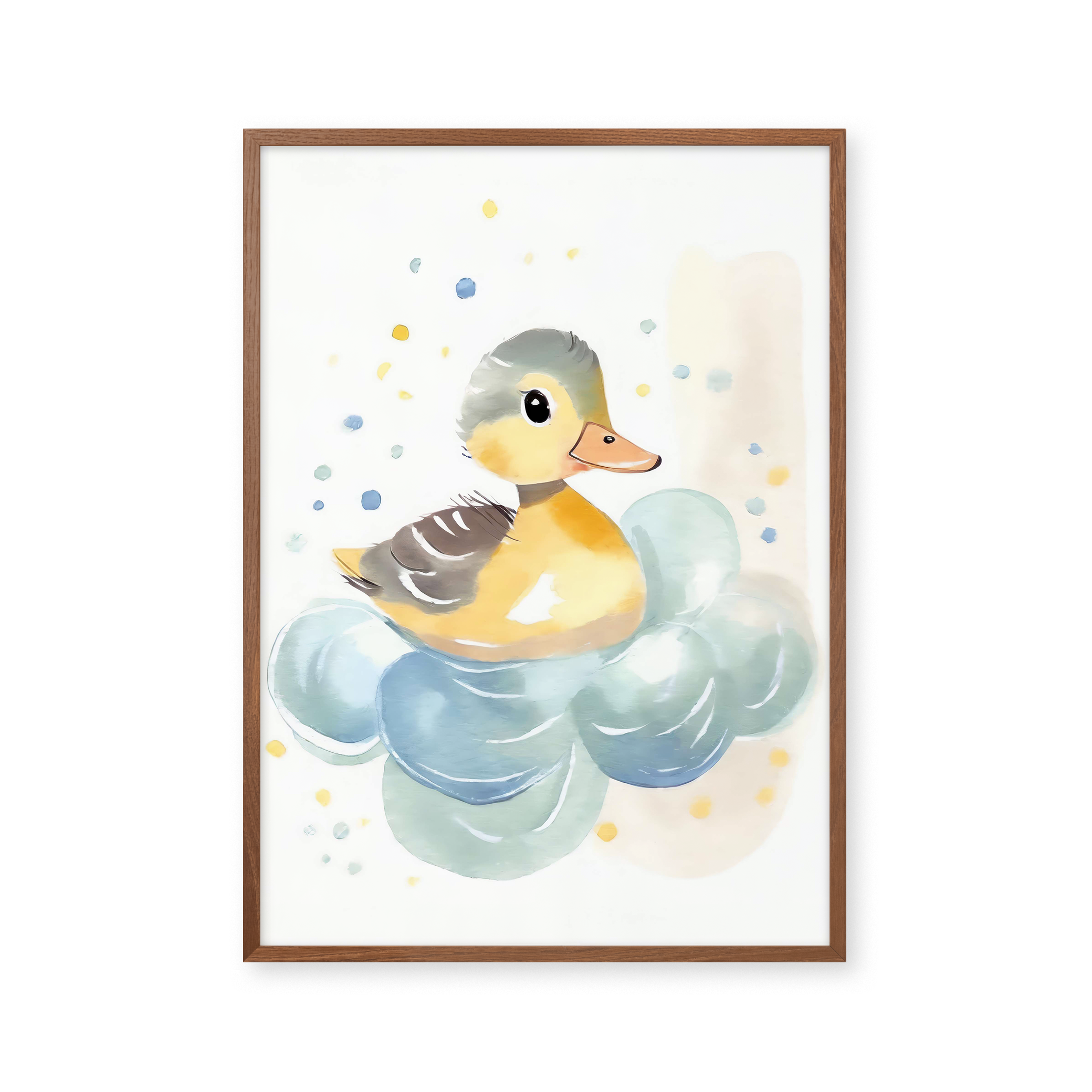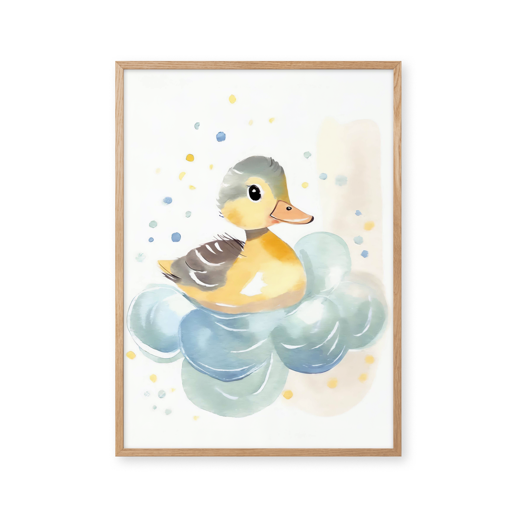 Opdag "På eventyr og ikke andet" – en charmerende plakat, der fanger fantasien med sin livlige andunge, omfavnet af bløde blå bølger og legende konfetti. Perfekt til børneværelset, denne kunsttryk vækker glæde med sine varme nuancer og indbydende design.