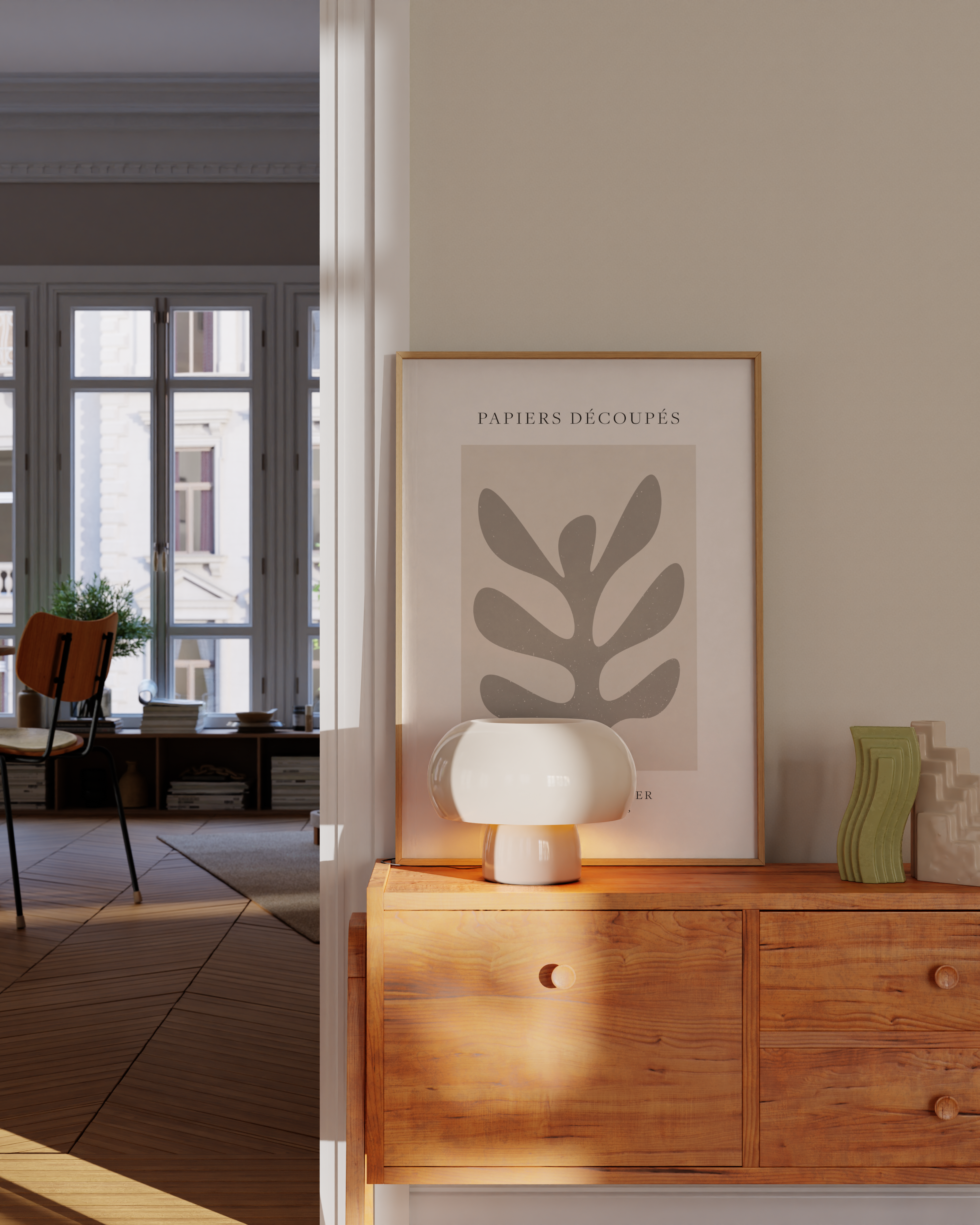 Opdag "Papiers Découpés" – en minimalistisk plakat, der fanger essensen af moderne kunst. Med sin bløde farvepalet og det abstrakte, organiske design, tilfører denne vægkunst en følelse af ro og elegance til ethvert rum. Perfekt til den stilbevidste indretter.