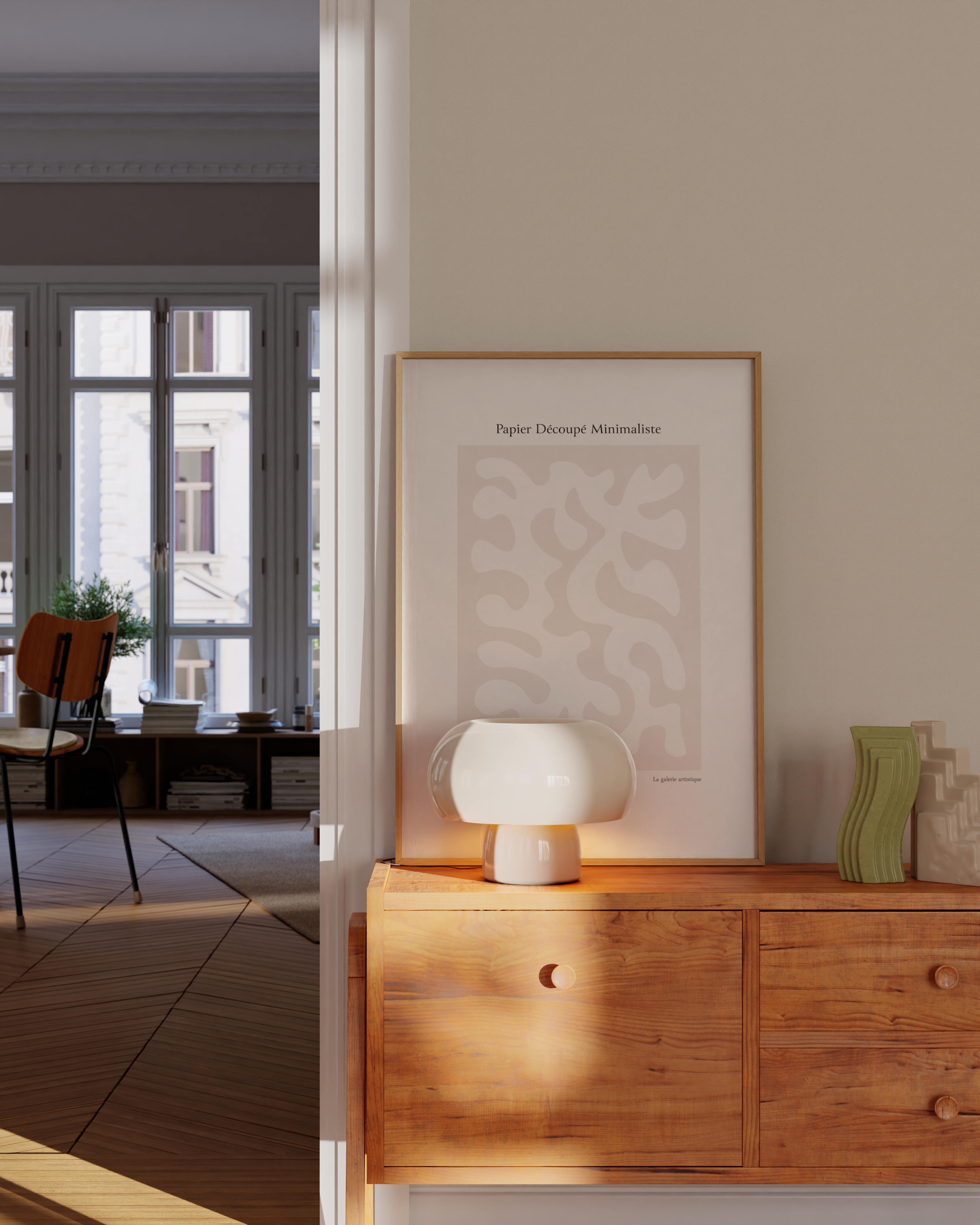 Opdag "Papier Découpé Minimaliste" - en plakat, der fanger essensen af minimalistisk elegance. Med sine rene linjer og beroligende elfenbenshvid og grå palet, tilføjer denne kunstneriske fortolkning af Paris' finesse et strejf af raffinement til ethvert rum. Perfekt til den moderne indretning.
