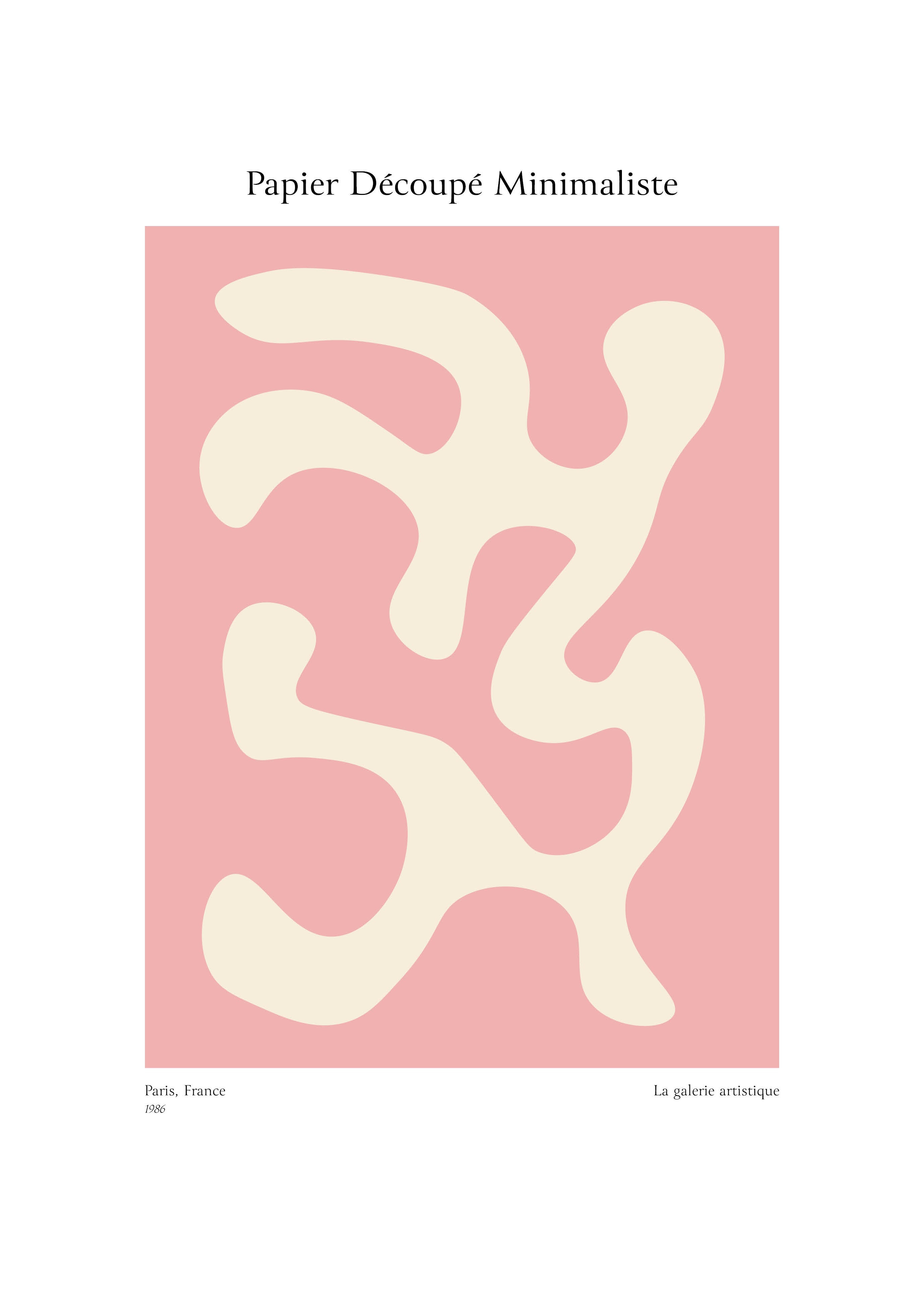 Opdag "Papier Découpé Minimaliste" plakaten, en hyldest til moderne kunst. Denne vægkunst fanger øjet med sin bløde rosa baggrund og hvid abstrakt form, perfekt til at tilføre et strejf af elegance og stil til ethvert rum. Ideel til kunstelskere og trendsettere.