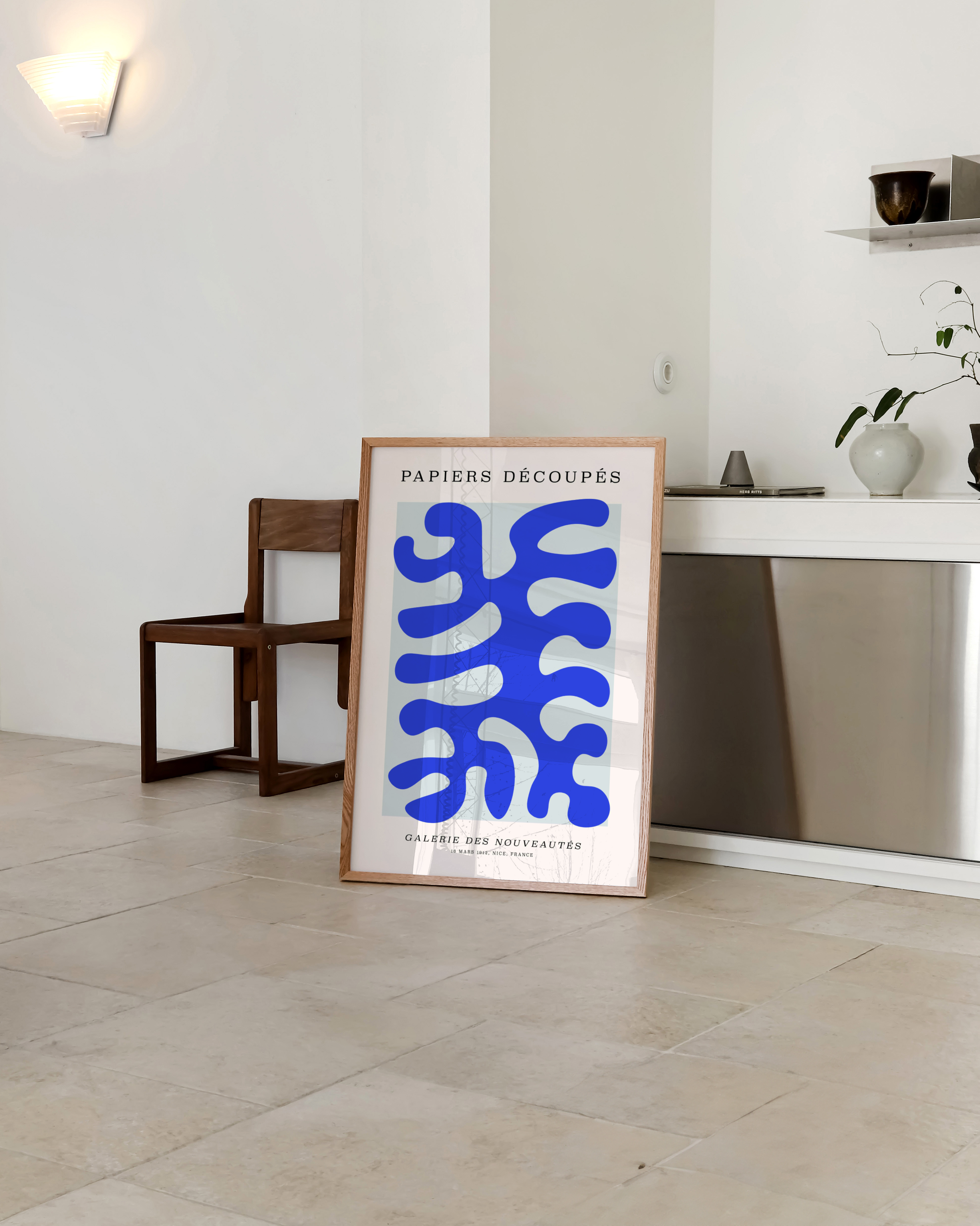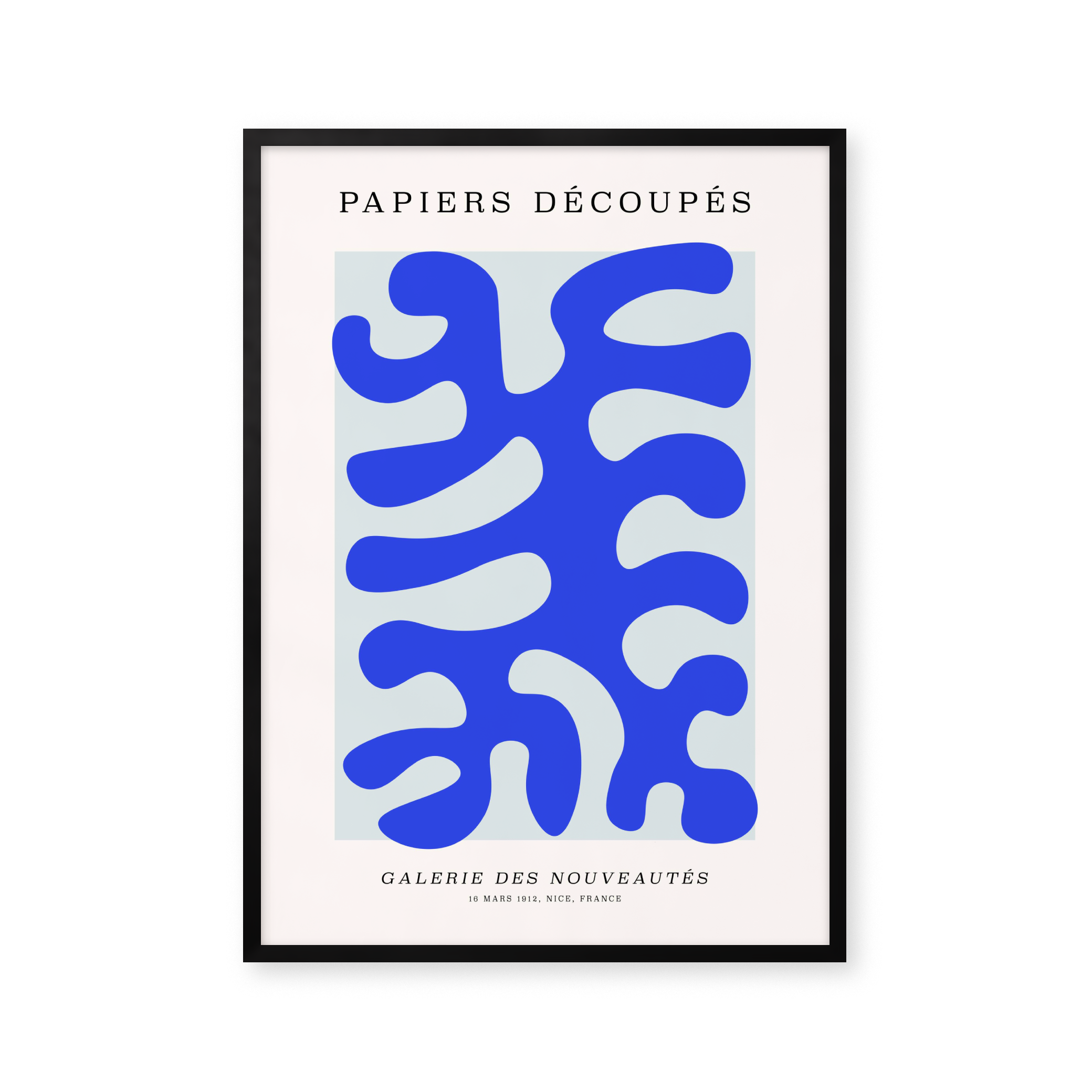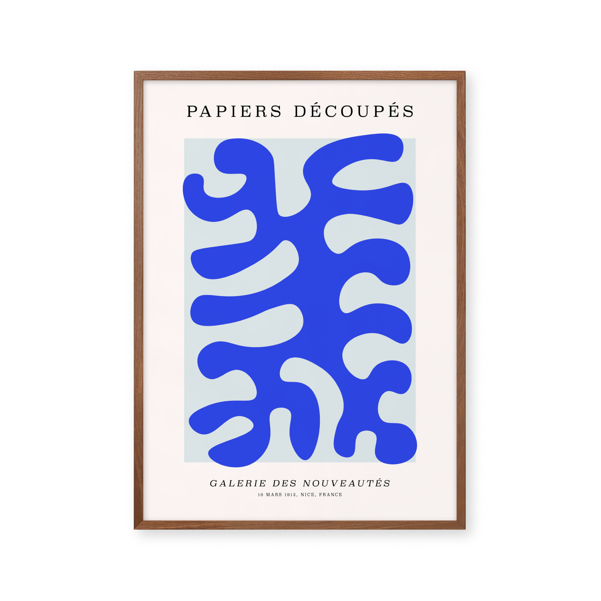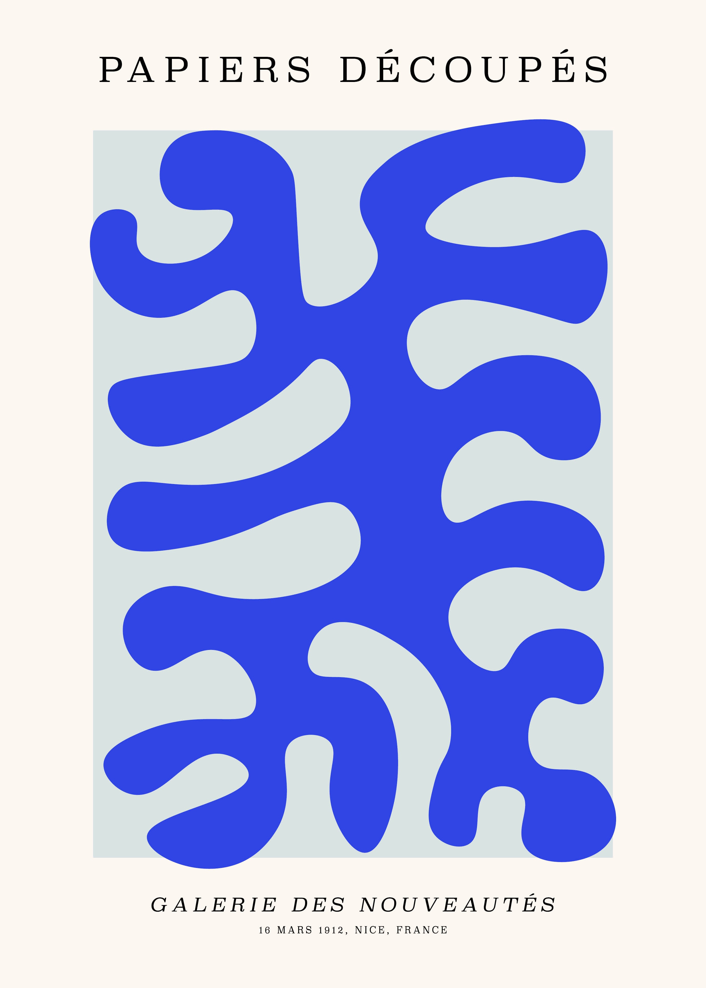 Opdag "Papiers Découpés" plakaten, en hyldest til moderne kunst. Denne iøjnefaldende vægkunst præsenterer levende blå nuancer og abstrakte former, perfekt til at tilføre et strejf af elegance og kreativitet til ethvert rum. Gør dit hjem til en kunstgalleri med denne unikke og stilfulde dekoration.