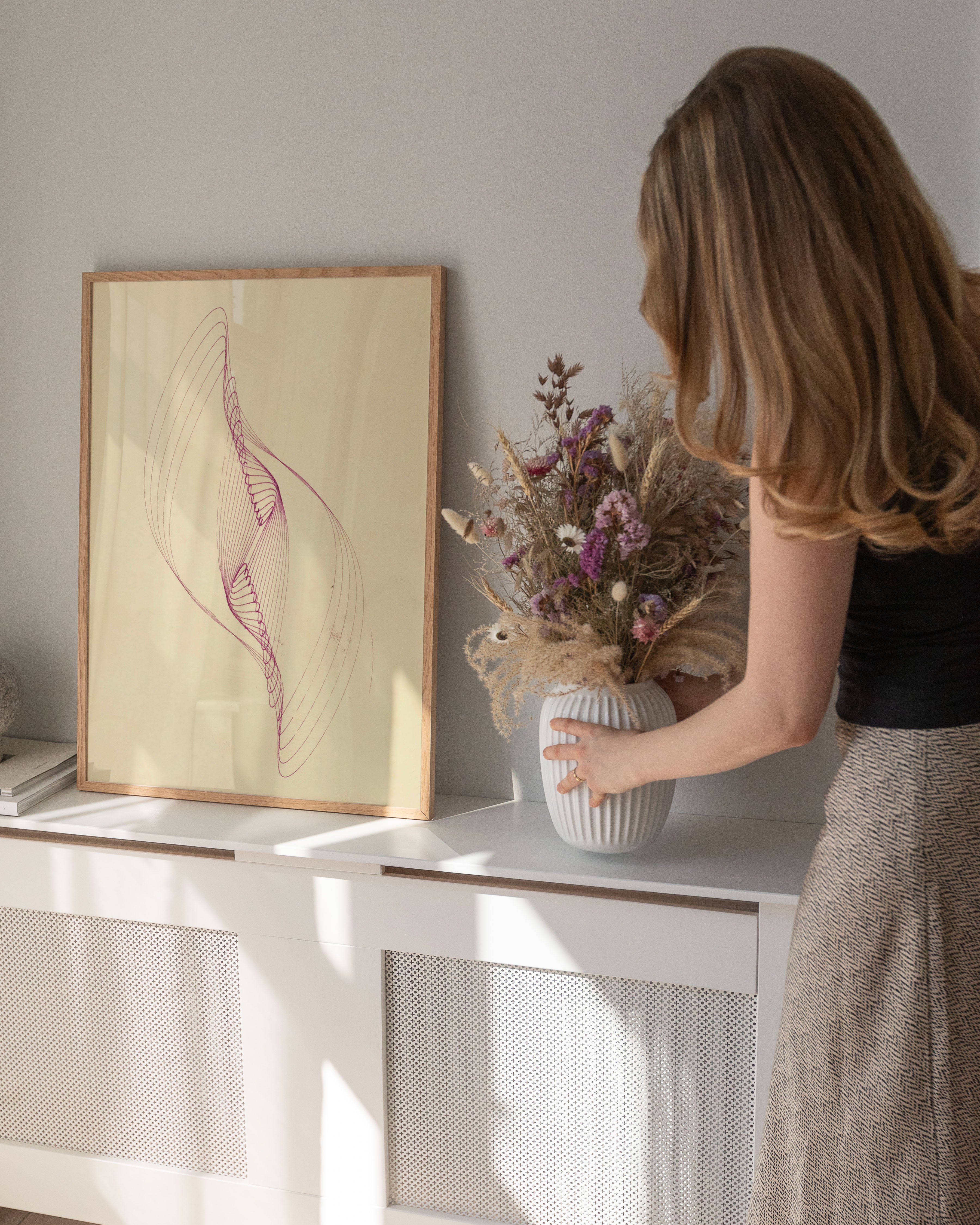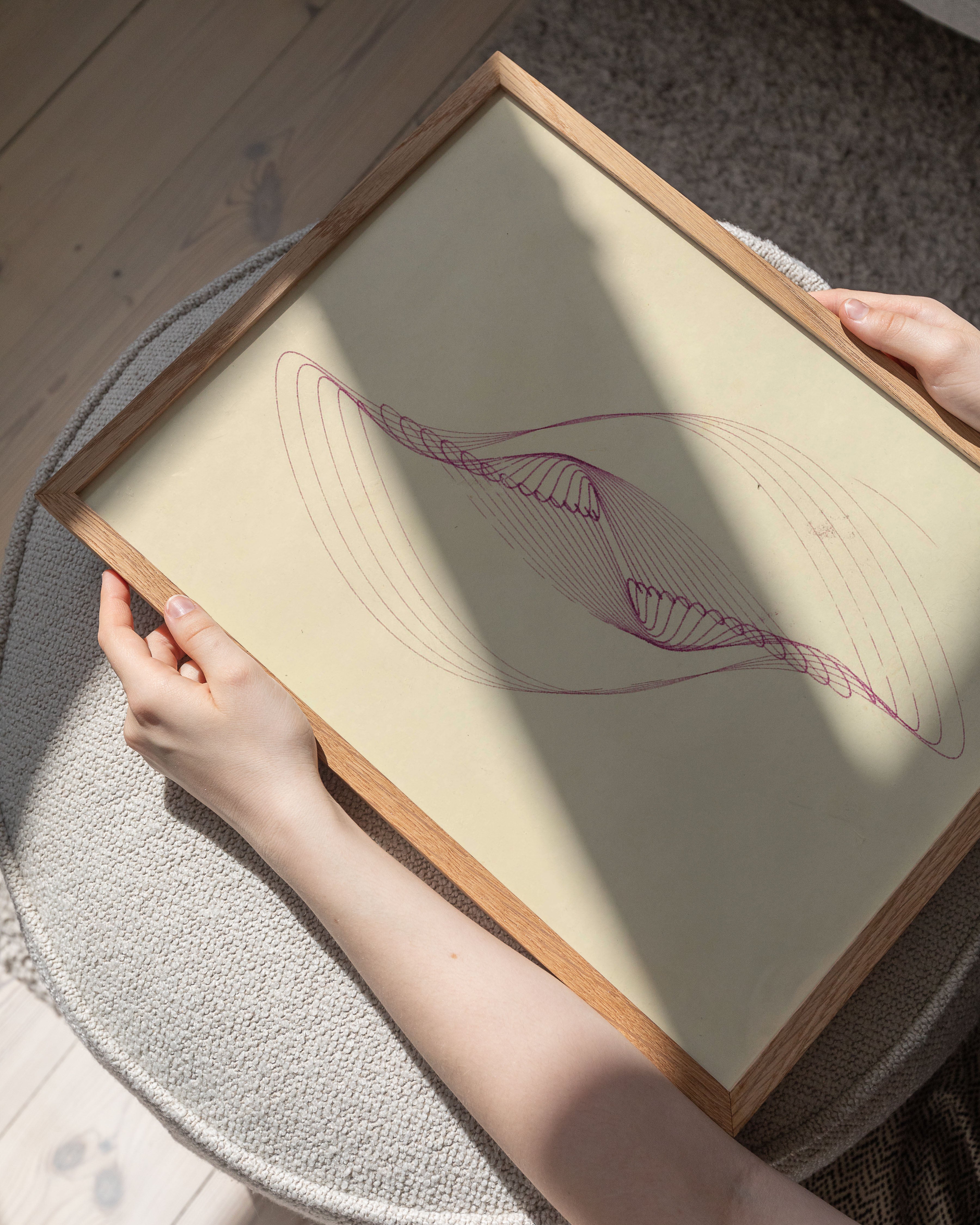 "Pendulum Curve" - Oplev en hypnotiserende plakat med elegante, kurvede linjer i dyb lilla. Denne unikke kunstværk bringer ro og skønhed til ethvert rum. Perfekt til moderne indretning, hvor farver og unikke elementer er i fokus. Tilføj et strejf af kunstnerisk flair til dit hjem.