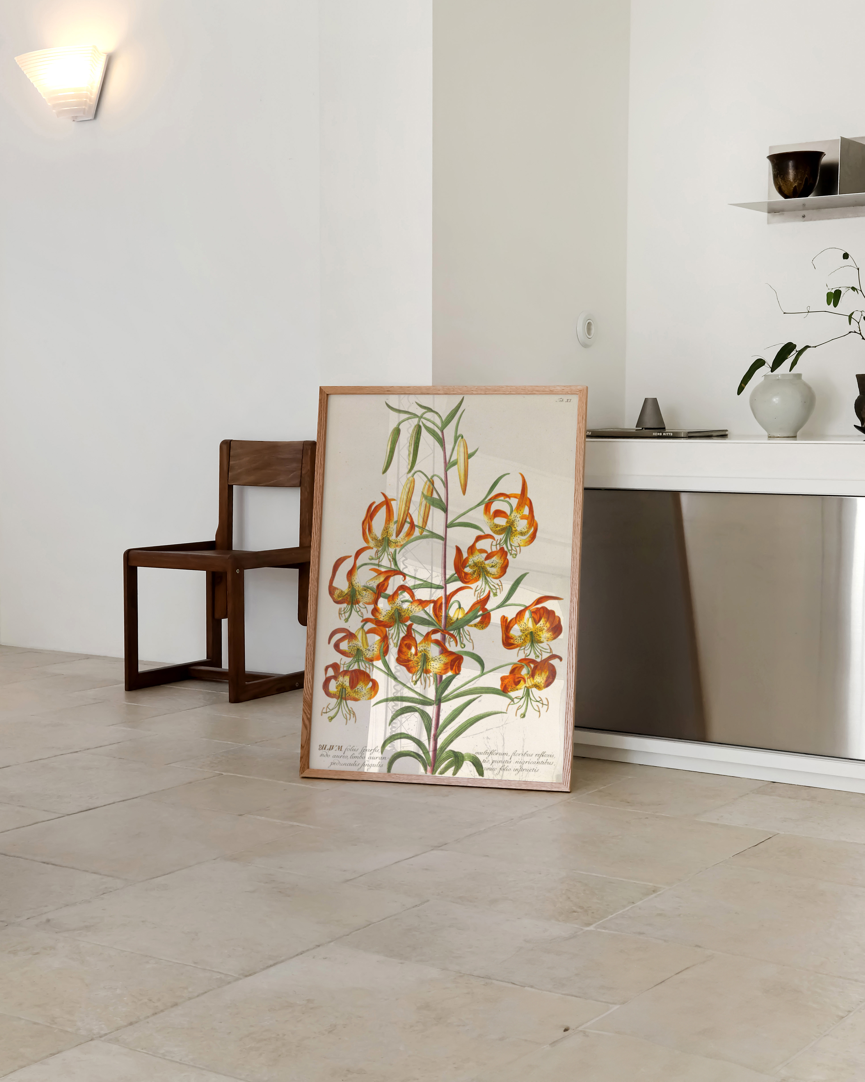 Opdag "Plantae Selectae" plakaten, hvor botanisk skønhed møder kunstnerisk præcision. Levende grønne nuancer og eksotiske orange blomster blomstrer på dit væg, indfanger naturens essens i dit hjem. Perfekt til plantelskere og kunstentusiaster, denne plakat tilføjer et strejf af elegance og natur til ethvert rum.
