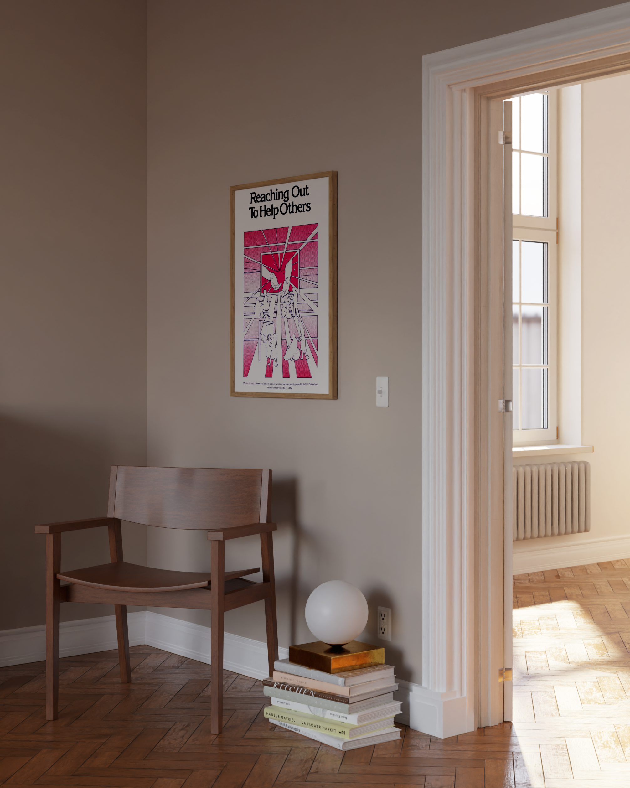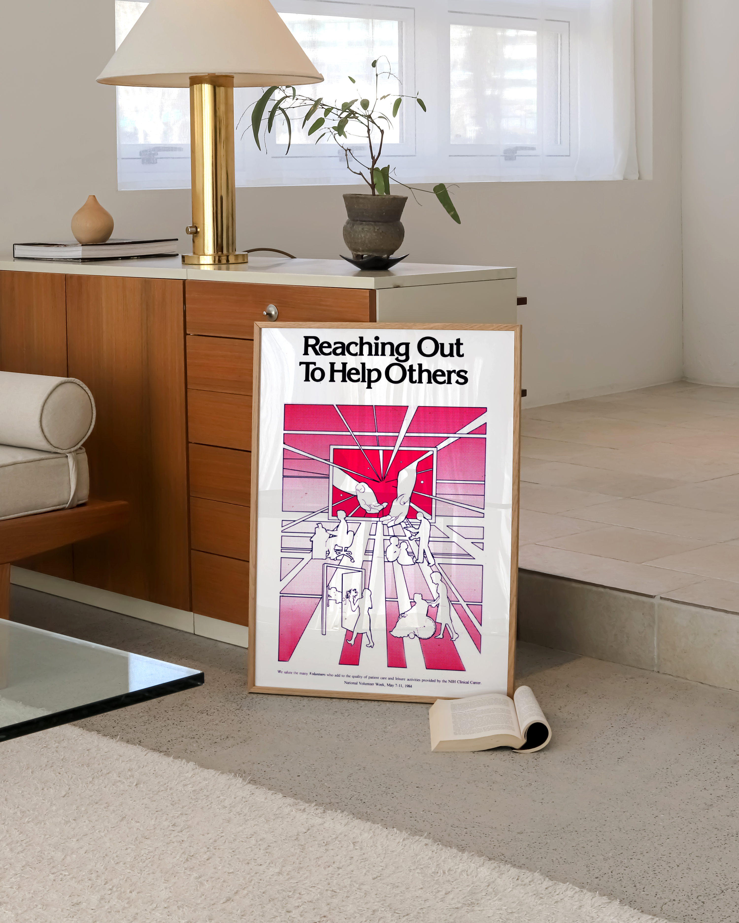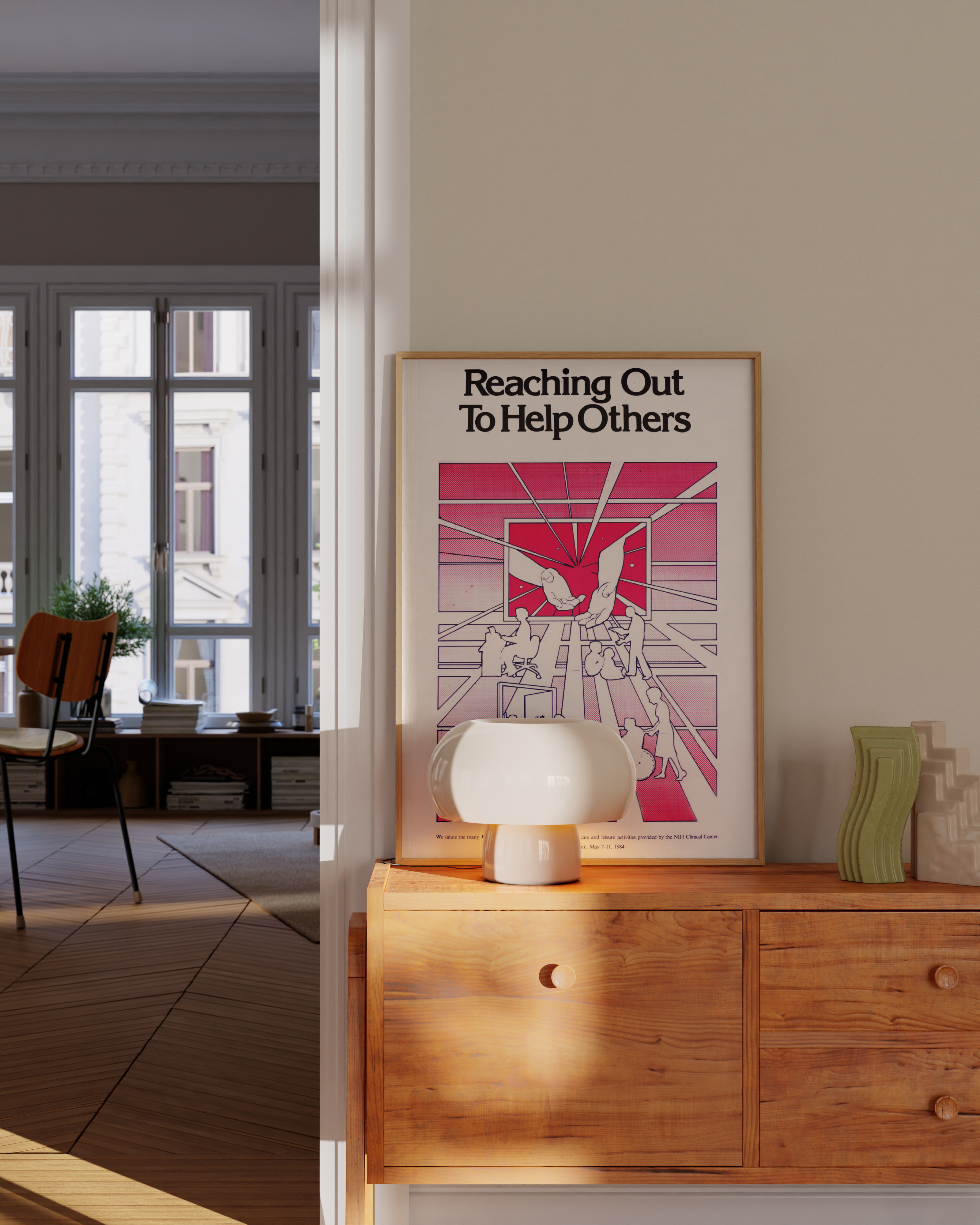 "Reaching out to Help Others" plakaten kombinerer iøjnefaldende røde og hvide nuancer med inspirerende illustrationer. Perfekt til at tilføje et strejf af altruisme og kunstnerisk flair til ethvert rum. Denne plakat fanger essensen af samhørighed og menneskelig godhed. Ideal til kontorer og hjem med et budskab om håb.