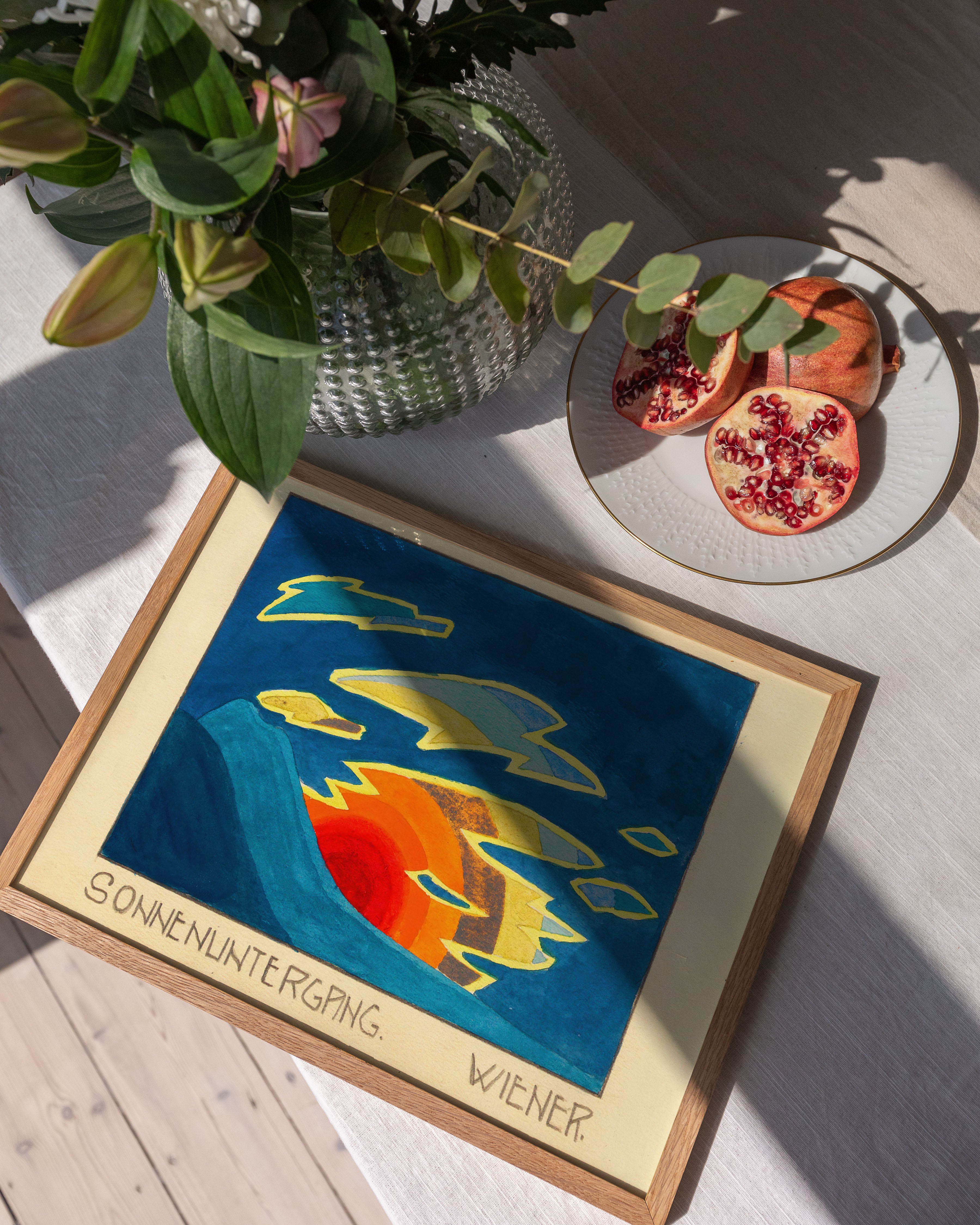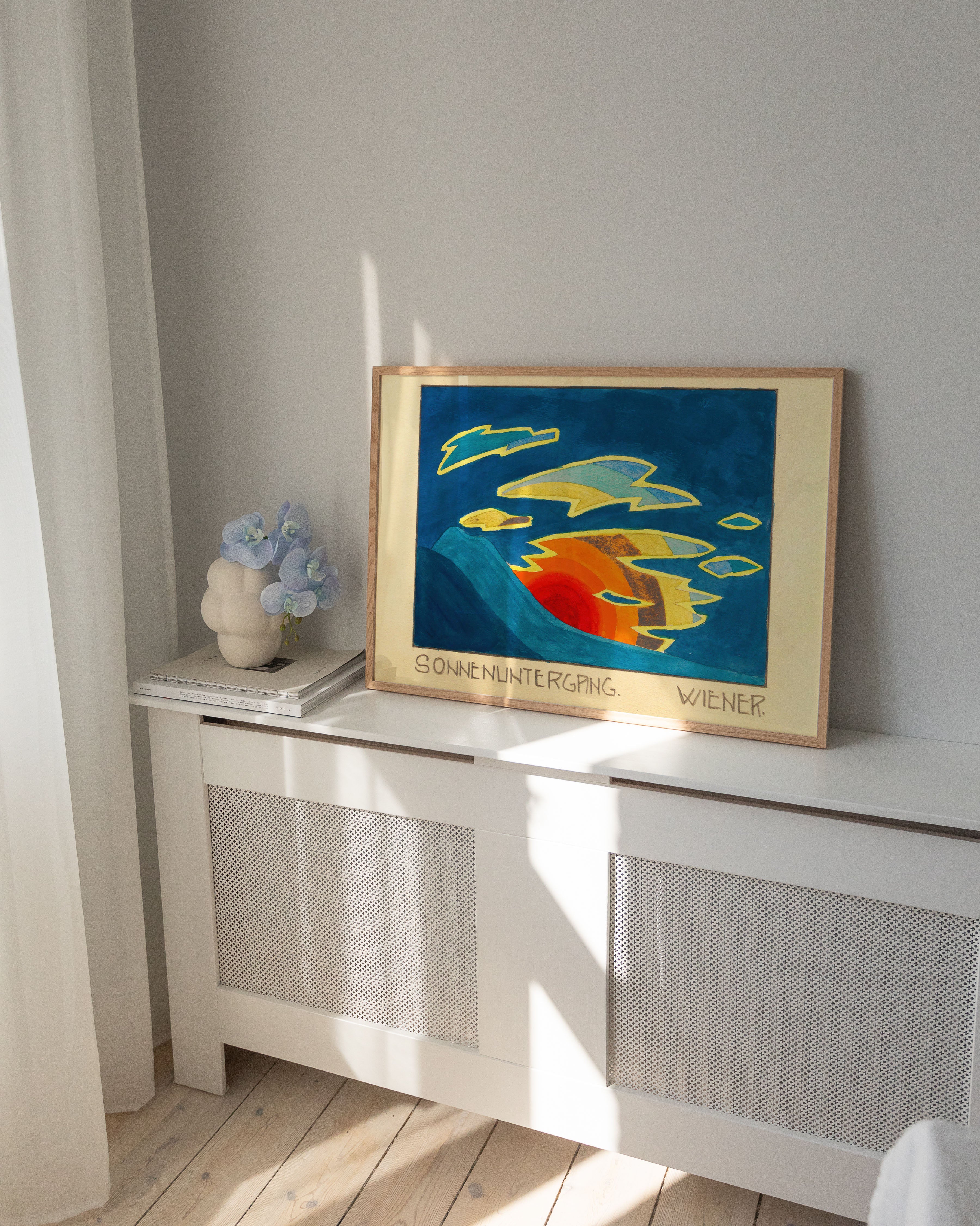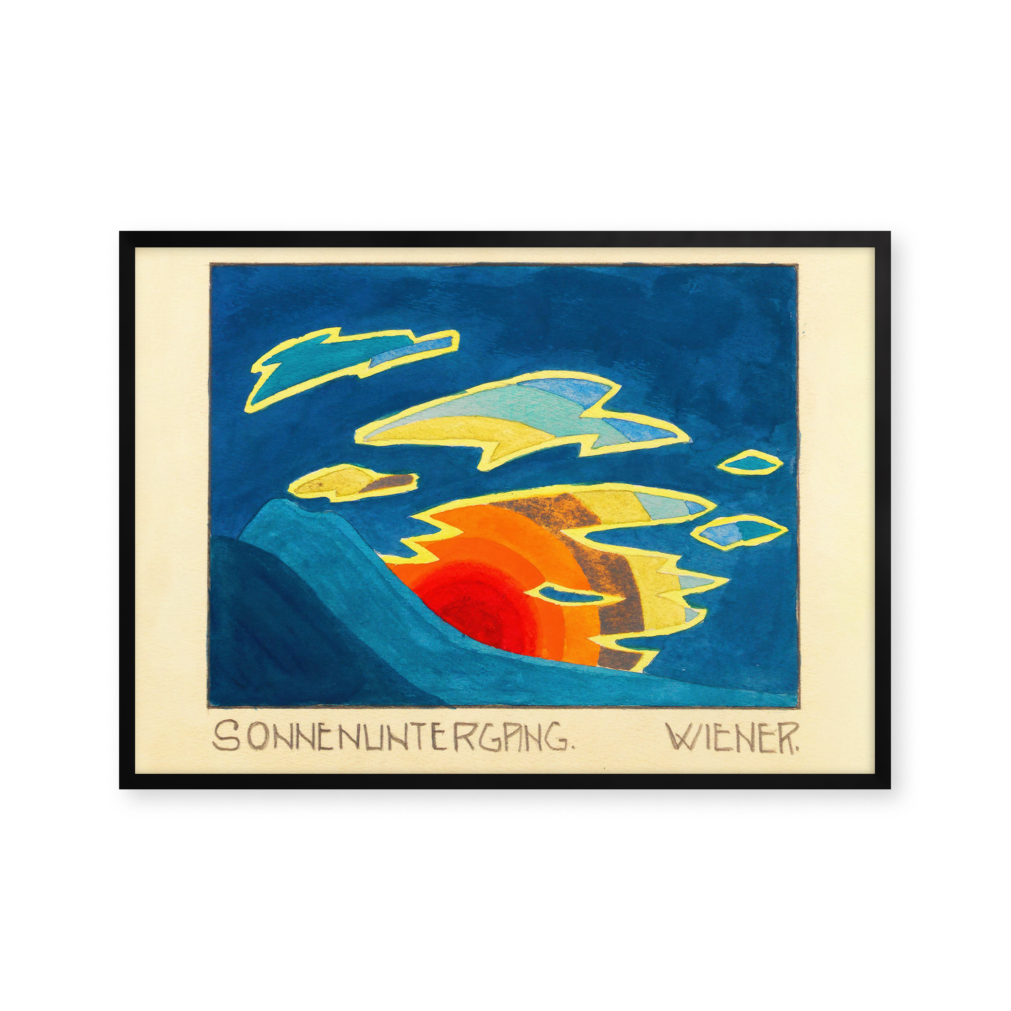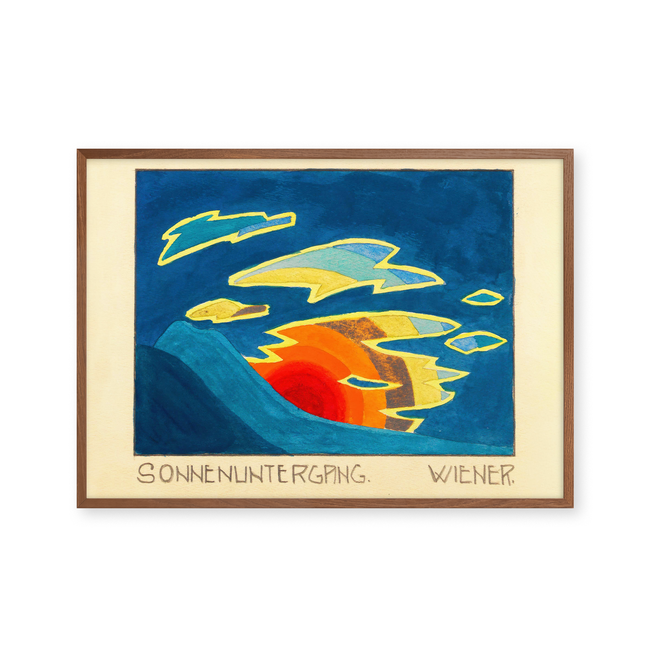 "Sonnenuntergang" plakat: Oplev en betagende solnedgang med levende farver og unikke former. Denne kunstplakat fanger naturens skønhed med intense blå, orange og gule nuancer. Perfekt til at tilføje et strejf af farve og kunstnerisk flair til ethvert rum.
