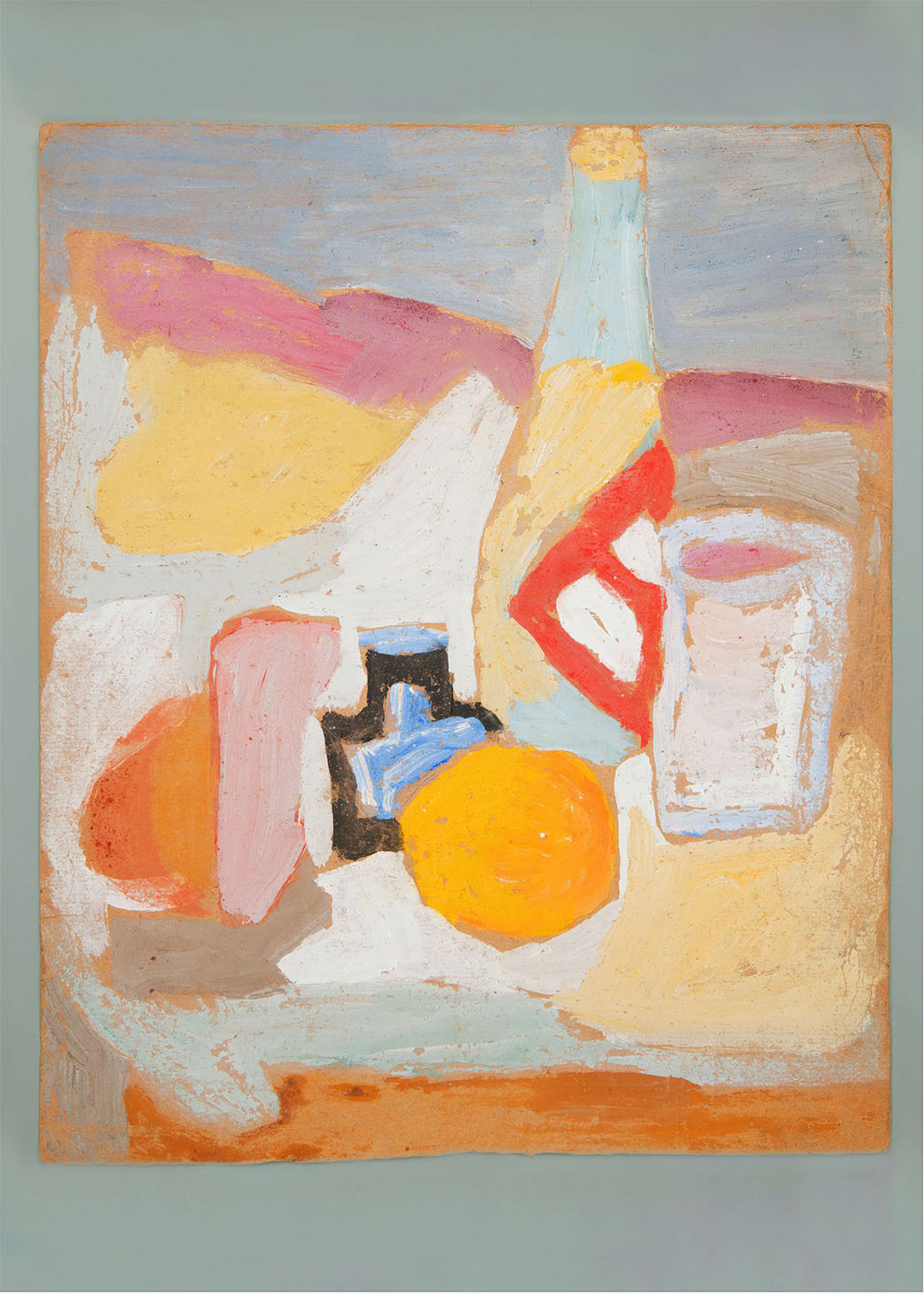 Still life with orange, bottle and inkwell