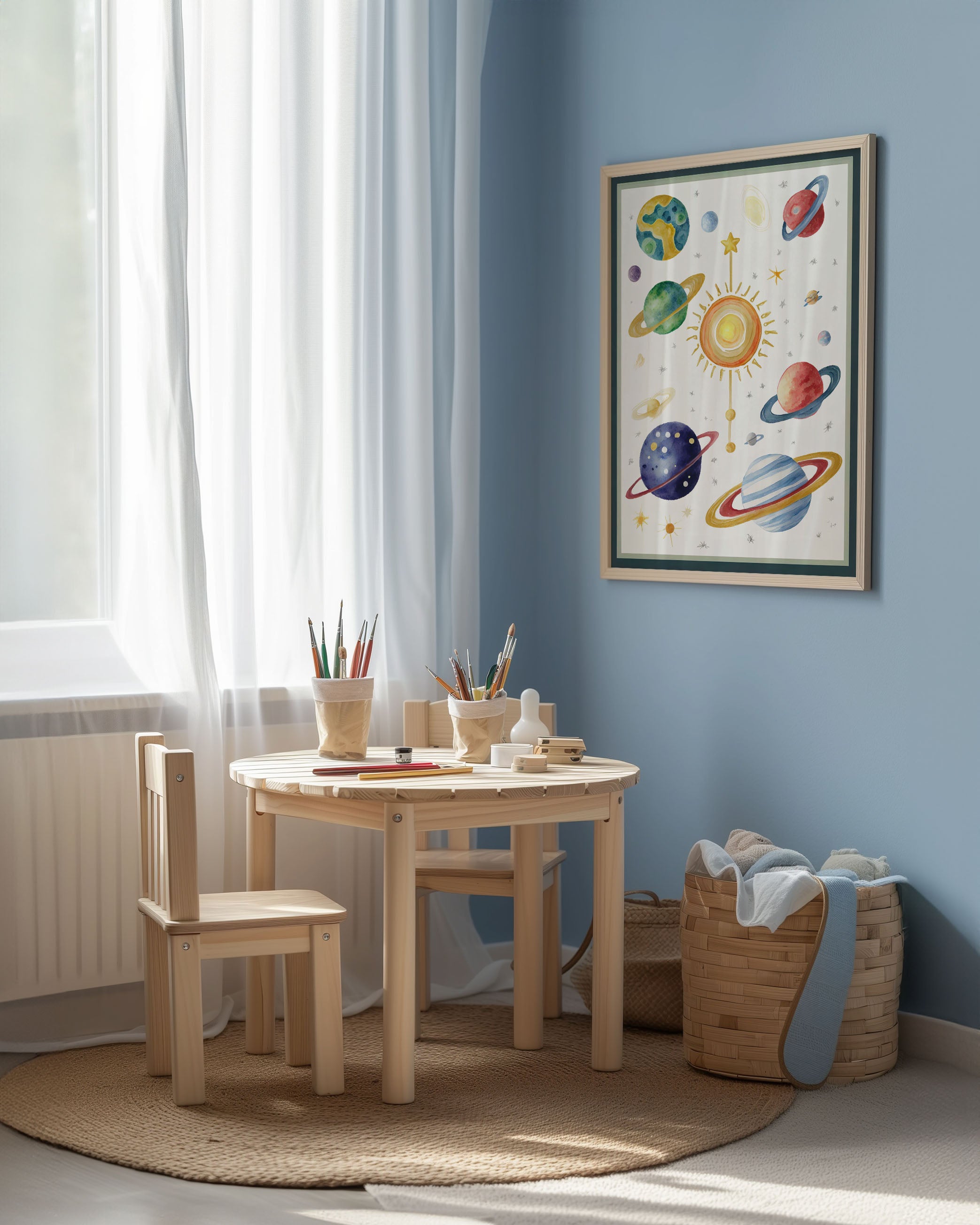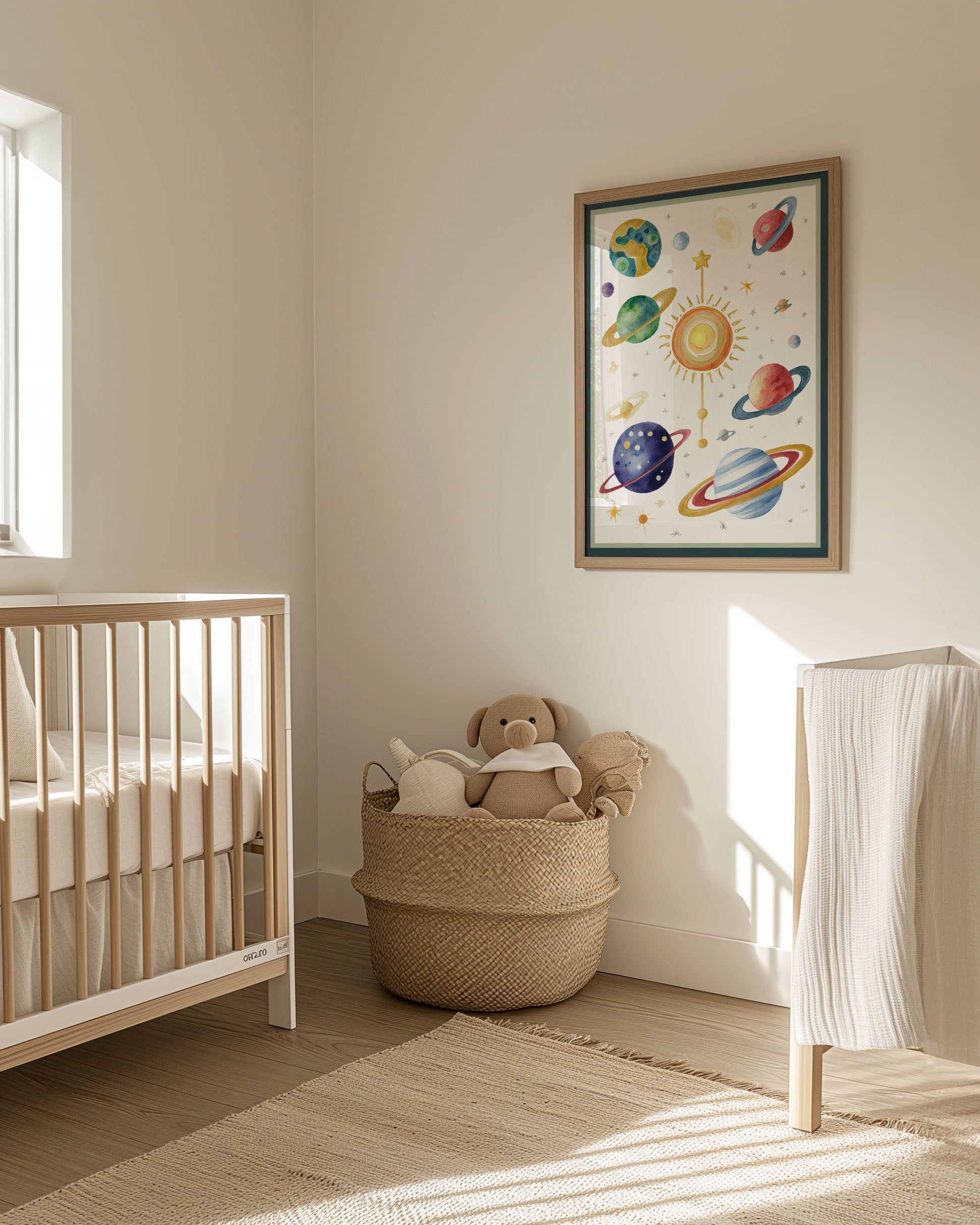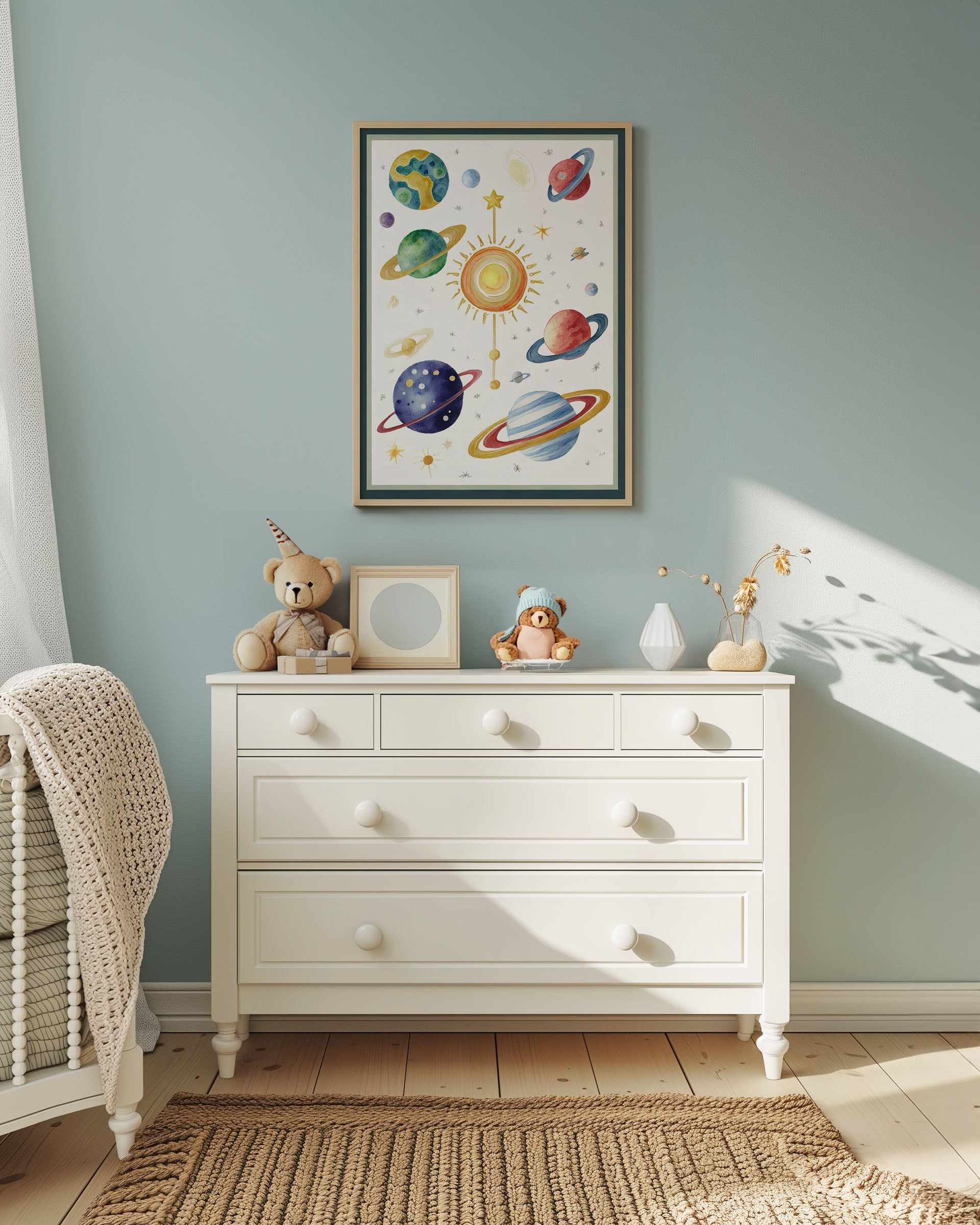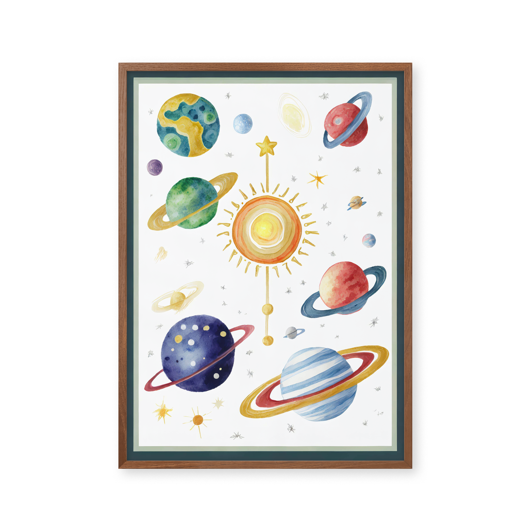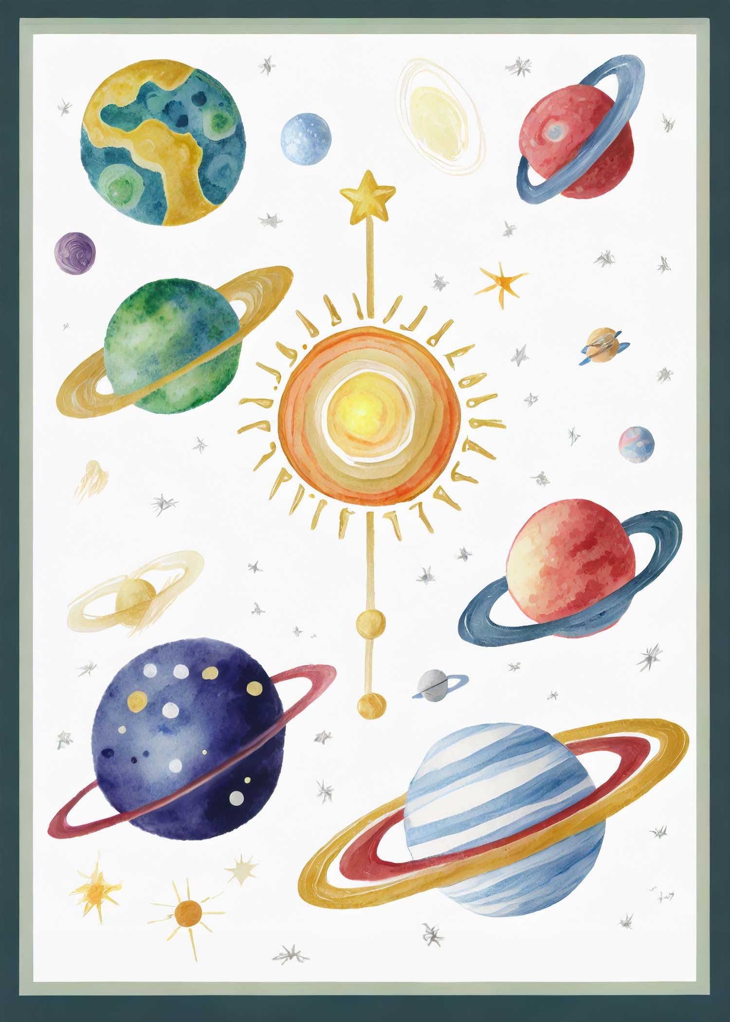 "Oplev "Stjernetæppers kosmiske eventyr" med denne betagende plakat. Dyk ind i en verden af levende farver, hvor solsystemets vidundere danser på lærredet. Perfekt til astronomi-entusiaster og drømmere, der ønsker at bringe universets magi hjem."