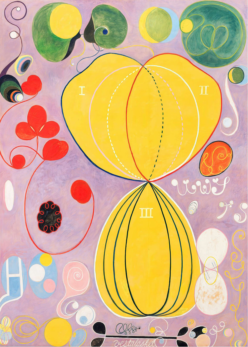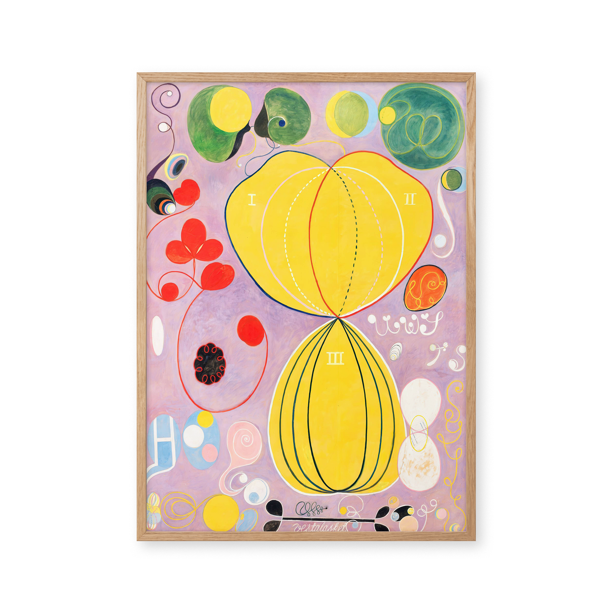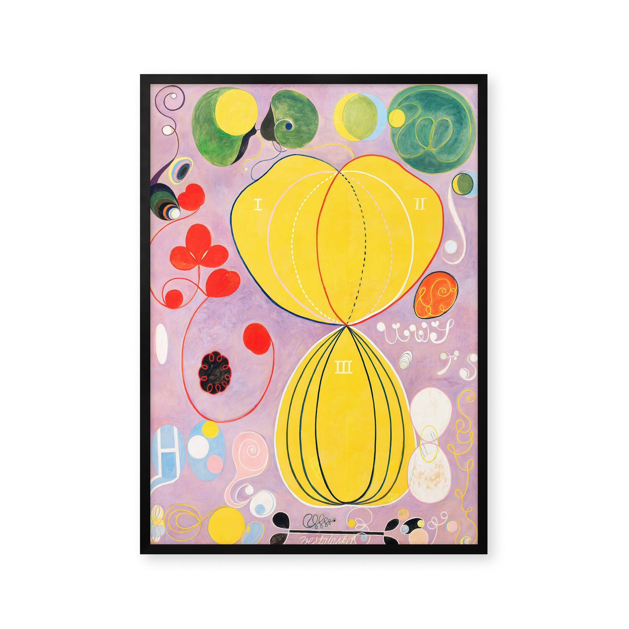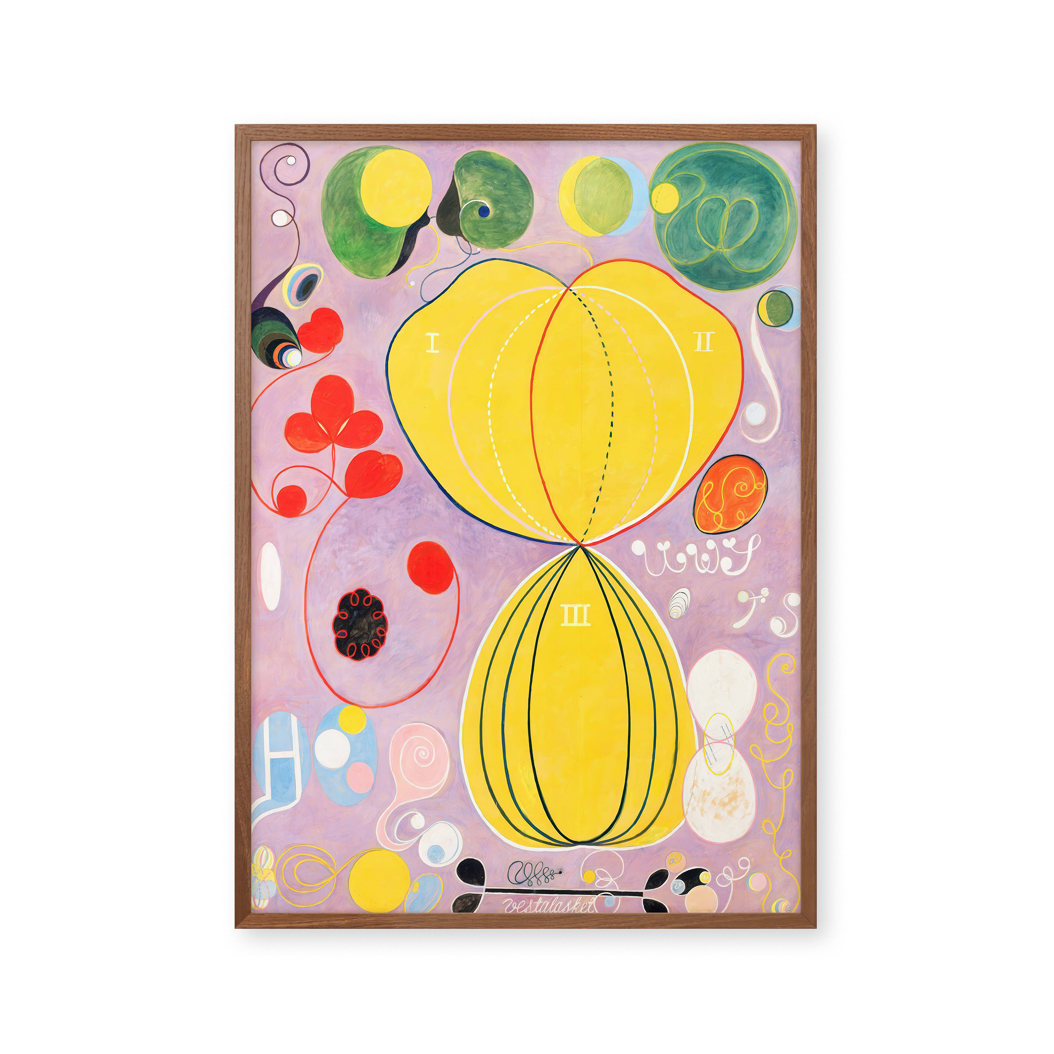 "The Ten Largest, No. 7, Adulthood" plakat byder på en eksplosion af farver med livlige gule, røde og grønne nuancer. Unikke geometriske former og organiske mønstre skaber en dynamisk og inspirerende atmosfære. Perfekt til at tilføje kunstnerisk flair til ethvert rum.
