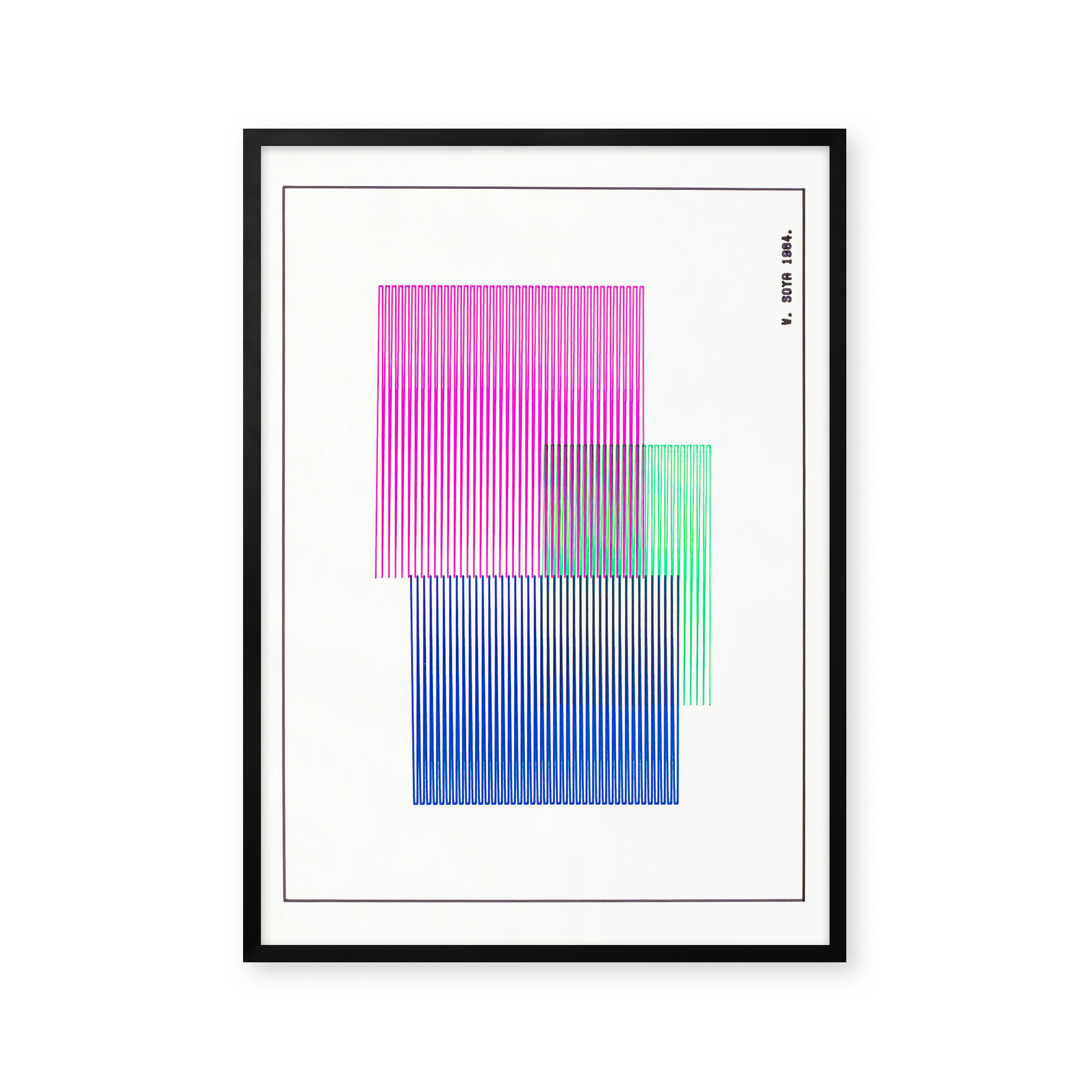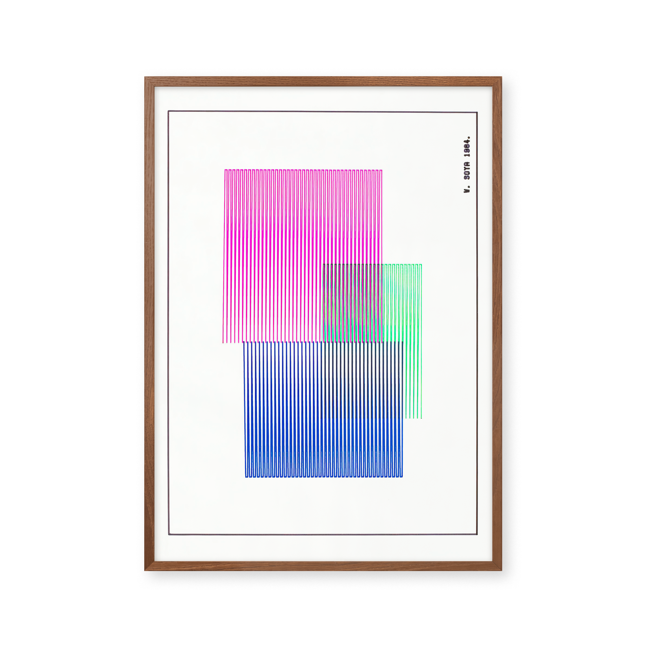 "Untitled" - Denne plakat fanger øjet med sine levende farver og unikke geometriske mønstre. De dynamiske linjer i pink, blå og grøn skaber en hypnotisk effekt, der tilføjer et moderne touch til ethvert rum. Perfekt til kunstelskere, der søger noget unikt og farverigt.