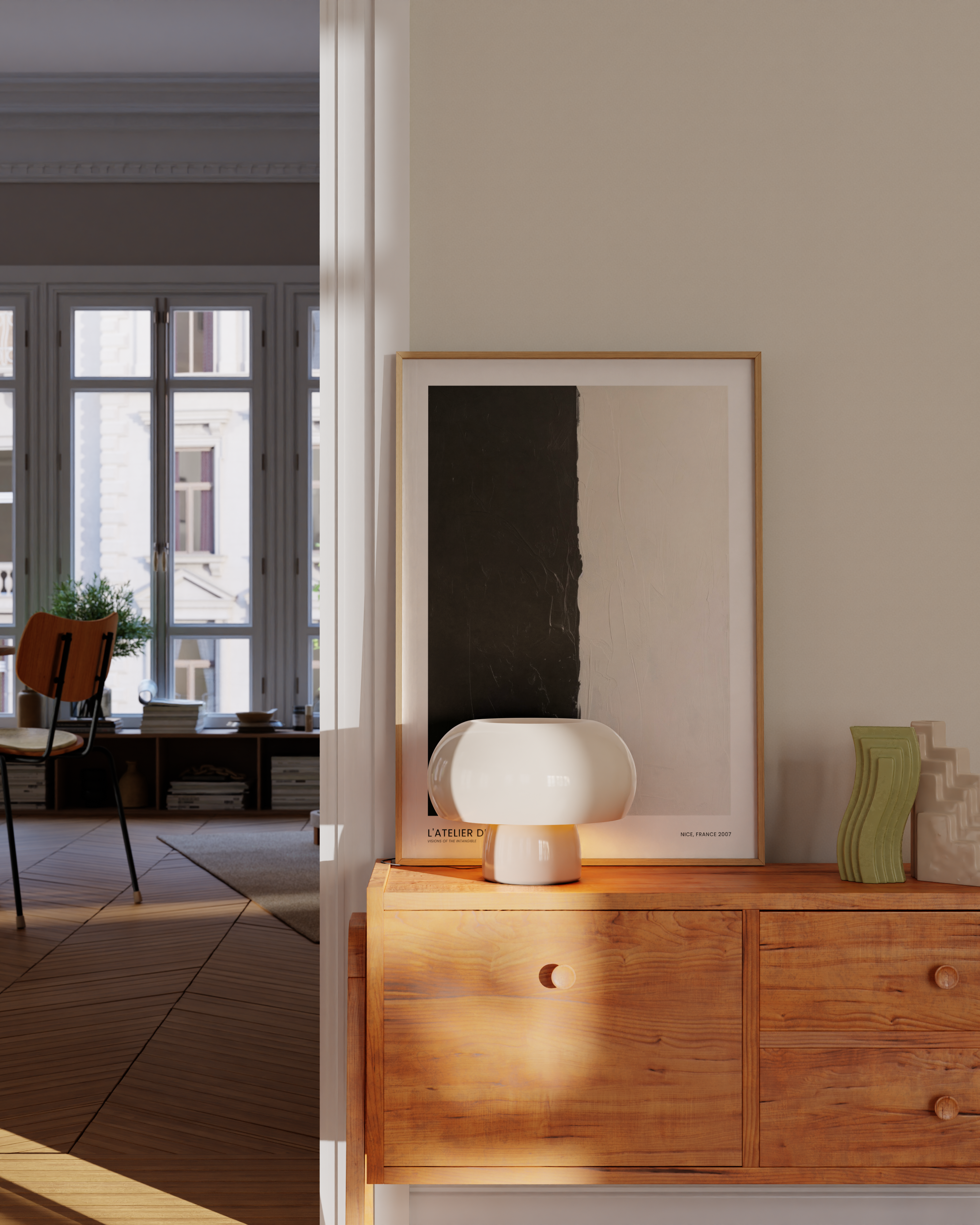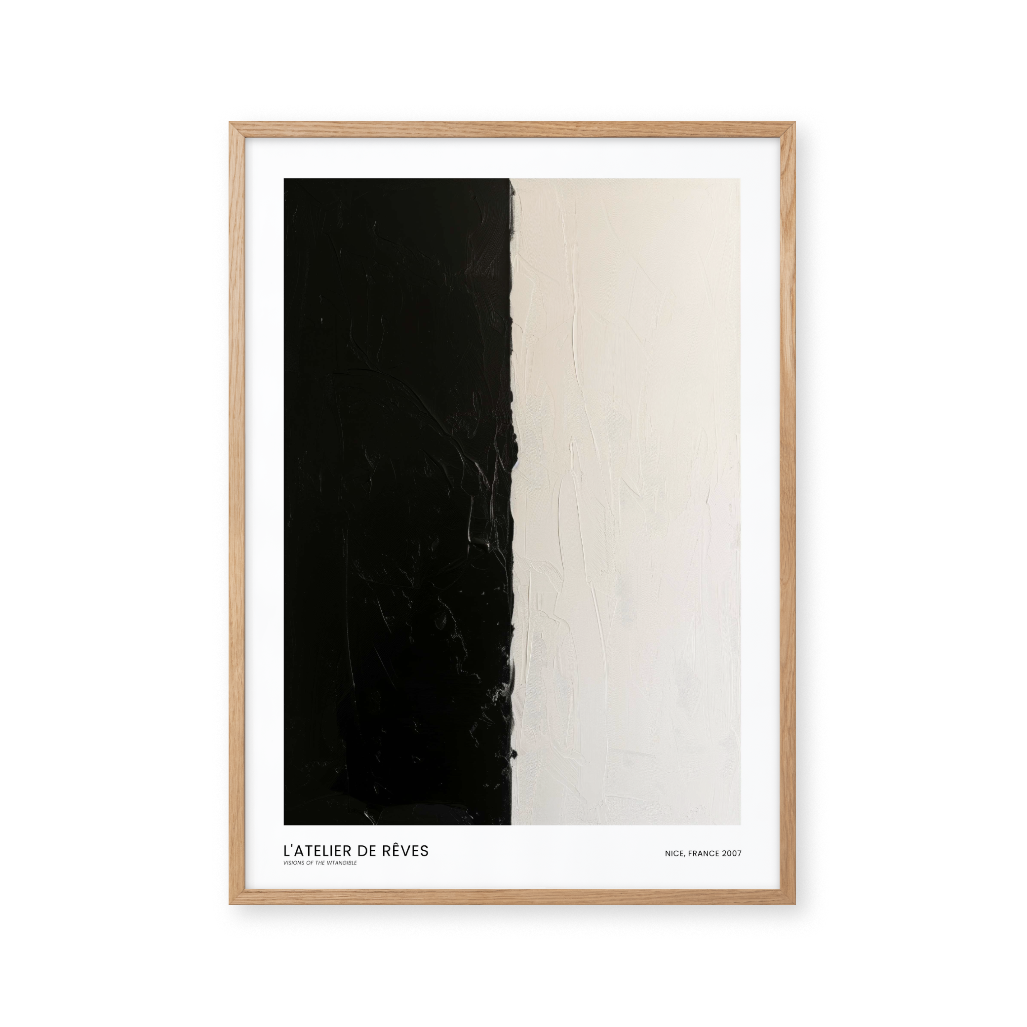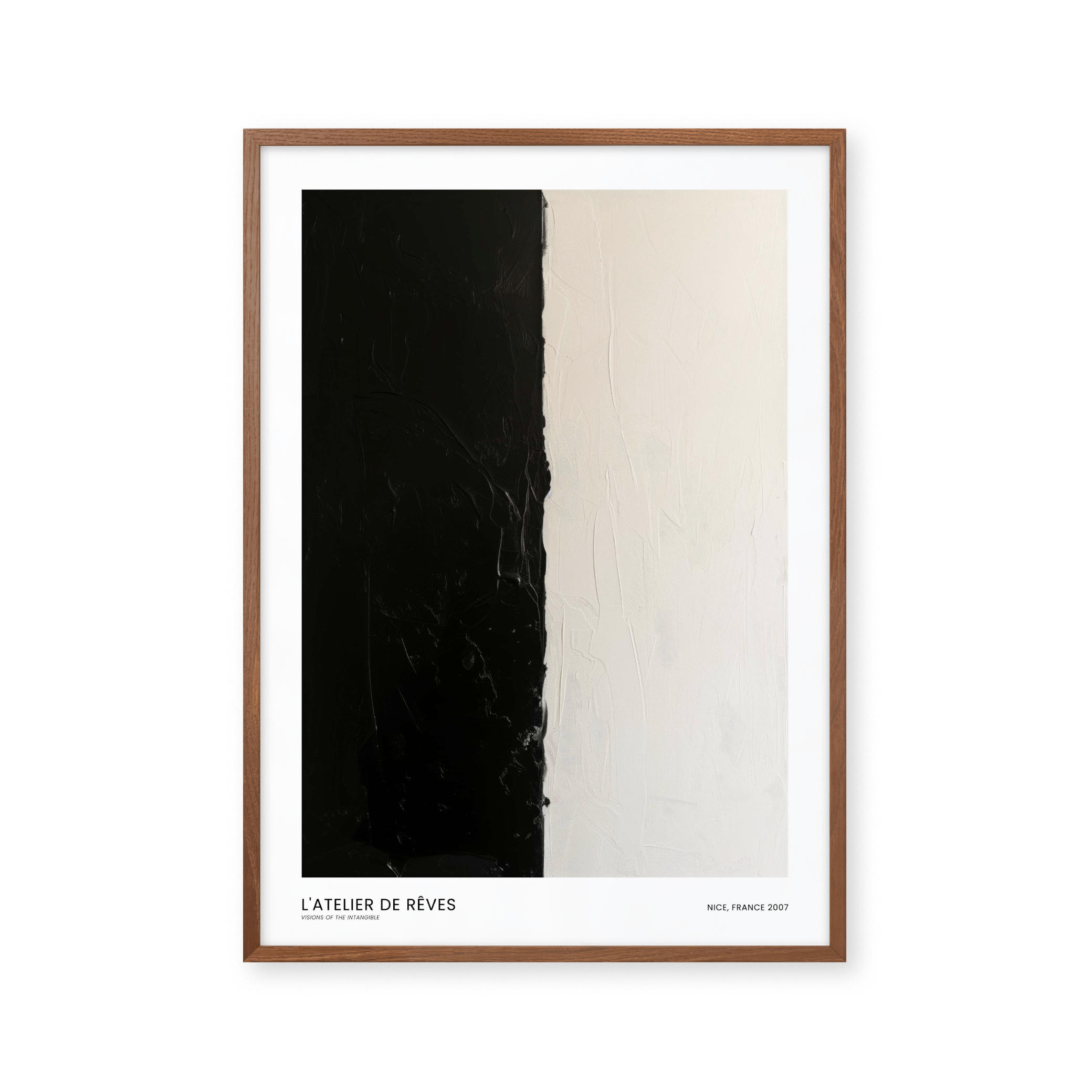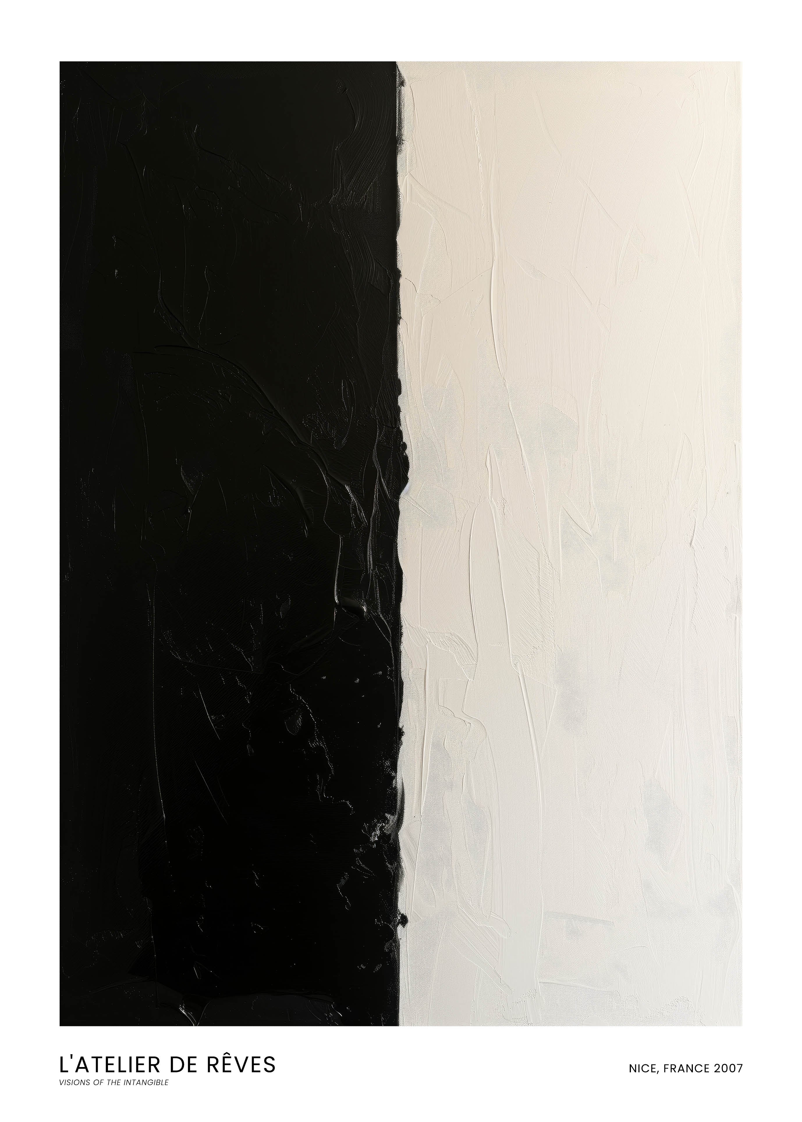 Opdag "L'Atelier de Rêves" – en plakat, der fanger essensen af kontrast. Denne kunstneriske fortolkning fra Nice, 2007, leger med sort og hvid, skabende en visuel dialog mellem lys og mørke. Perfekt til at tilføje et strejf af elegance og eftertænksomhed til ethvert rum.