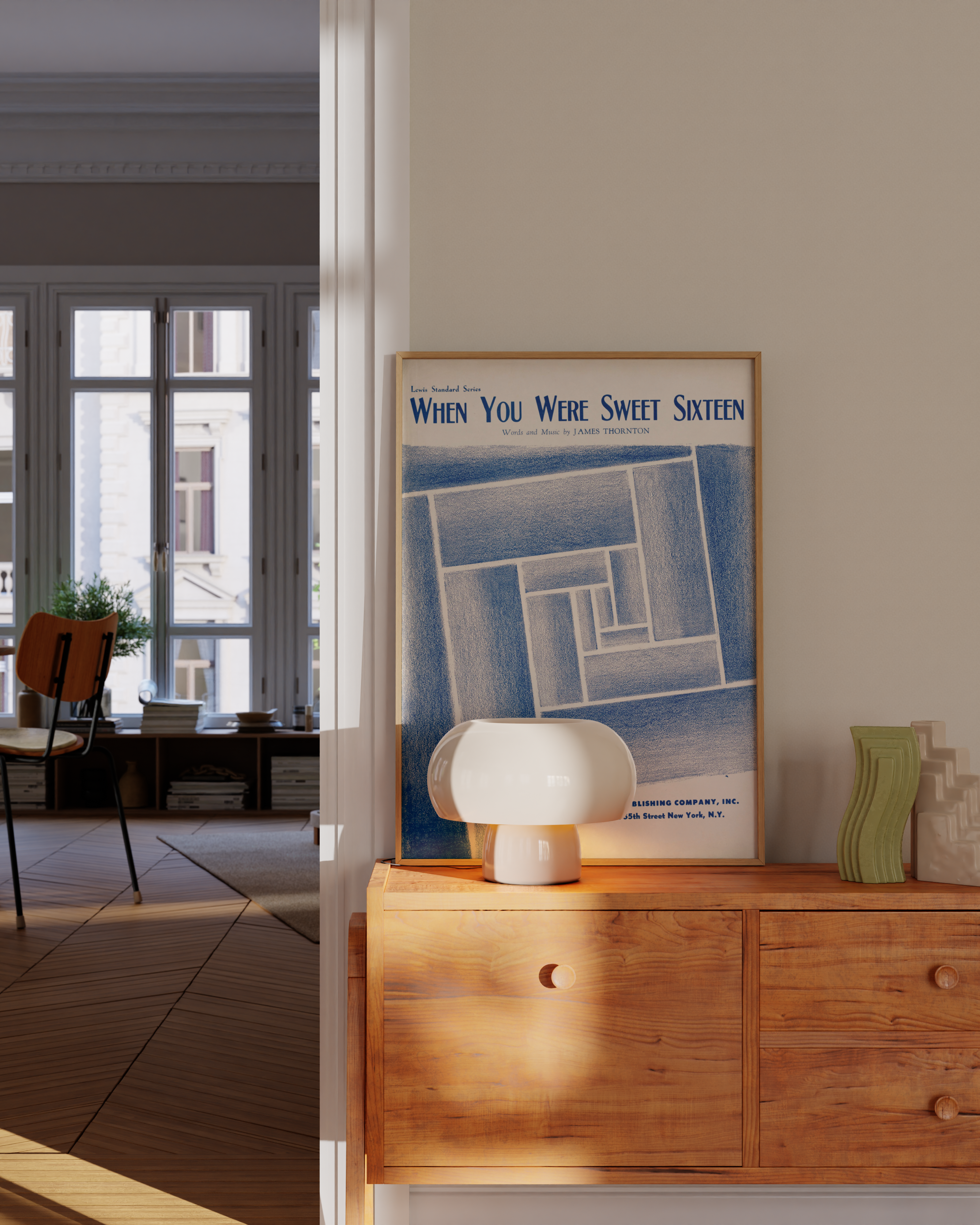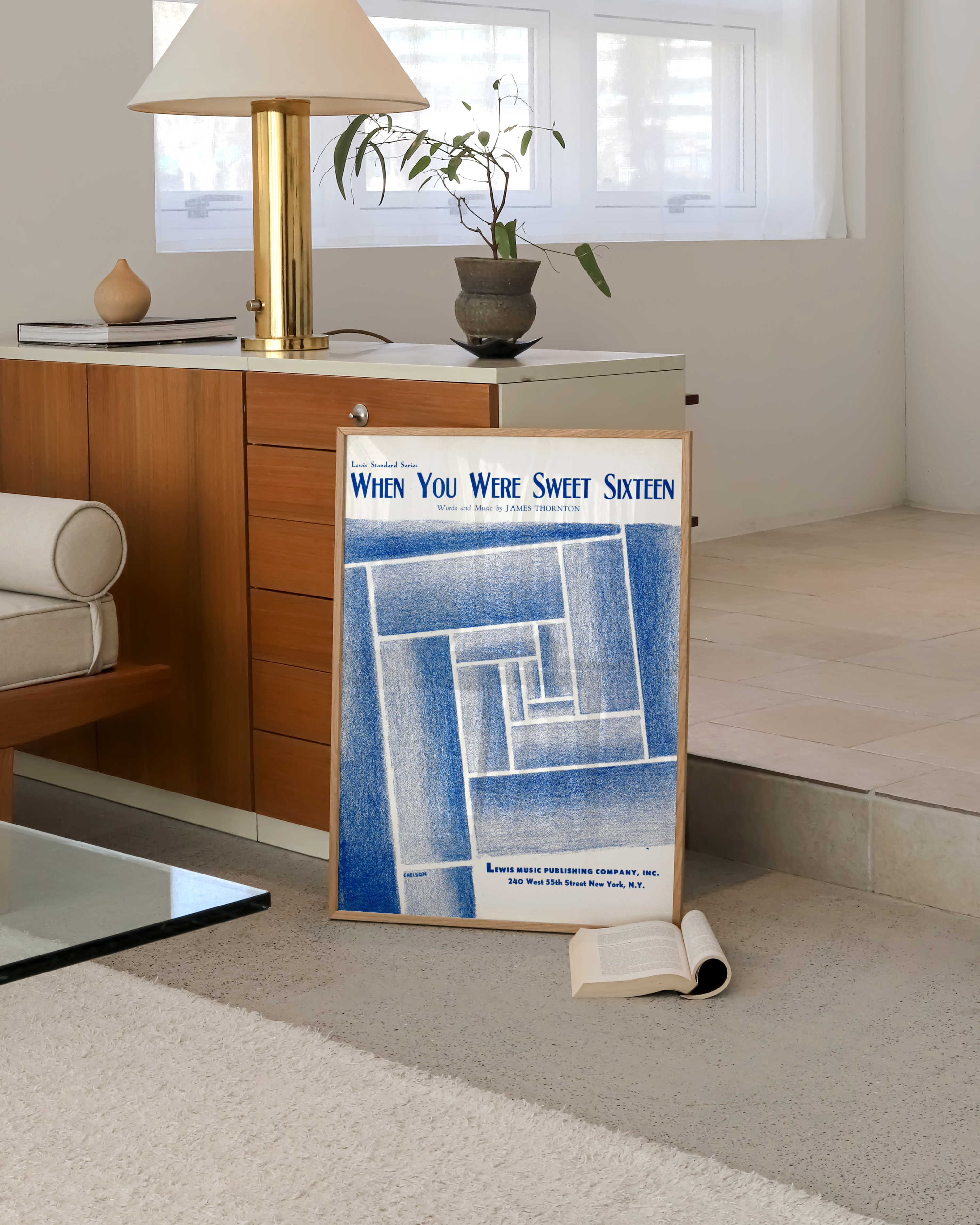 Opdag "When You Were Sweet Sixteen" plakaten, en nostalgisk hyldest i beroligende blåtoner. Denne vintage-inspirerede kunst fanger essensen af en tidløs melodi, perfekt til at tilføje et strejf af retro charme til dit hjem. Levende, mindeværdig og fyldt med karakter – en ægte visuel og følelsesmæssig rejse.