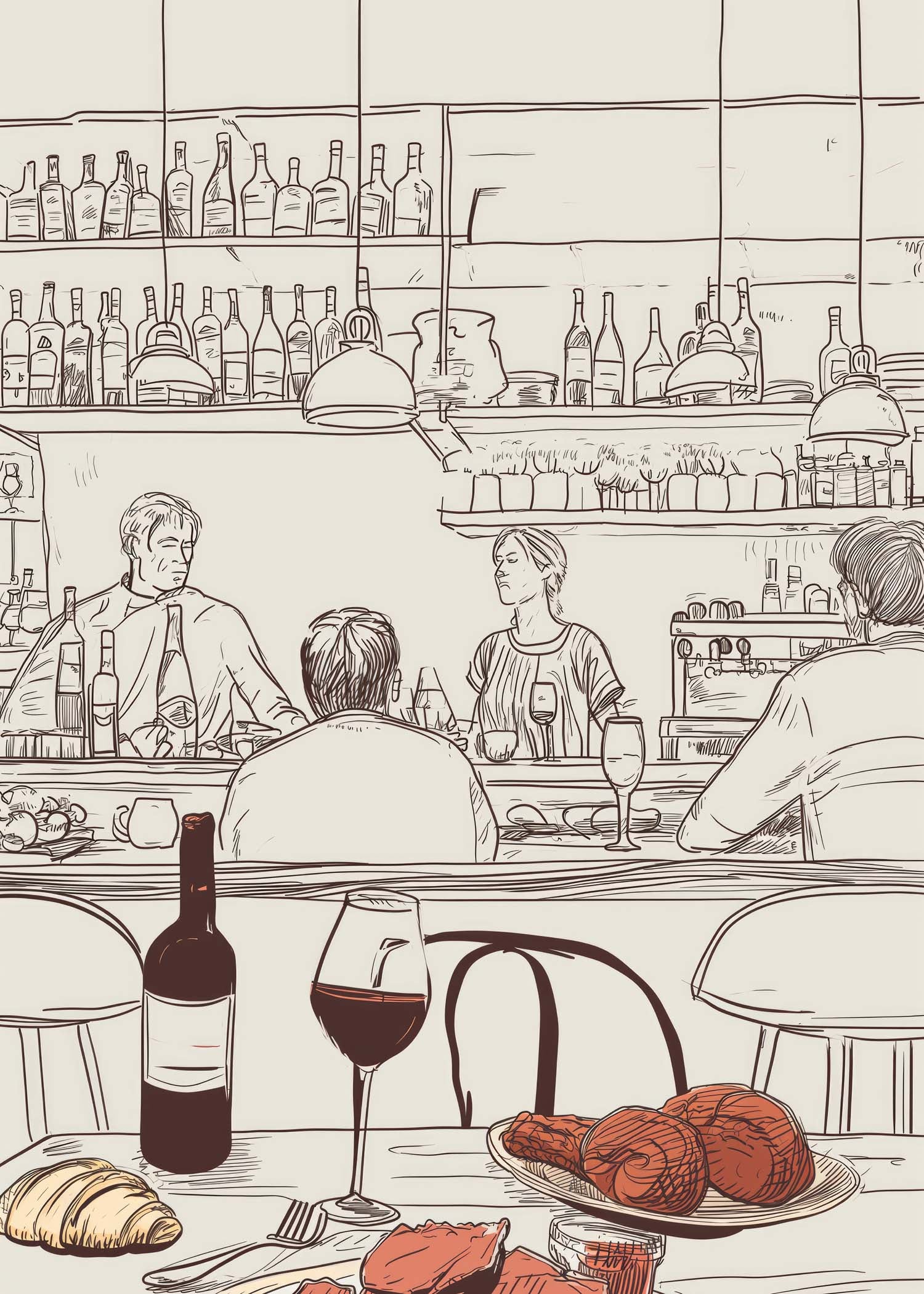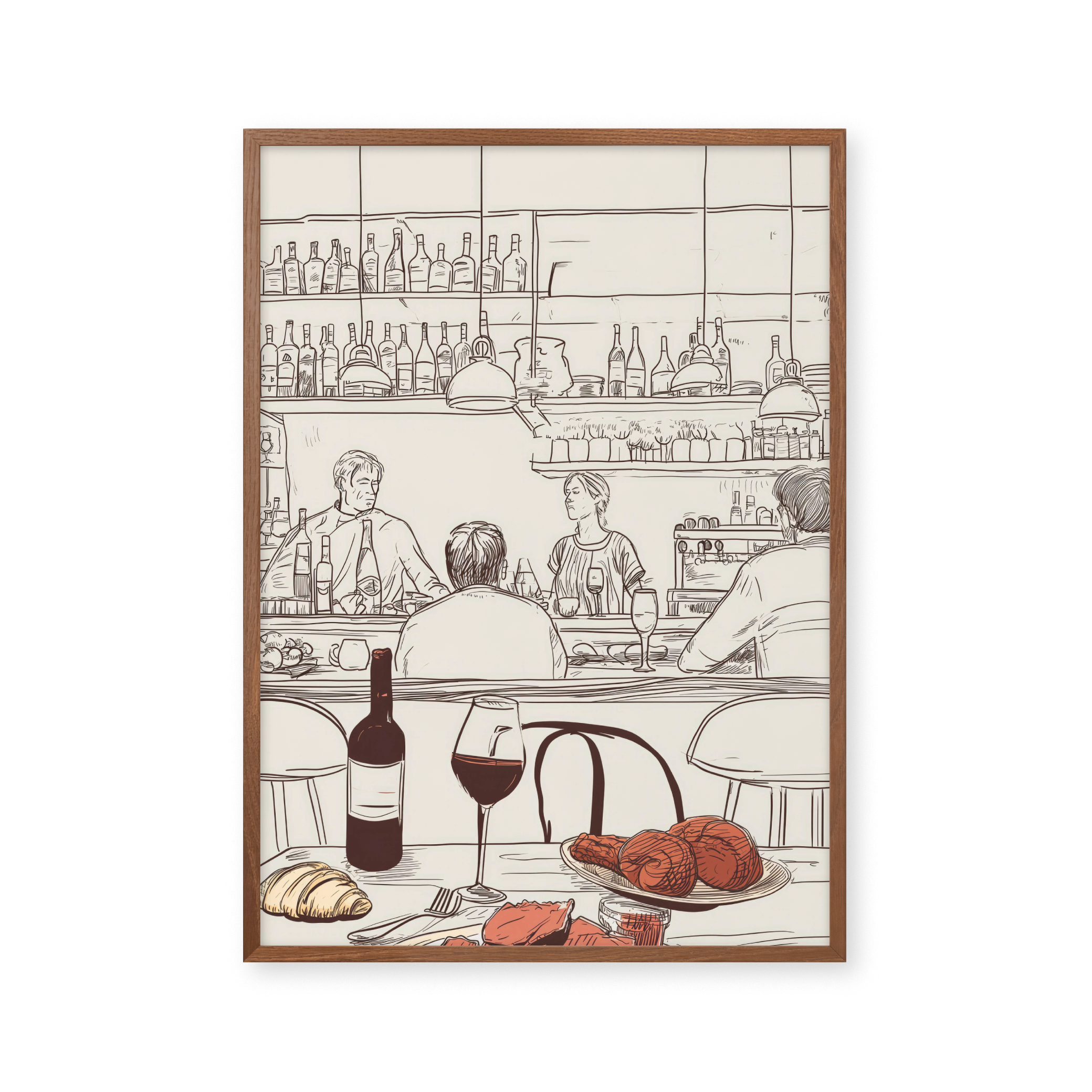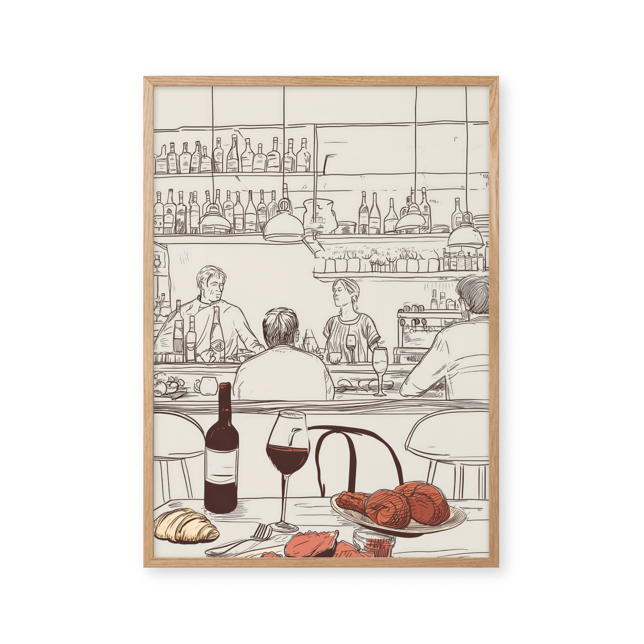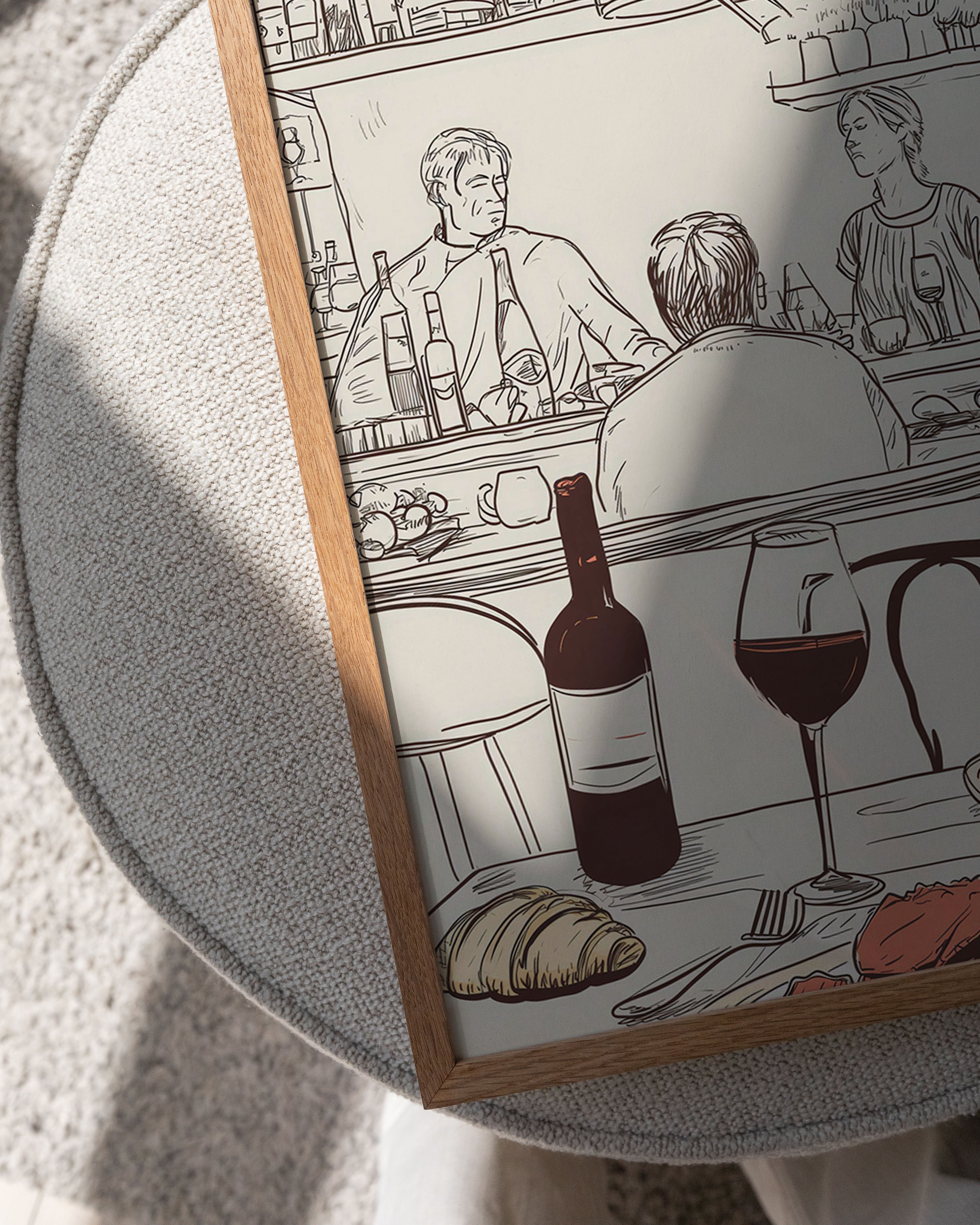 Oplev essensen af hygge med "Wine Bar Vibes" plakaten. Perfekt til enhver vinelsker, denne plakat fanger den varme atmosfære og de rige farver i en intim vinbar. Tilføj et strejf af sofistikeret charme til dit rum med denne unikke kunstneriske fremstilling.