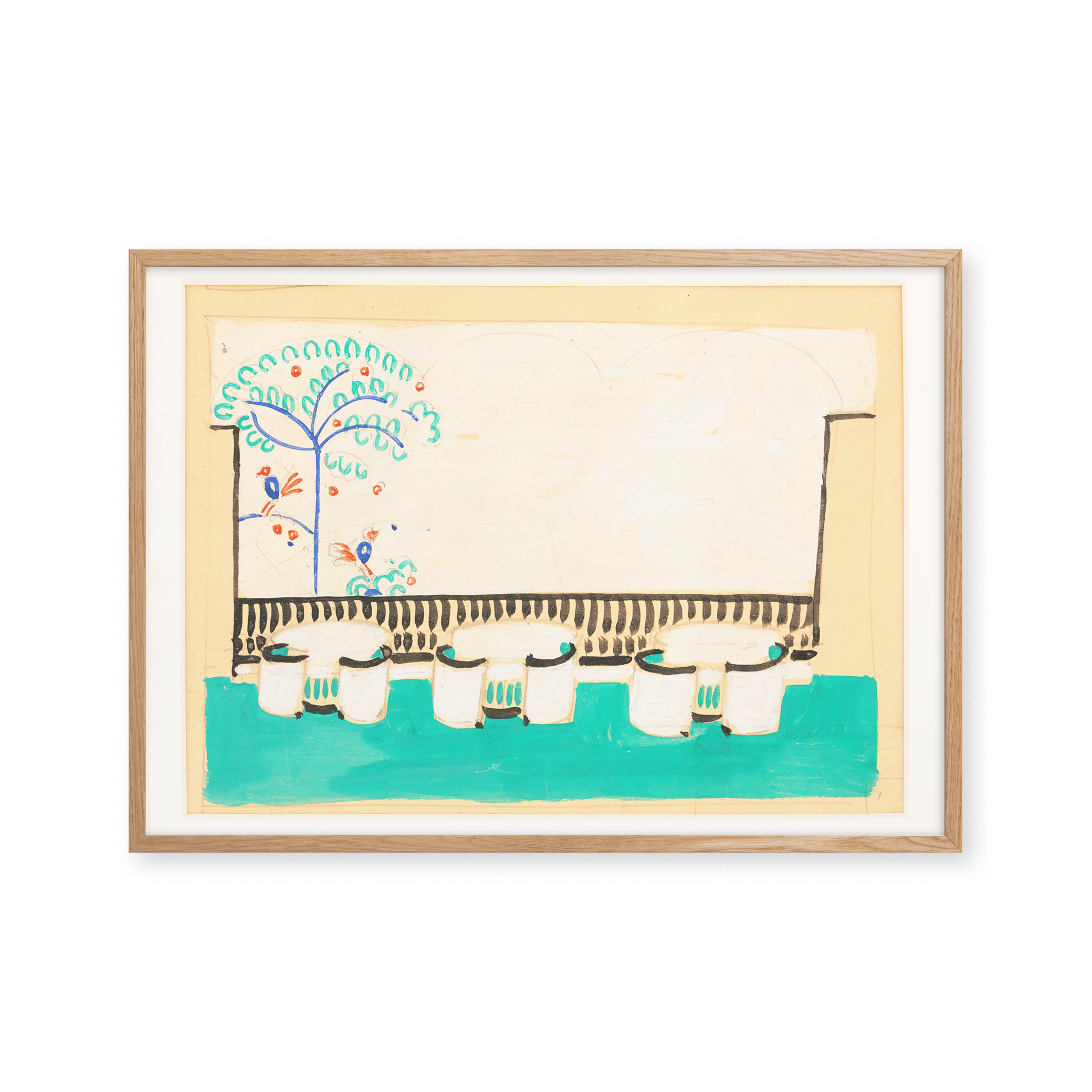 "Winter Garden Study" - Oplev en farverig og unik plakat, der fanger essensen af en vinterhave. Med levende grønne og blå nuancer samt detaljerede elementer, bringer denne kunstværk liv og energi til ethvert rum. Perfekt til at tilføje et strejf af natur og kreativitet til din indretning.