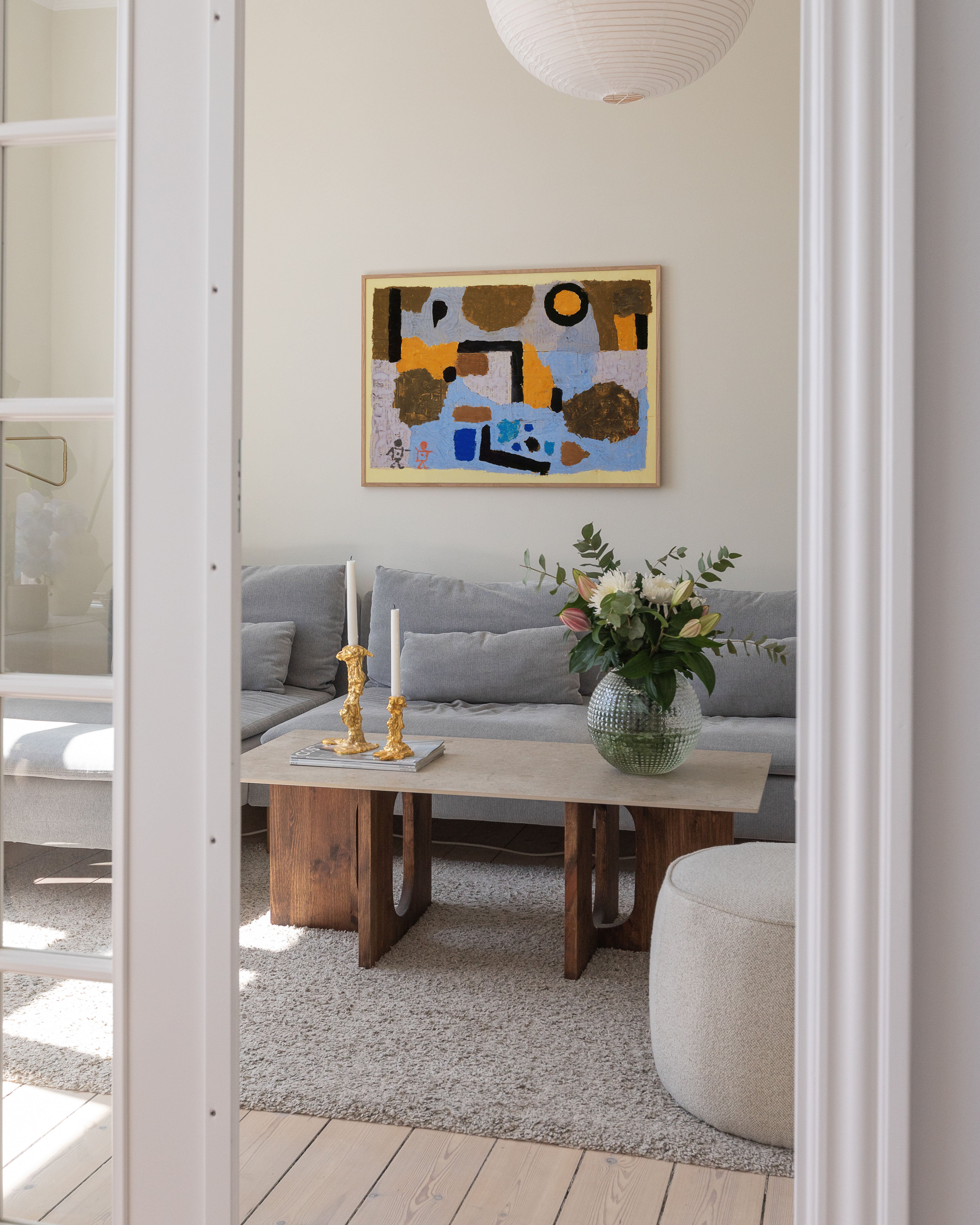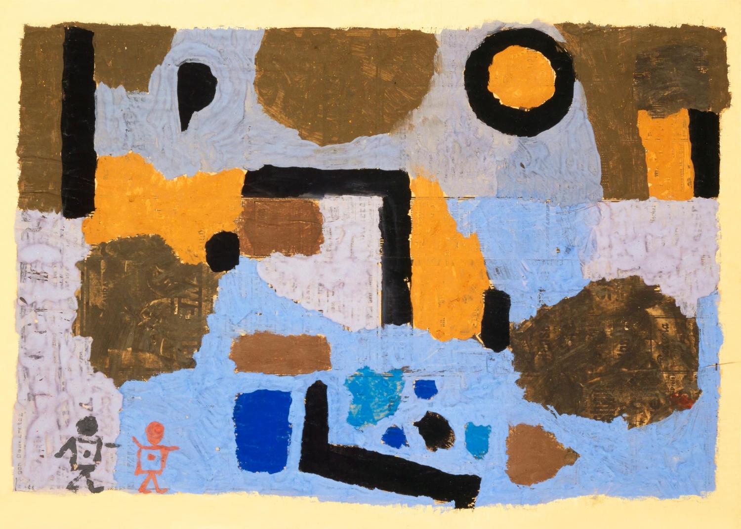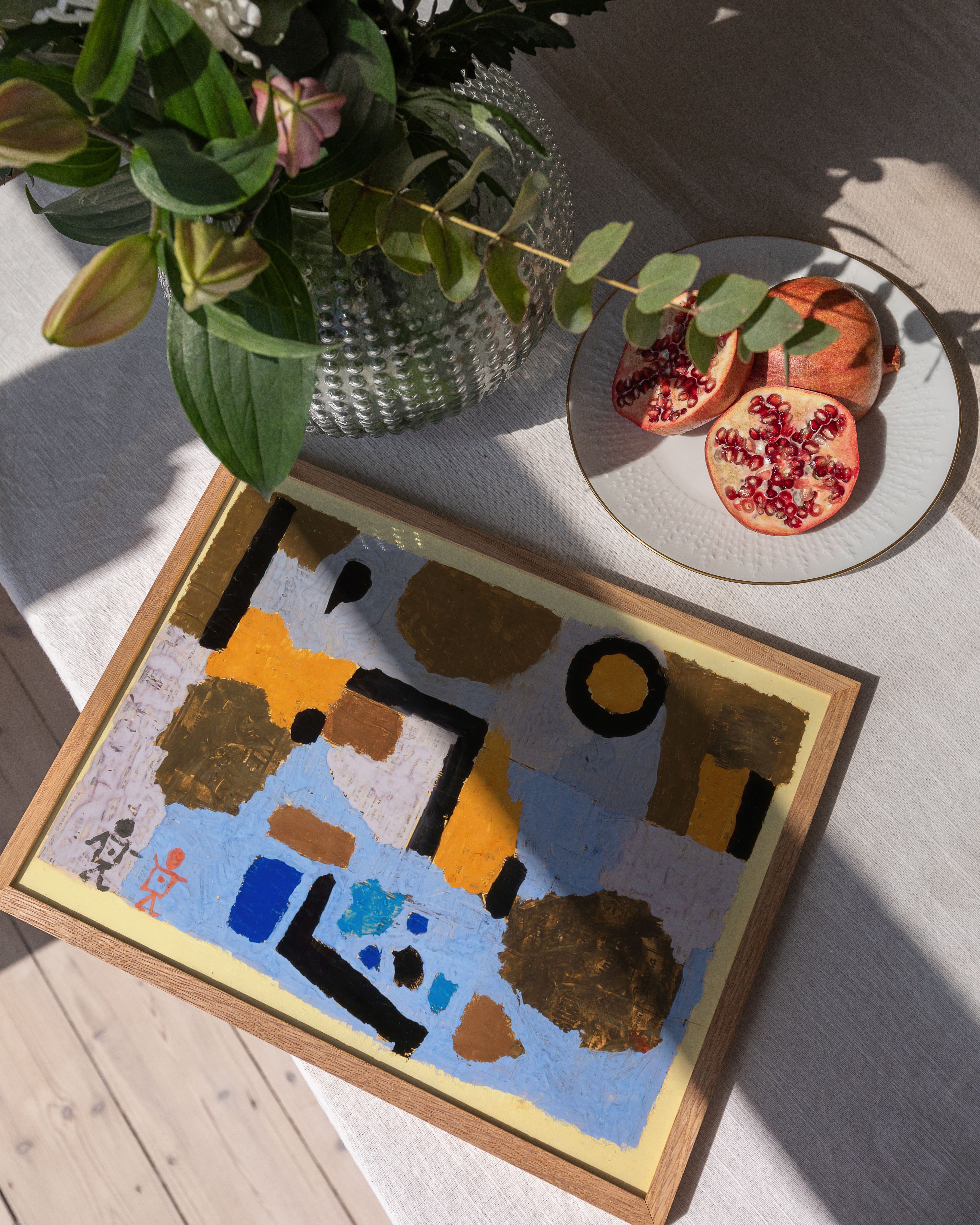 "With the two lost ones" - Oplev en farverig og abstrakt plakat, der kombinerer blå, orange og guld nuancer. Unikke figurer og geometriske former skaber en dynamisk og fængslende visuel oplevelse. Perfekt til at tilføje kunstnerisk flair til ethvert rum.